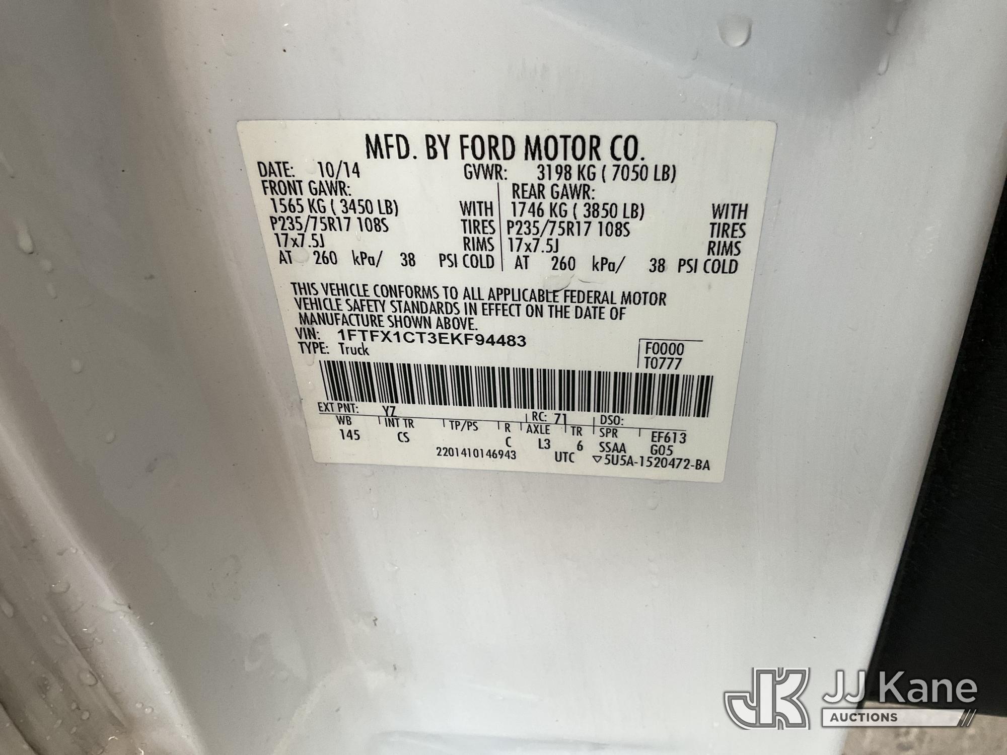 2014 Ford F-150 Extended-Cab Pickup Truck, s/n 1FTFX1CT3EKF94483, 3.5L V6 TURBO RWD, GAS, 6-Speed Automatic, A/C, with Tow package, toolbox, (220,357 miles) (Runs & Moves) This is a Titled Item*