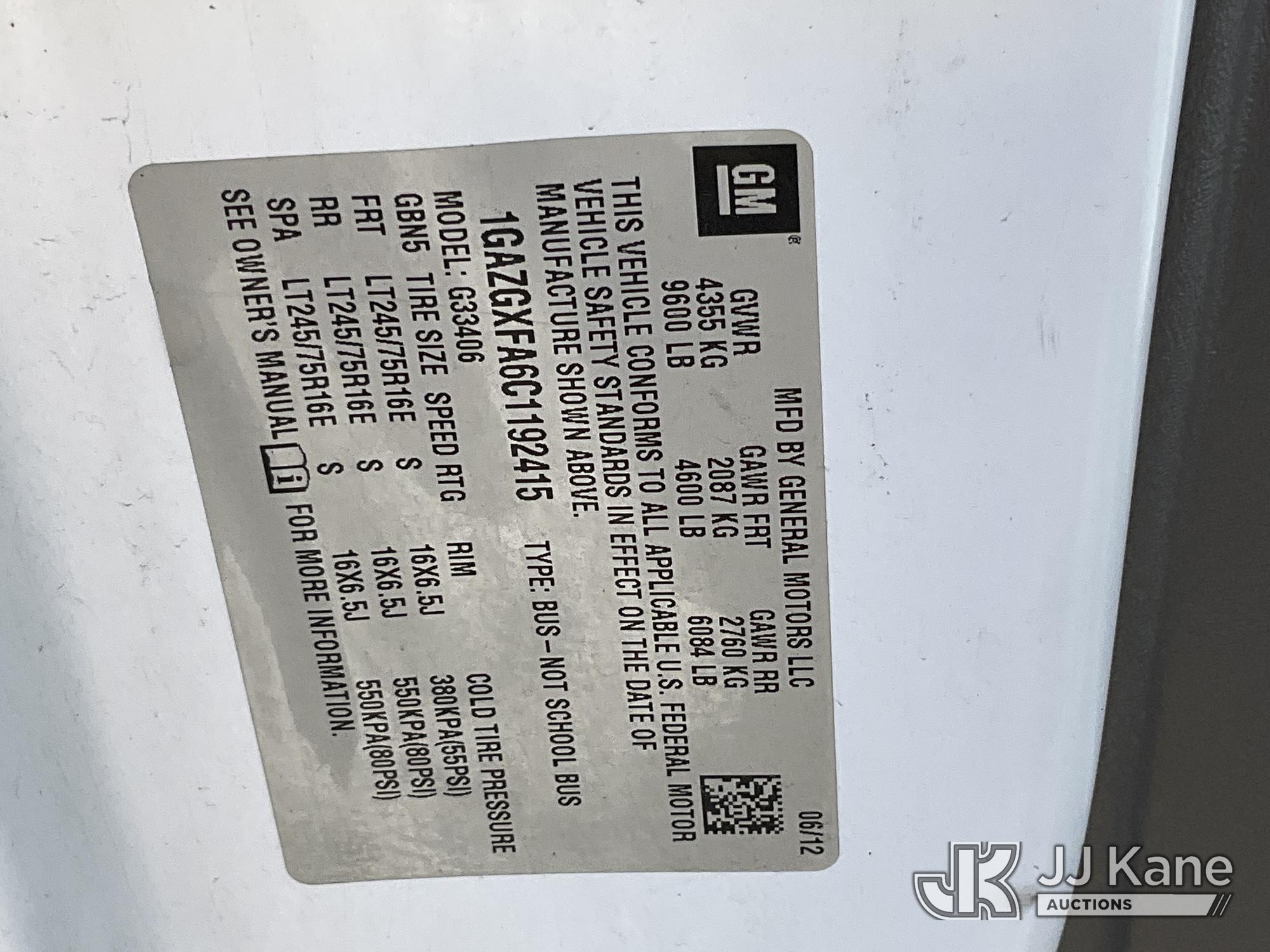 2012 Chevrolet Express LS 3500 Passenger Van, 8-cyl gas, RWD, 6-Speed Automatic, A/C, (20,663 miles) (Runs & Moves ) This is a Titled Item*