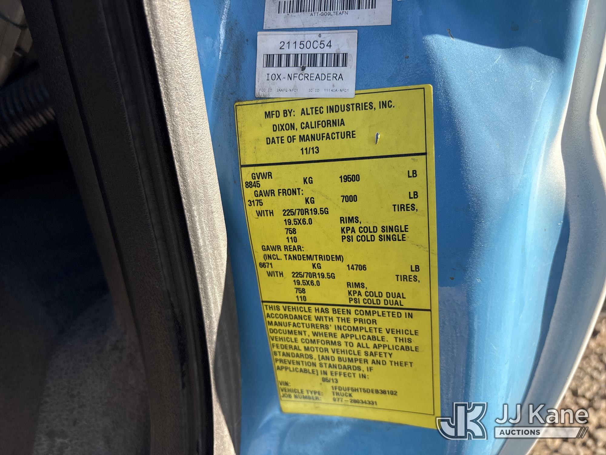 Altec AT37G, 42 ft, Articulating & Telescopic Bucket s/n 0913DE15973, with single-man bucket, mounted behind cab on 2013 Ford F-550 Regular Cab DRW 4WD Service Truck, 6.7L V8 OHV 16V DIESEL, Auto, A/C, (87,624 miles) (Runs, Moves & Operates, Data Placard Missing) (Reads 8,919 hours) May be subject to ARB Regulations This is a Titled Item*
