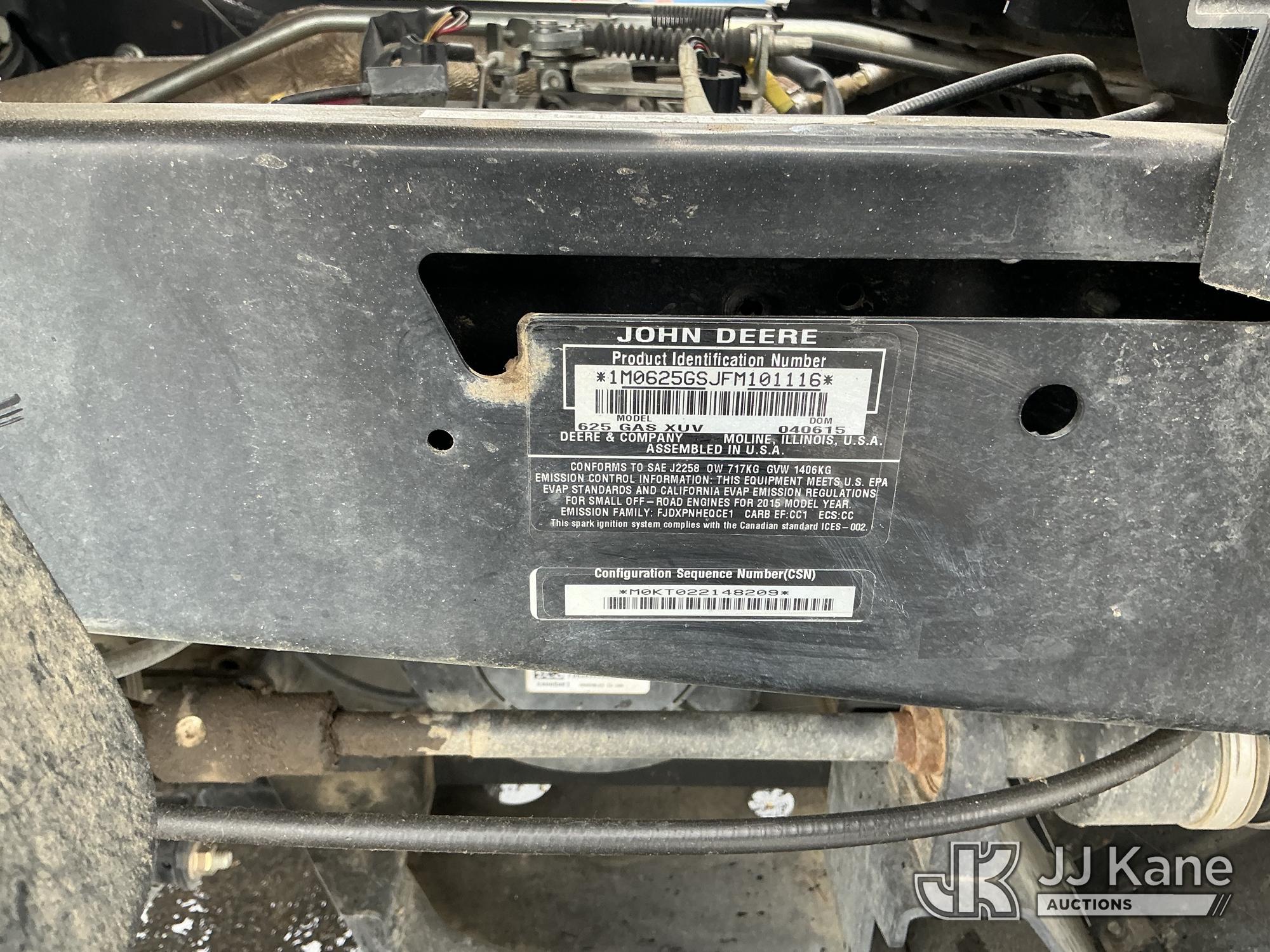 2015 John Deere 625i Utility Cart, John Deere 4wd, gas, Auto, (14,689 miles) (Runs, Moves & Dump Operates)(Belt/Engine Covers Removed-In Trunk) This is a Titled Item*