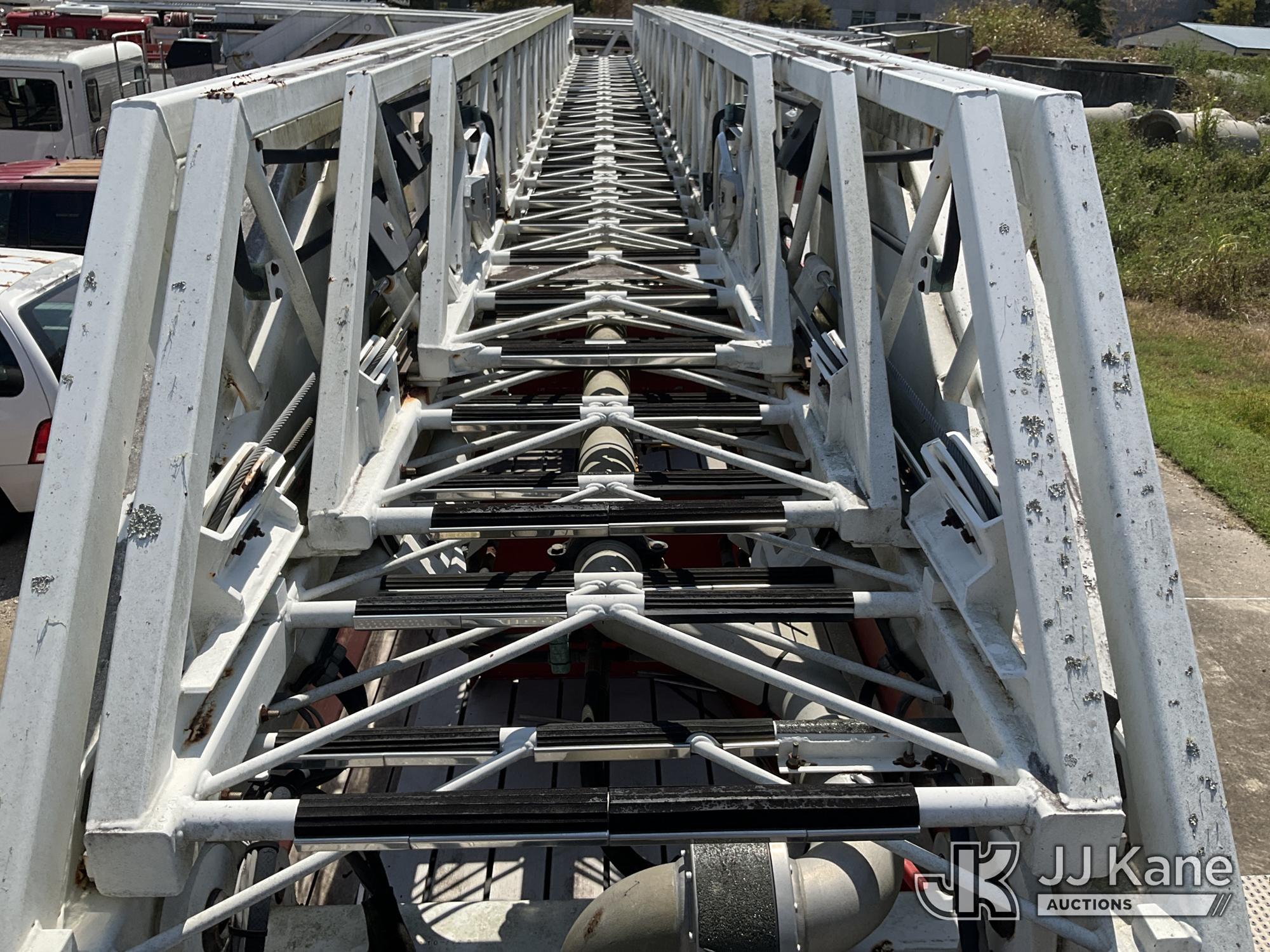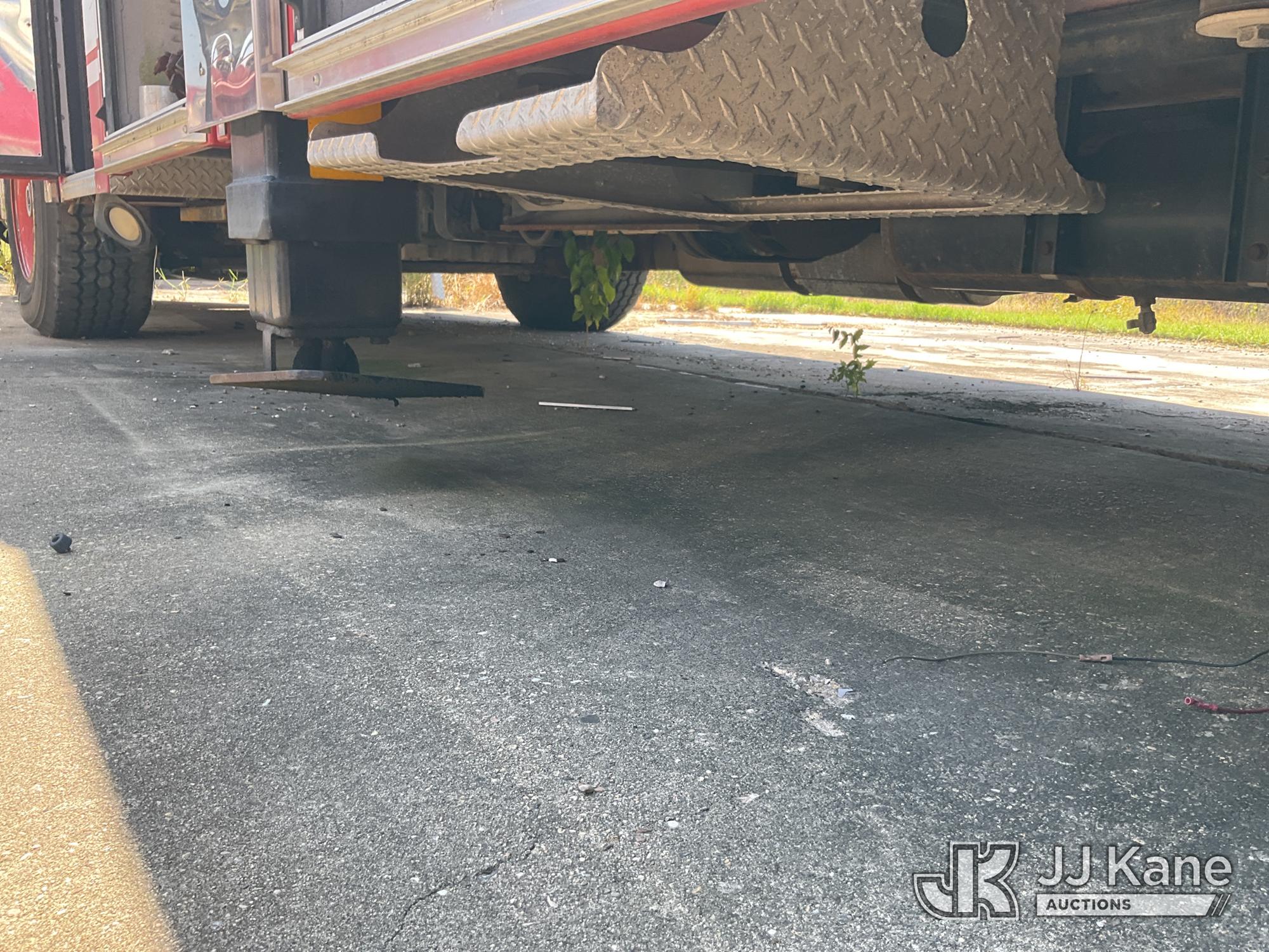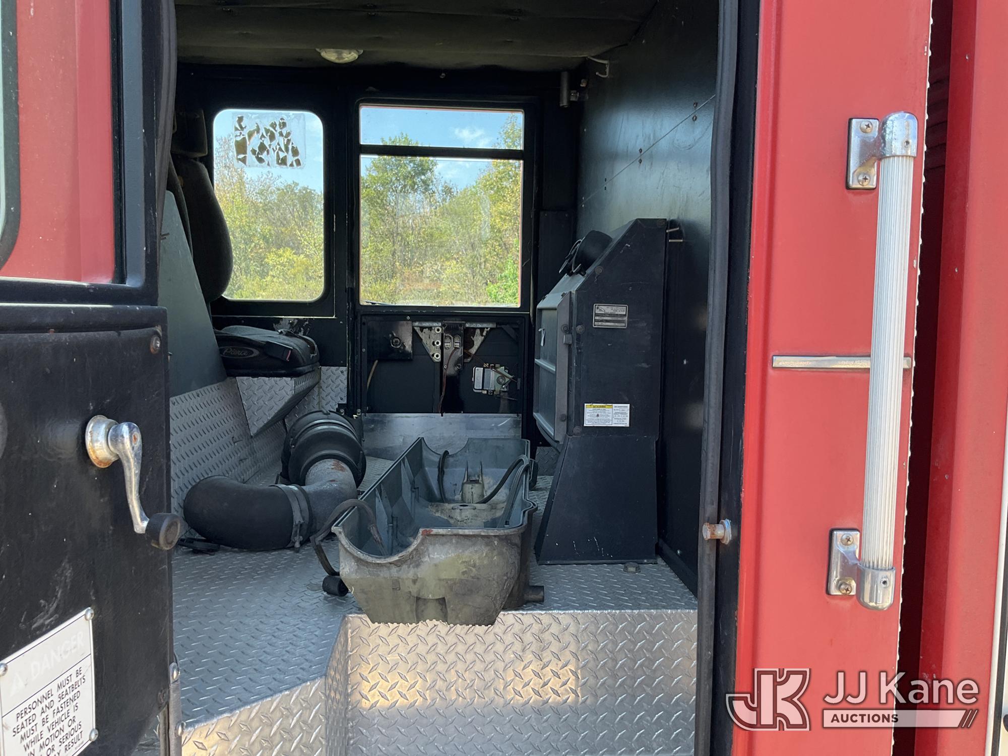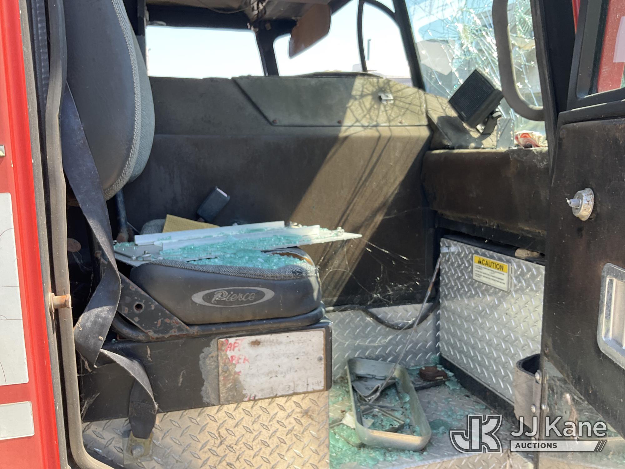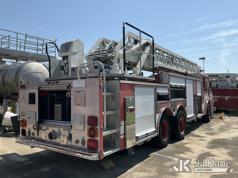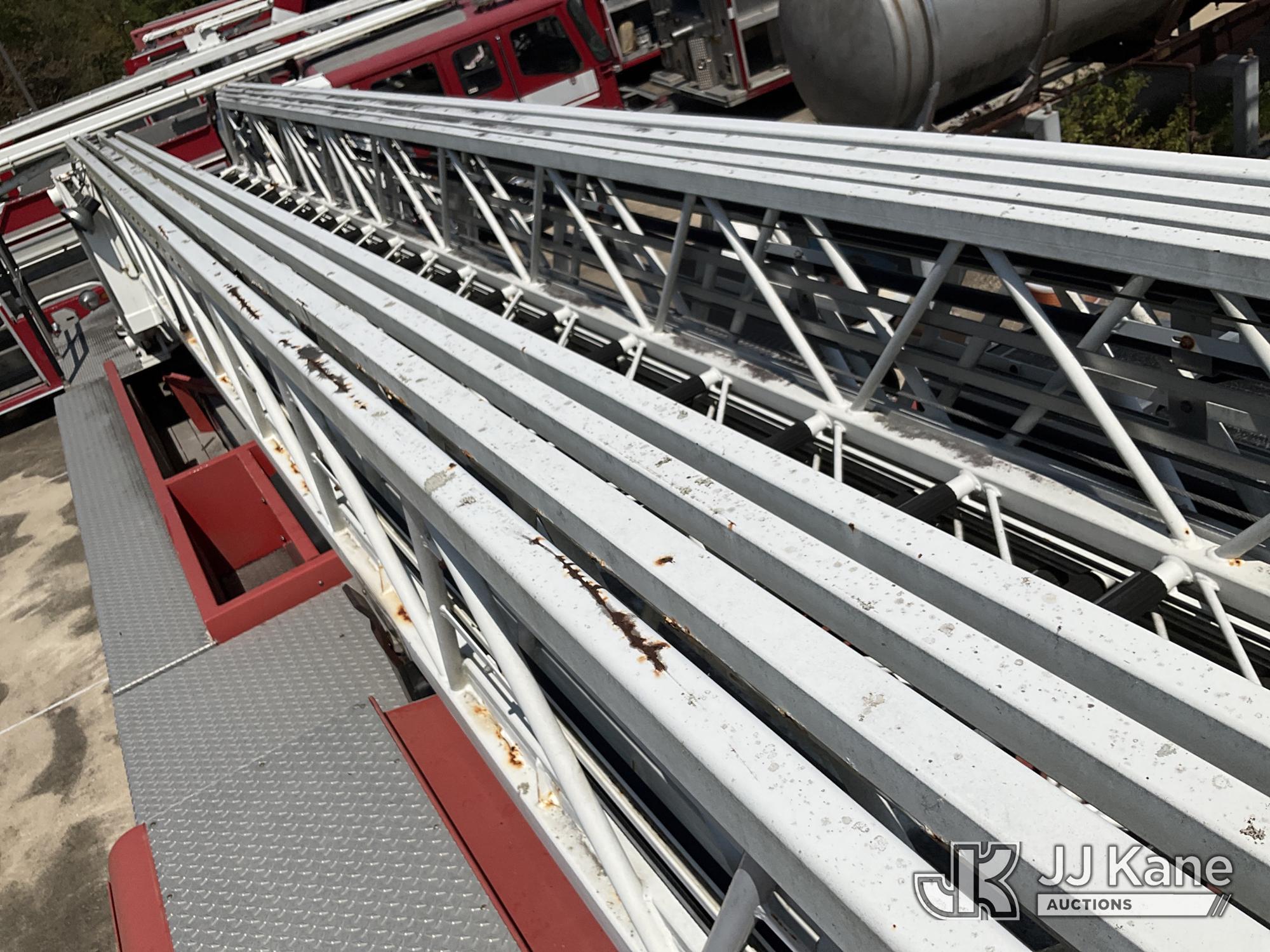 1999 Pierce Model Tilt Cab Ladder Truck/Fire Truck, 12.7L L6 DIESEL Auto, (Exempt from Odometer Disclosure - Reads 69,175 miles) (Not Running, Condition Unknown, Missing Door, Missing Steering Wheel, Missing Various Items, Missing and Broken Glass, No Upper Placard) This is a Titled Item*