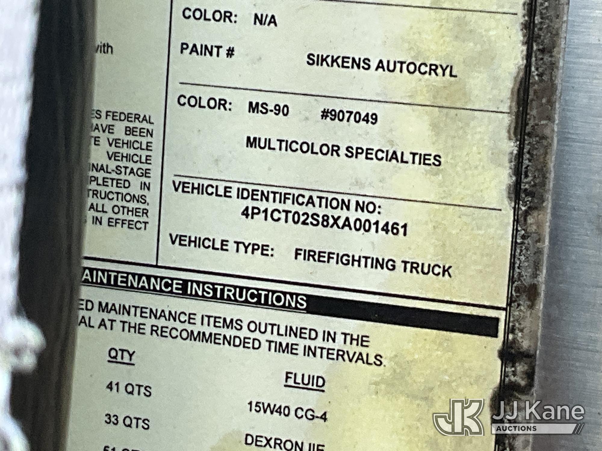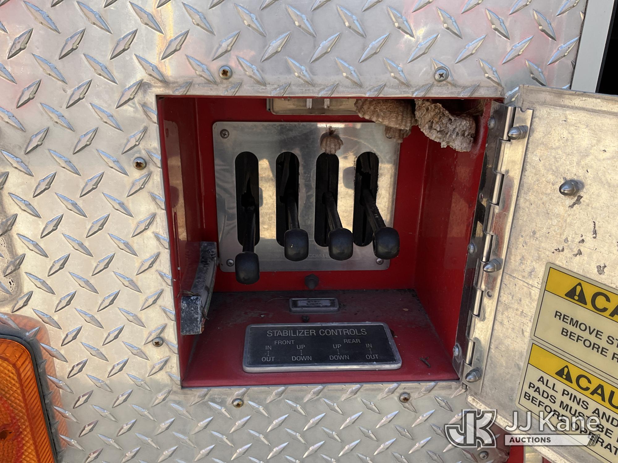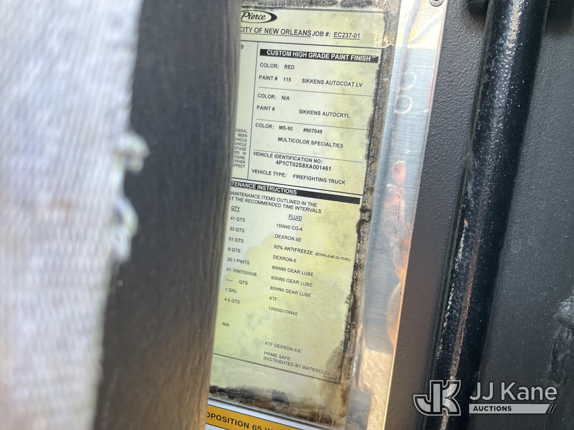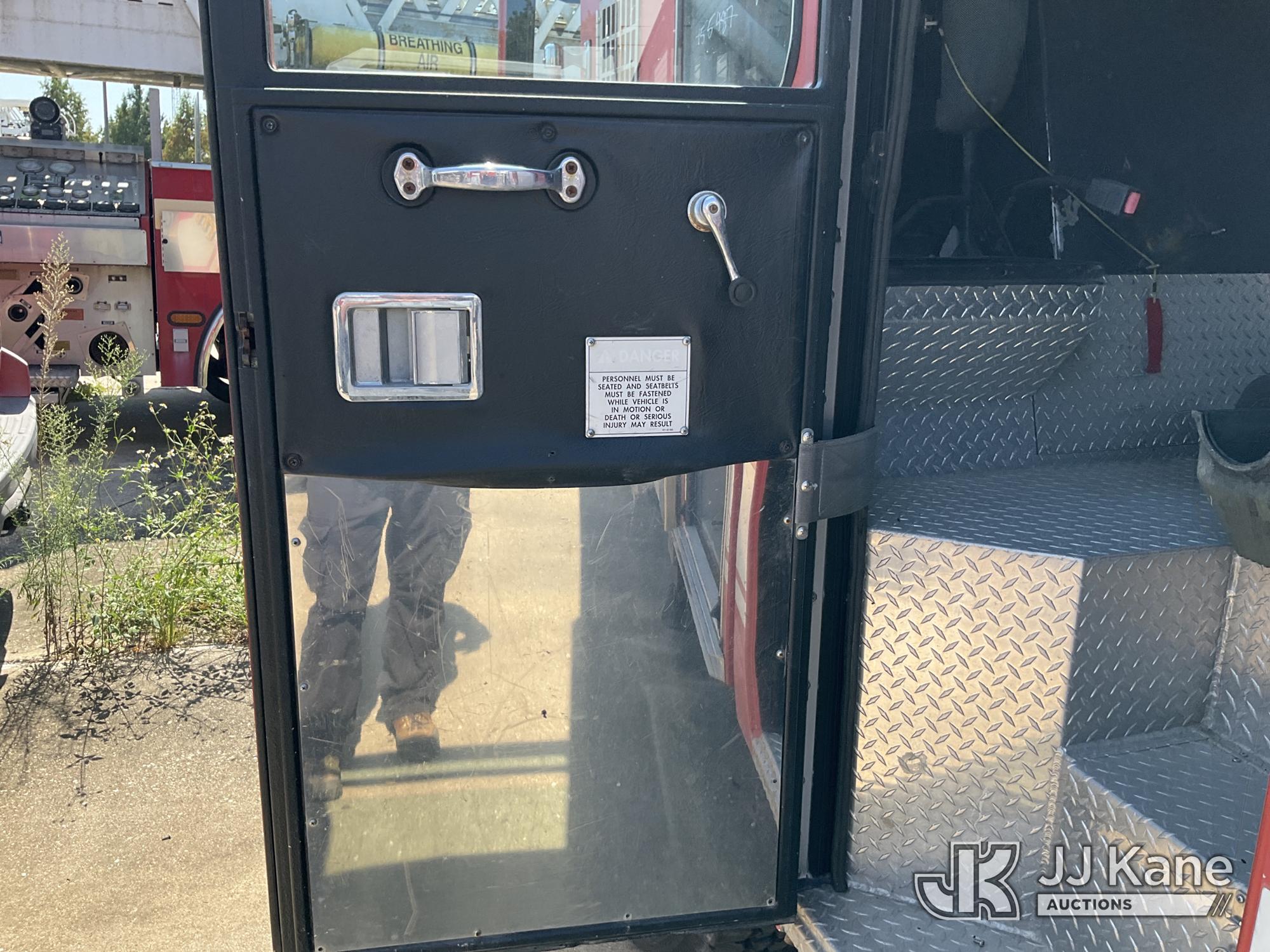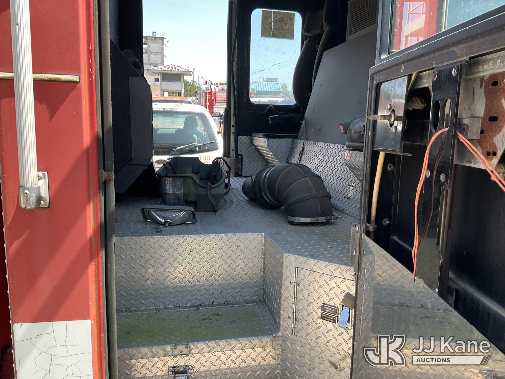 1999 Pierce Model Tilt Cab Ladder Truck/Fire Truck, 12.7L L6 DIESEL Auto, (Exempt from Odometer Disclosure - Reads 69,175 miles) (Not Running, Condition Unknown, Missing Door, Missing Steering Wheel, Missing Various Items, Missing and Broken Glass, No Upper Placard) This is a Titled Item*
