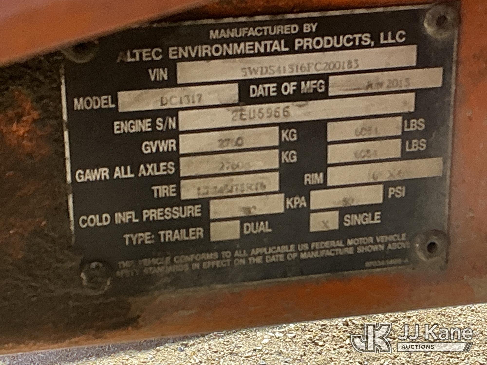 2015 Altec DC1317 Chipper (13in Disc), Kubota diesel, (Runs) (Jump To Start, Seller States: Dent In Chute, New Battery Installed & Other Minor Mechanical Work Needed) (Reads 1,026 hours) This is a Titled Item*