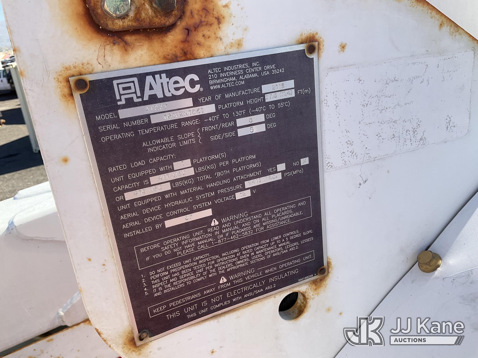 Altec AT237, 43 ft, Articulating & Telescopic Non-Insulated Bucket Truck s/n 0816EN0551, with single-man bucket, mounted behind cab on 2016 RAM 5500 Service Truck, 6.7L diesel, Auto, A/C, (193,292 miles) (Runs, Moves & Upper Operates) This is a Titled Item*