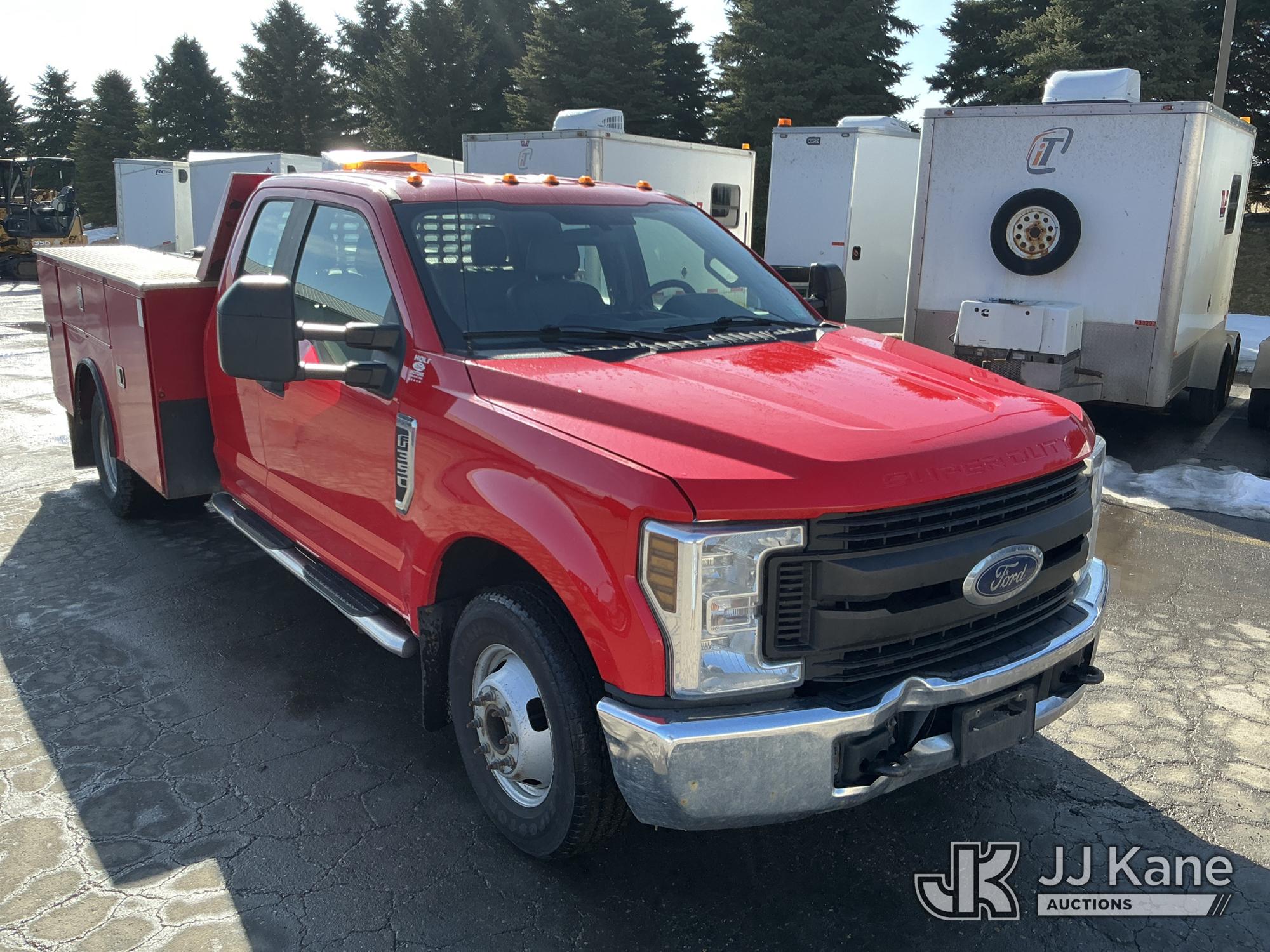 2019 Ford F-350 SD Extended-Cab Service Truck, 8-cyl gas, RWD, 6-Speed Automatic, A/C, with transfer tank w pump, (209,338 miles) (Runs & Moves)(Seller States: Radio Module Needs To Be Replaced - Causes Dash Display & Radio To Intermittently Shut Off - Does Not Affect Vehicle Operation) (Reads 9,417 hours) This is a Titled Item*