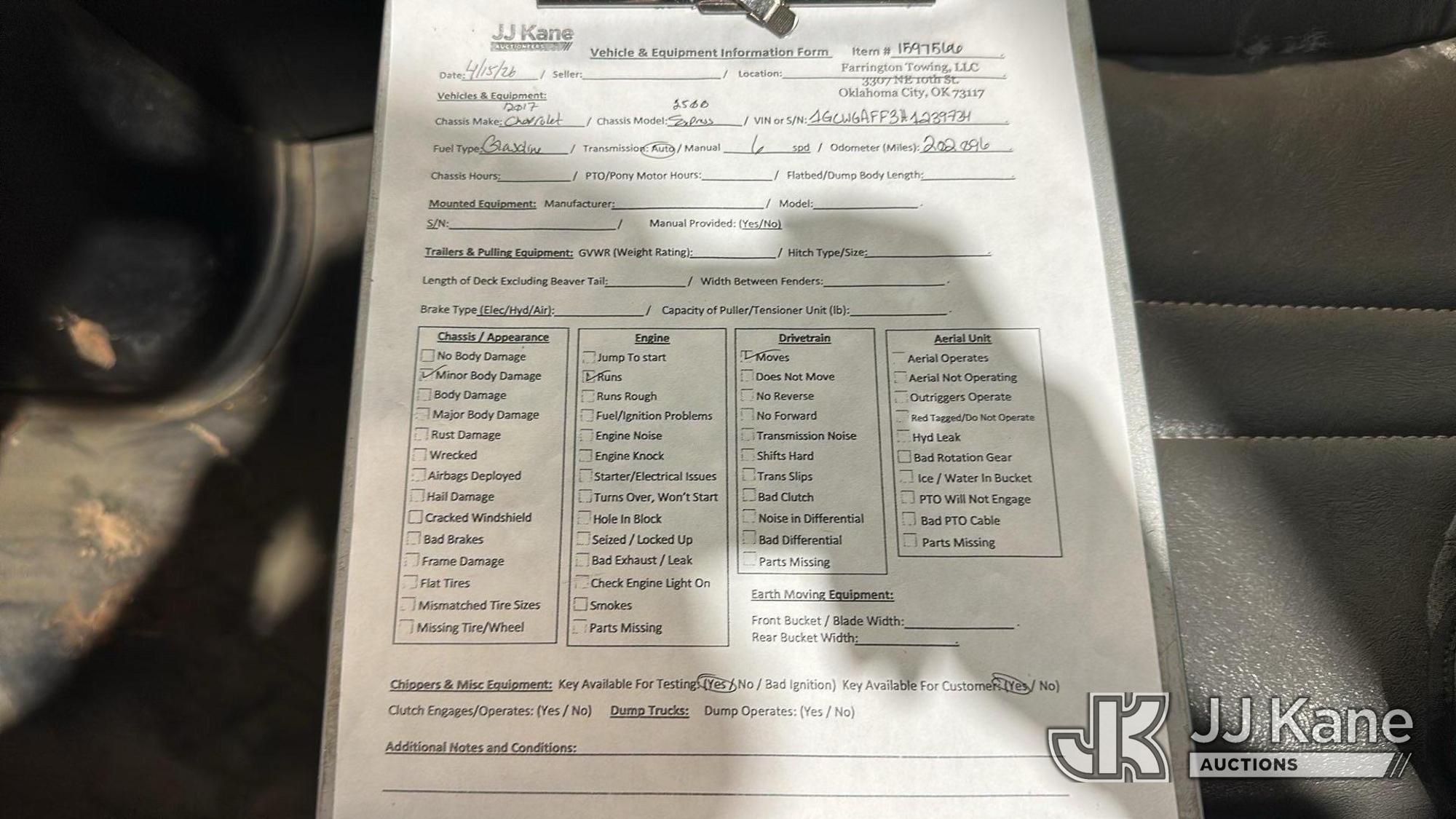 2017 Chevrolet Express 2500 Cargo Van, 8-cyl gas, 6-Speed Automatic, A/C, (202,095 miles) (Runs & Moves) (Minor Body Damage) This is a Titled Item*