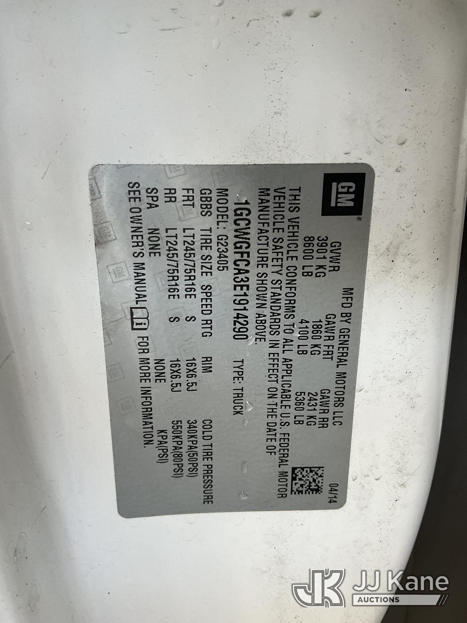 2014 Chevrolet Express 2500 Cargo Van, s/n 1GCWGFCA3E1914290, 4.8L V8 OHV 16V RWD, GAS, 6-Speed Automatic, A/C, with Ladder rack, tow package, (106,781 miles) (Runs & Moves) This is a Titled Item*