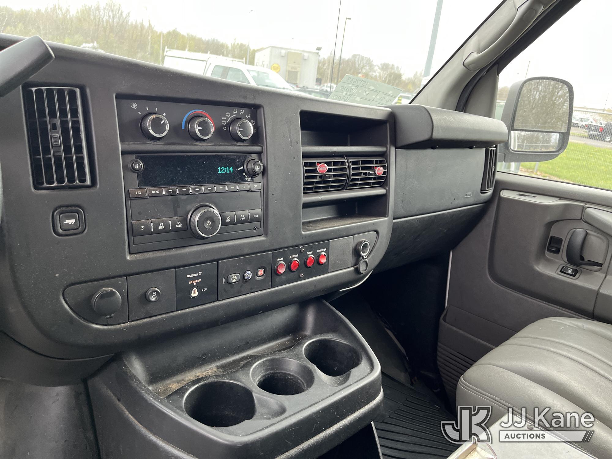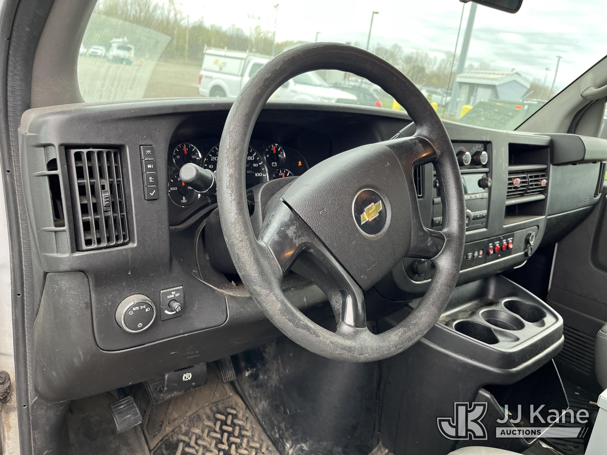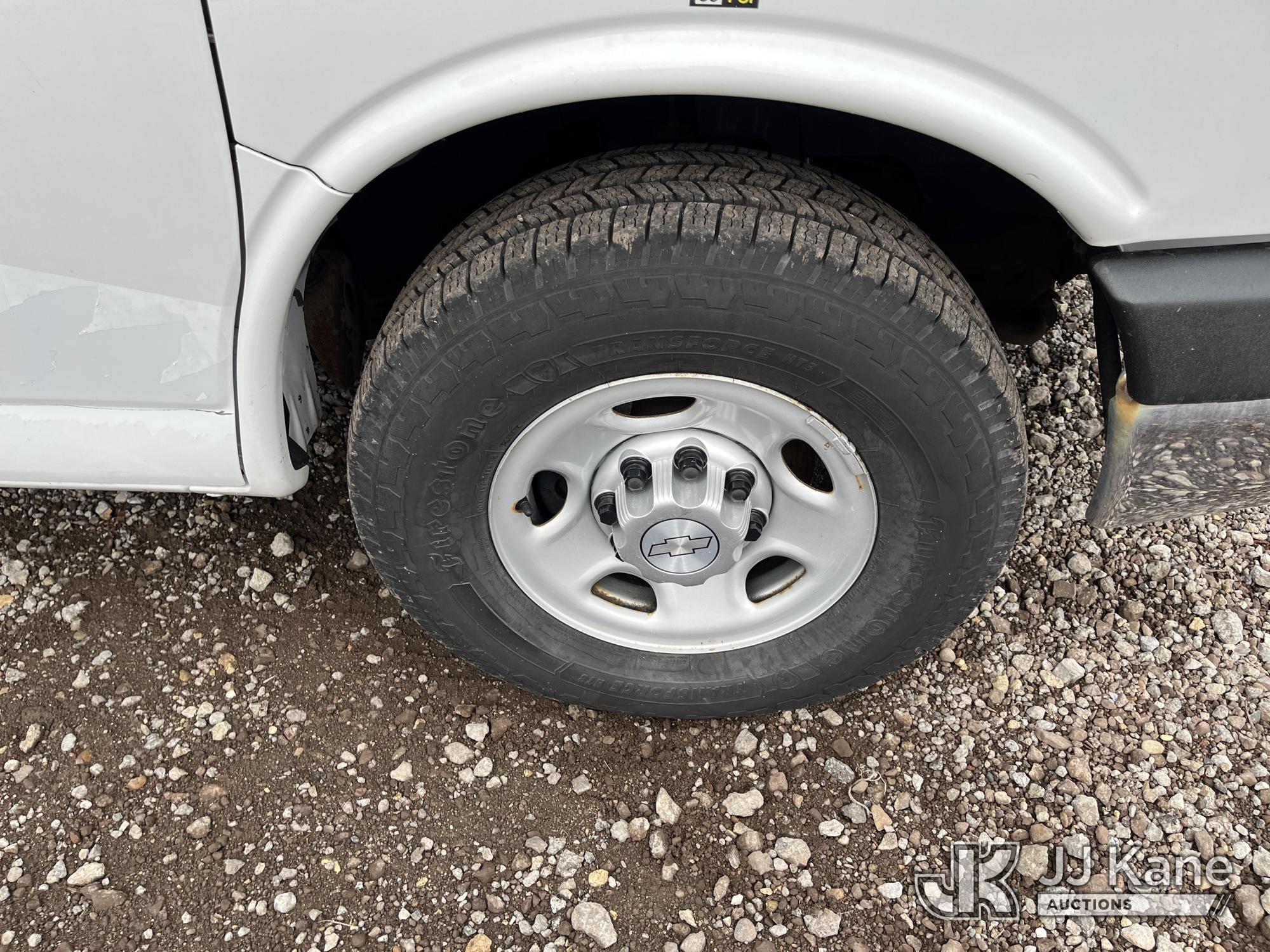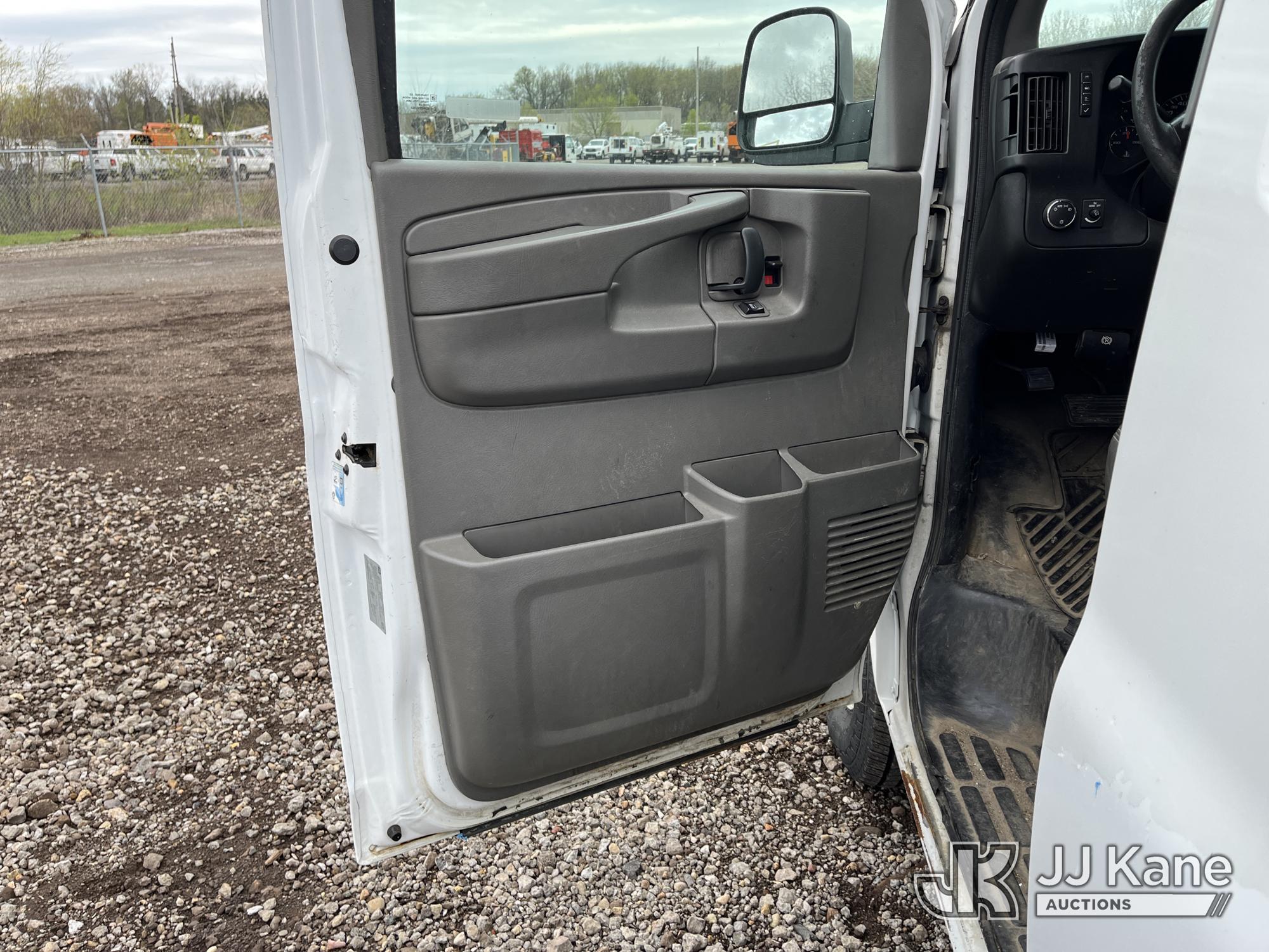 2015 Chevrolet Express G2500 Cargo Van, 4.8L V8 FFV gas, RWD, 6-Speed Automatic, A/C, (69,017 miles) (Runs & Moves) (Traction Control Light On, Park Brake Light On, Driver Seat Ripped, Body Damage) This is a Titled Item*