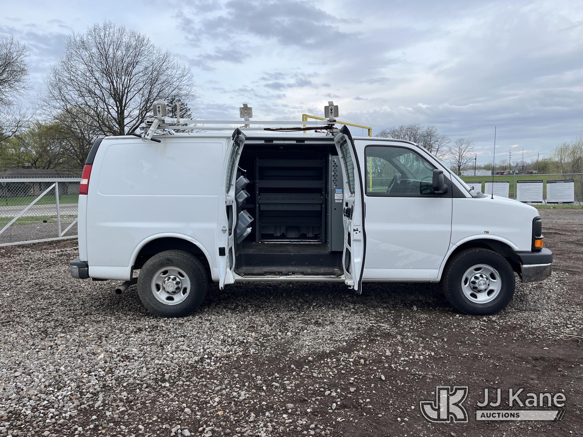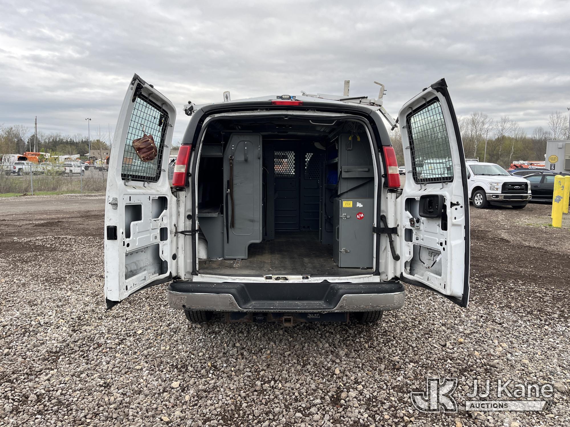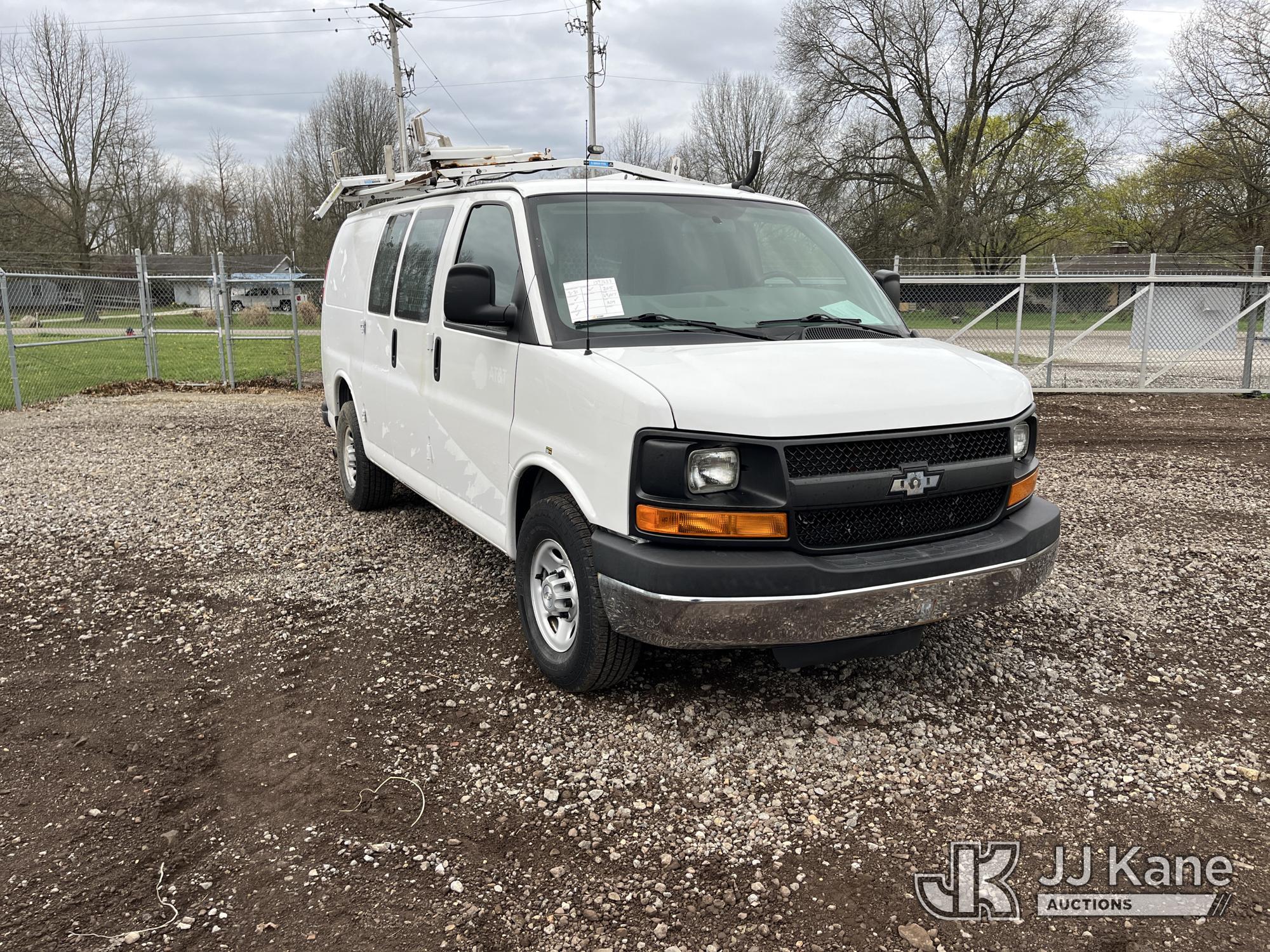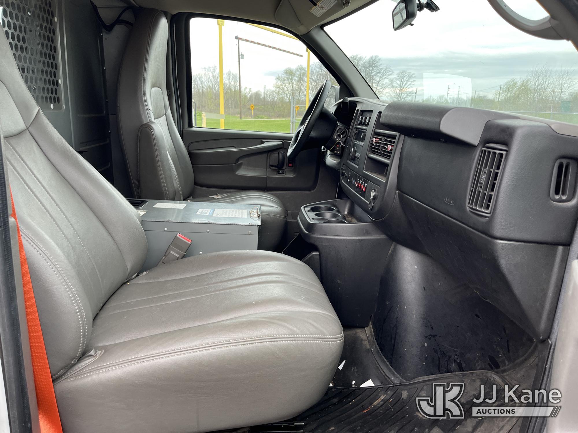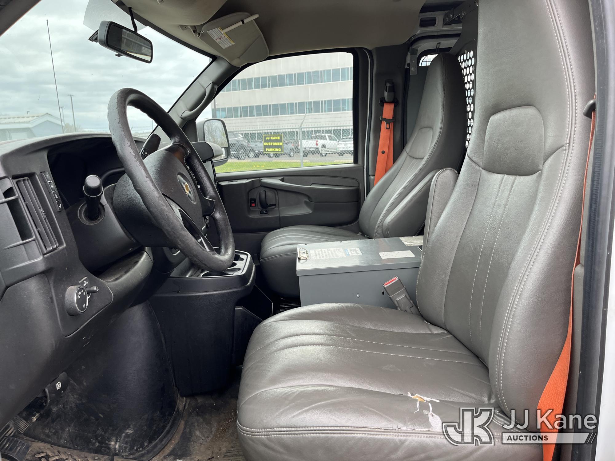 2015 Chevrolet Express G2500 Cargo Van, 4.8L V8 FFV gas, RWD, 6-Speed Automatic, A/C, (69,017 miles) (Runs & Moves) (Traction Control Light On, Park Brake Light On, Driver Seat Ripped, Body Damage) This is a Titled Item*