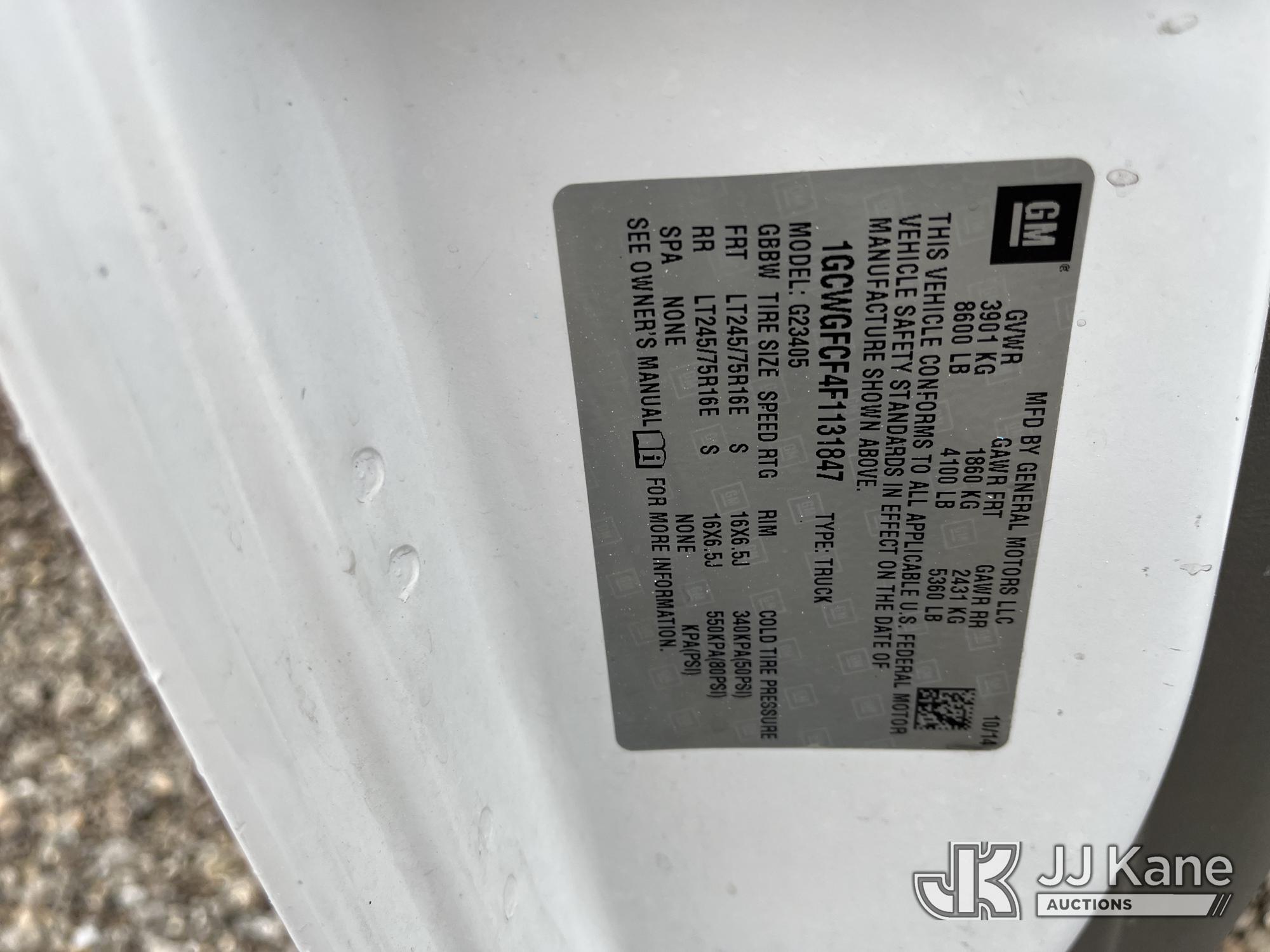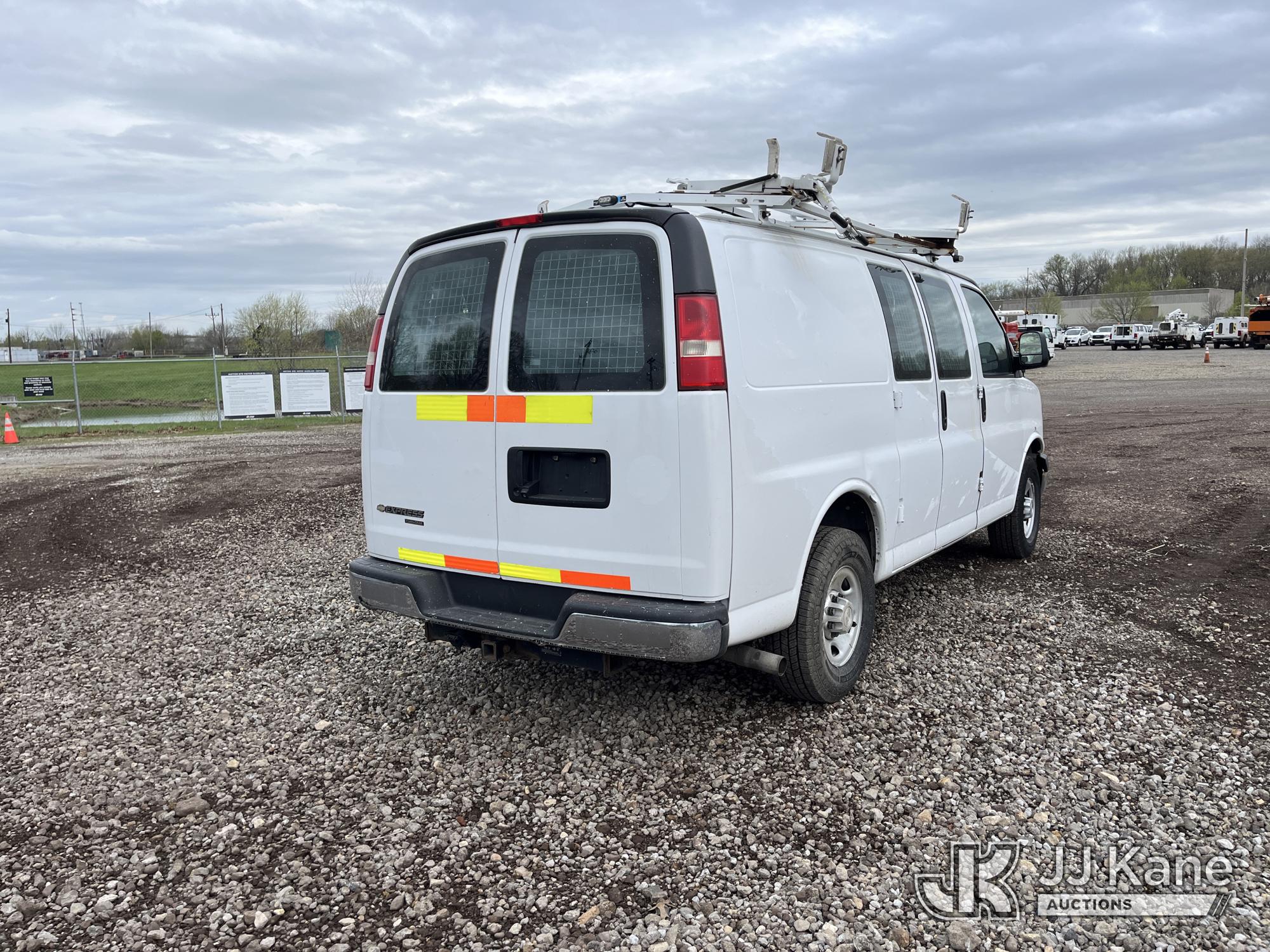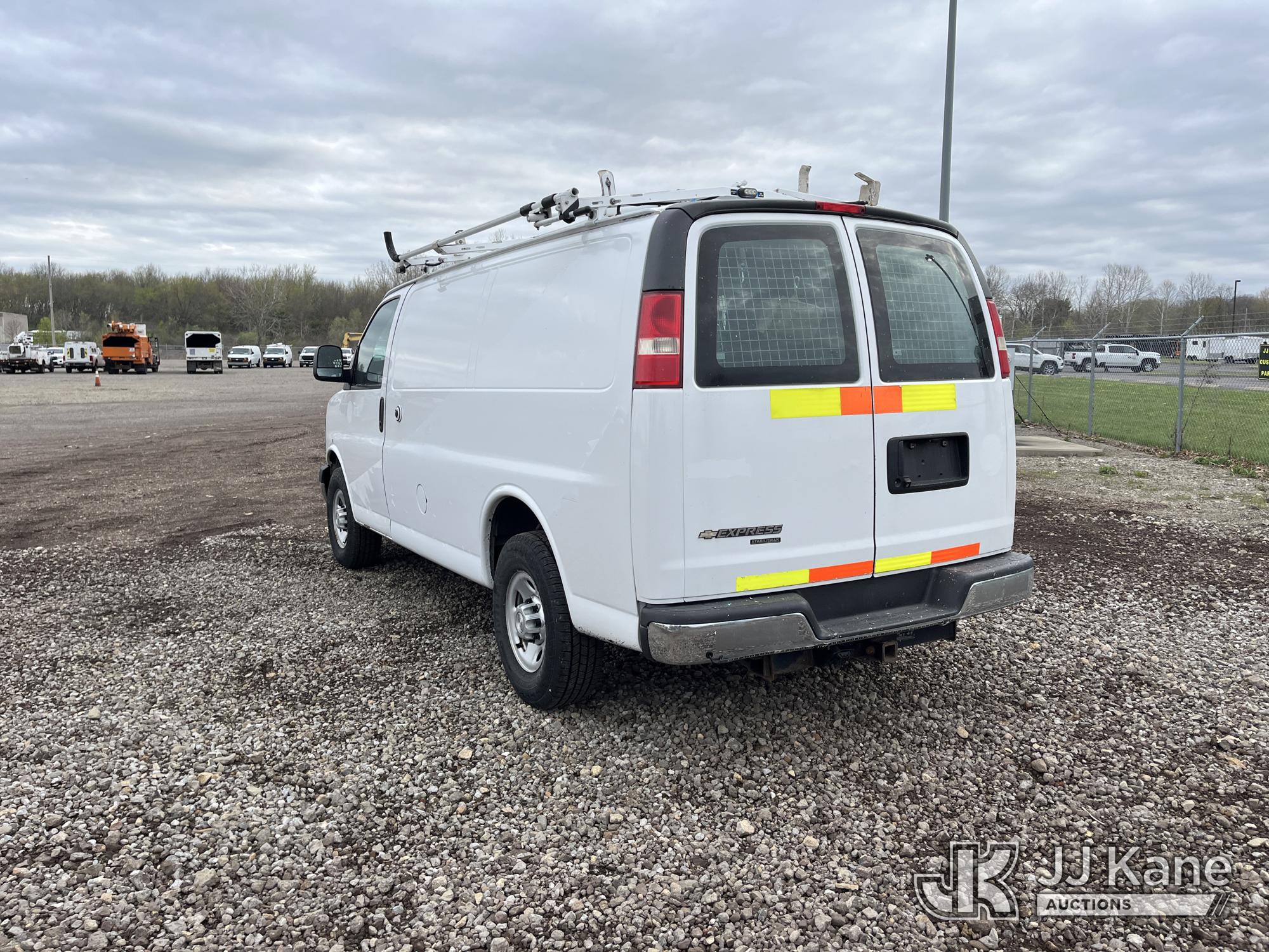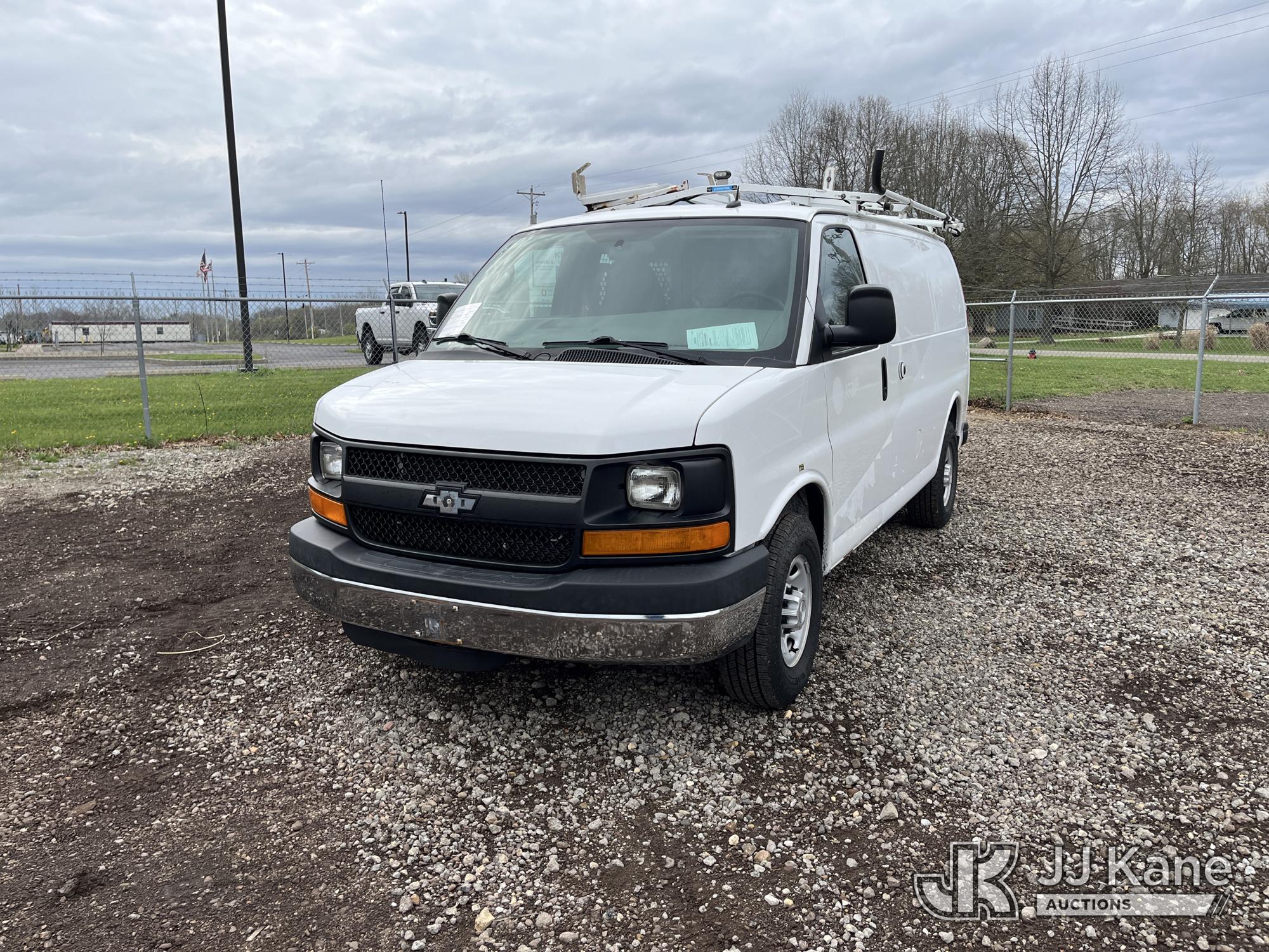 2015 Chevrolet Express G2500 Cargo Van, 4.8L V8 FFV gas, RWD, 6-Speed Automatic, A/C, (69,017 miles) (Runs & Moves) (Traction Control Light On, Park Brake Light On, Driver Seat Ripped, Body Damage) This is a Titled Item*
