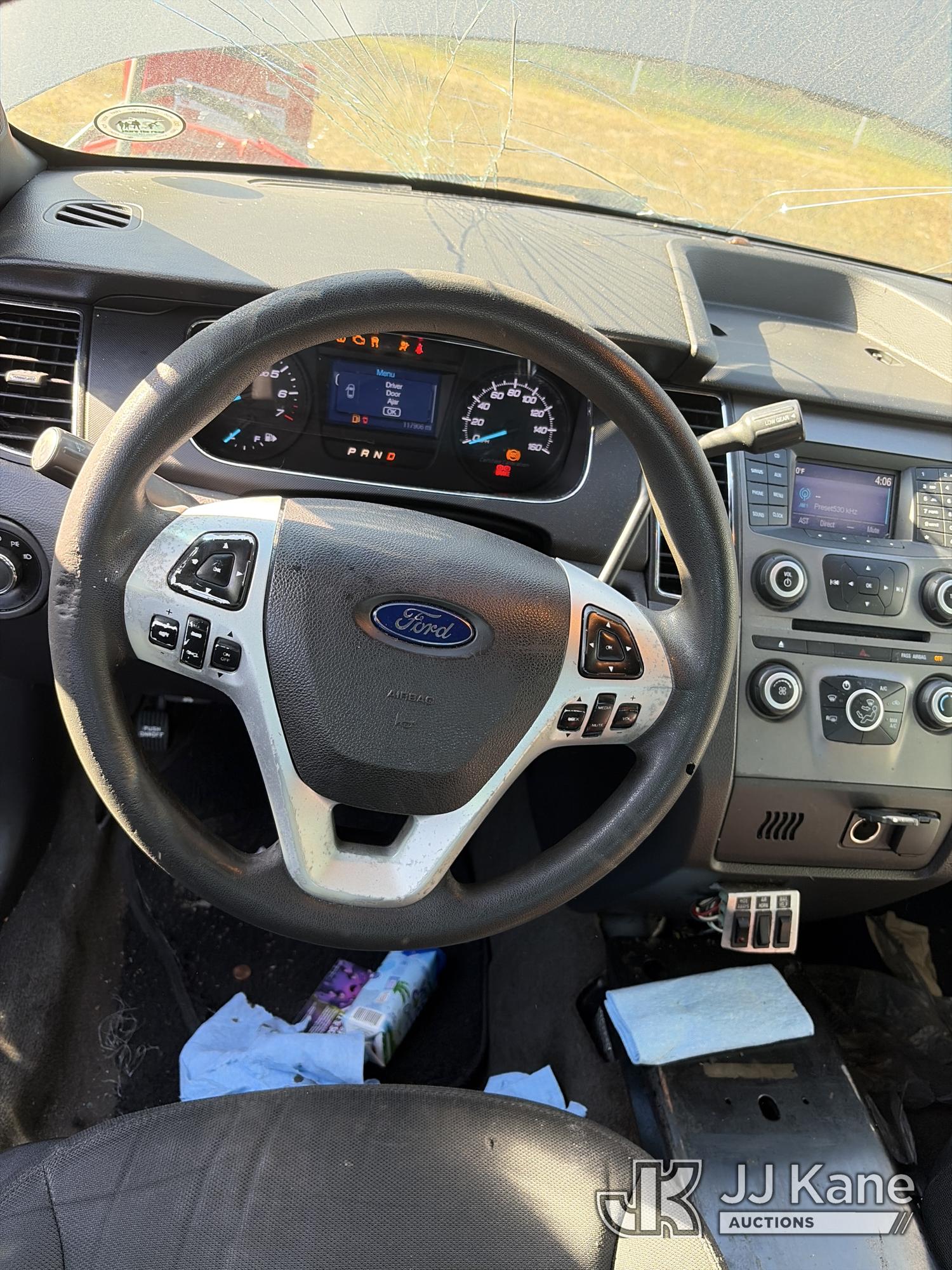 2015 Ford Taurus Police AWD 4-Door Sedan, 3.7L V6 DOHC 24V gas, 6-Speed Automatic, A/C, (117,906 miles) (Wrecked) (Not Running, Condition Unknown) (Air Bags Deployed, Cracked Windshield) This is a Titled Item*