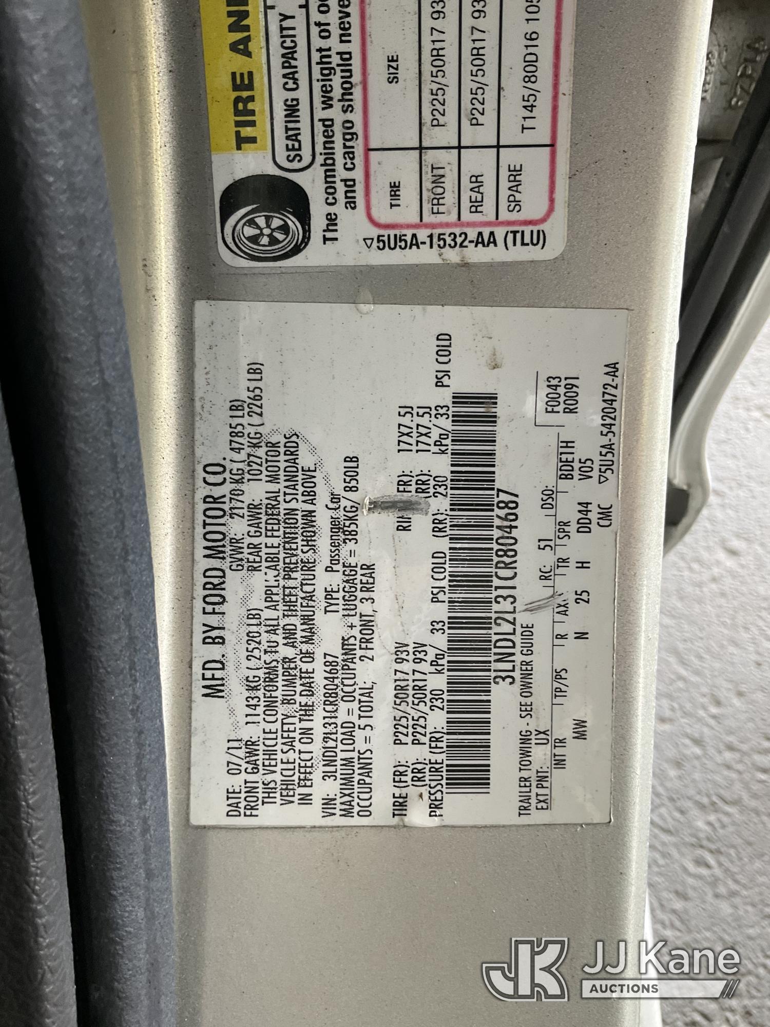 2012 Lincoln MKZ Hybrid Sedan 4-Door Sedan, s/n 3LNDL2L31CR804687, 2.5L L4 DOHC 16V FWD, HYBRID, Continuously Variable Transmission, A/C, (112,543 miles) (Runs & Moves, Airbag Light On) (Bidding Restricted to Licensed Vehicle Dealers Only), This is a Titled Item*