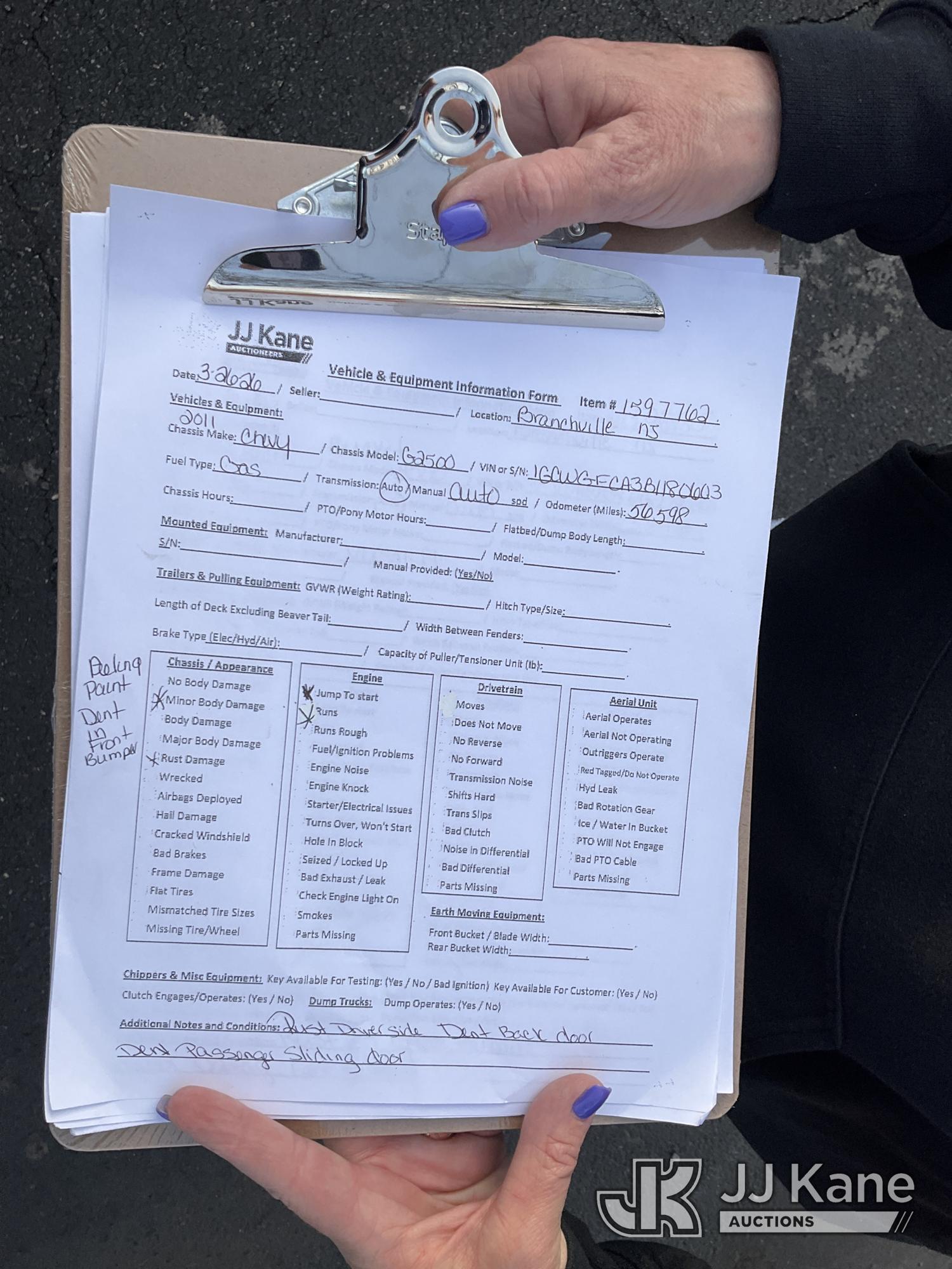 2011 Chevrolet Express G2500 Cargo Van, 8-cyl gas, Auto, A/C, (56,598 miles) (Runs & Moves, Bad Engine, Jump To Start, Must Tow) (Removal is by Appointment Only, Buyer MUST make a appointment prior to picking up, Buyer/Transporter Must have PAID IN FULL RELEASE. No onsite assistance available, Please Come prepared.) This is a Titled Item*