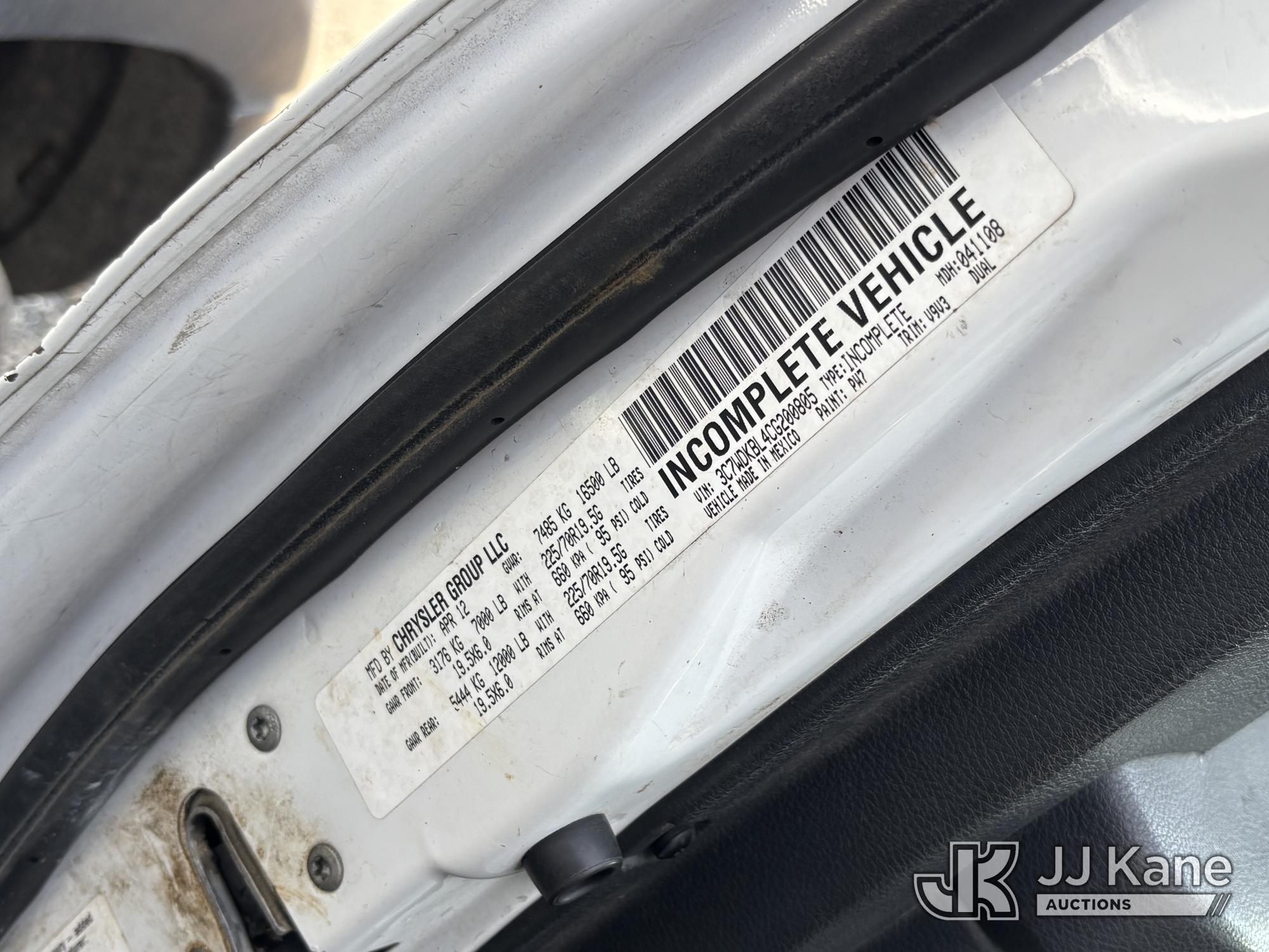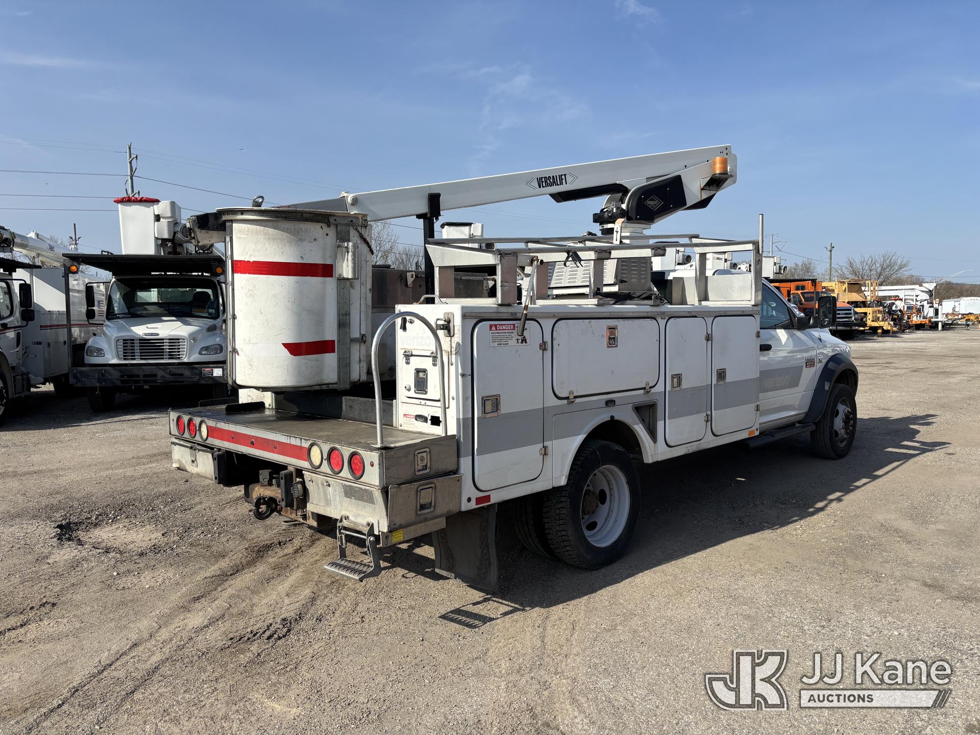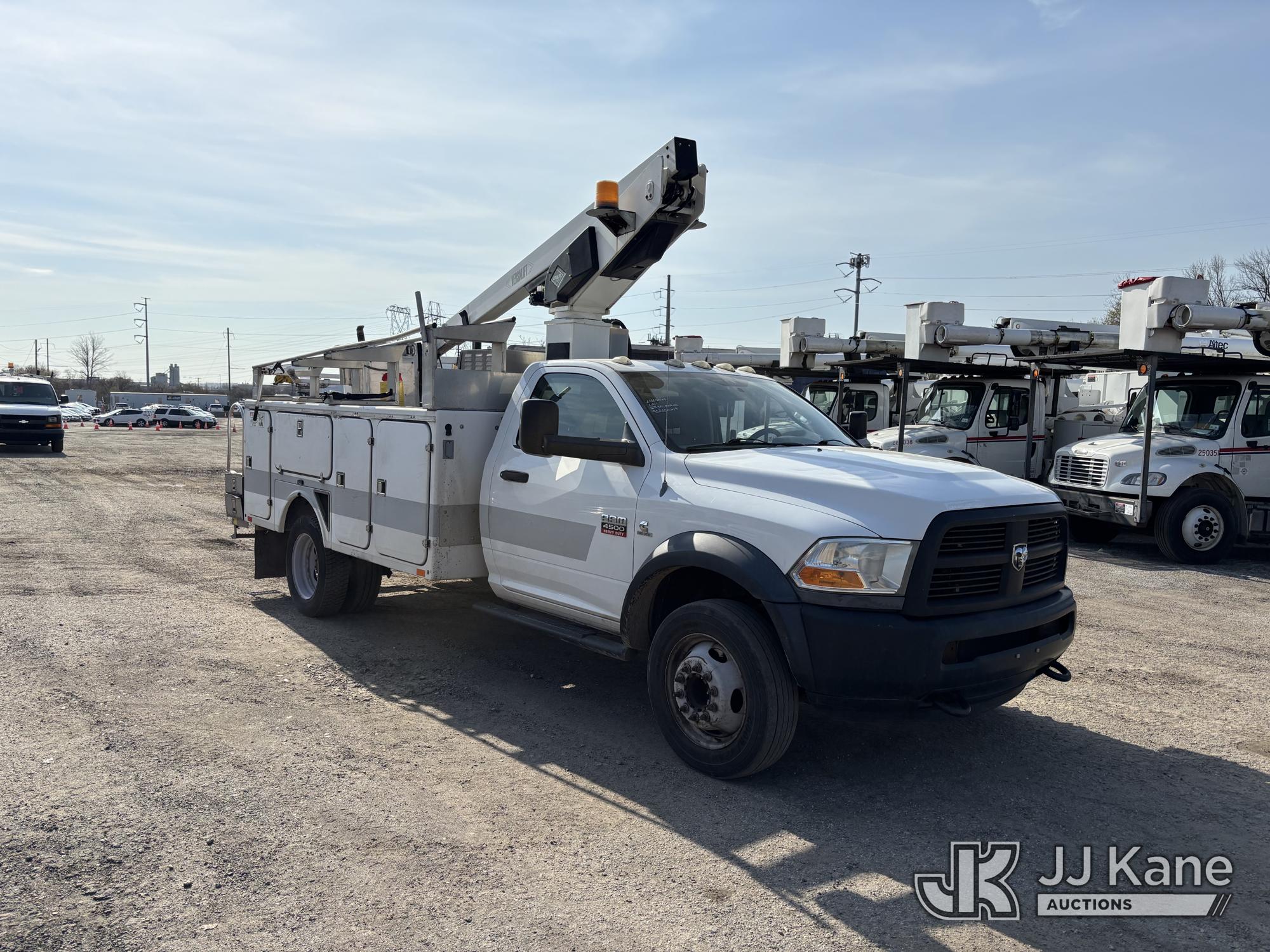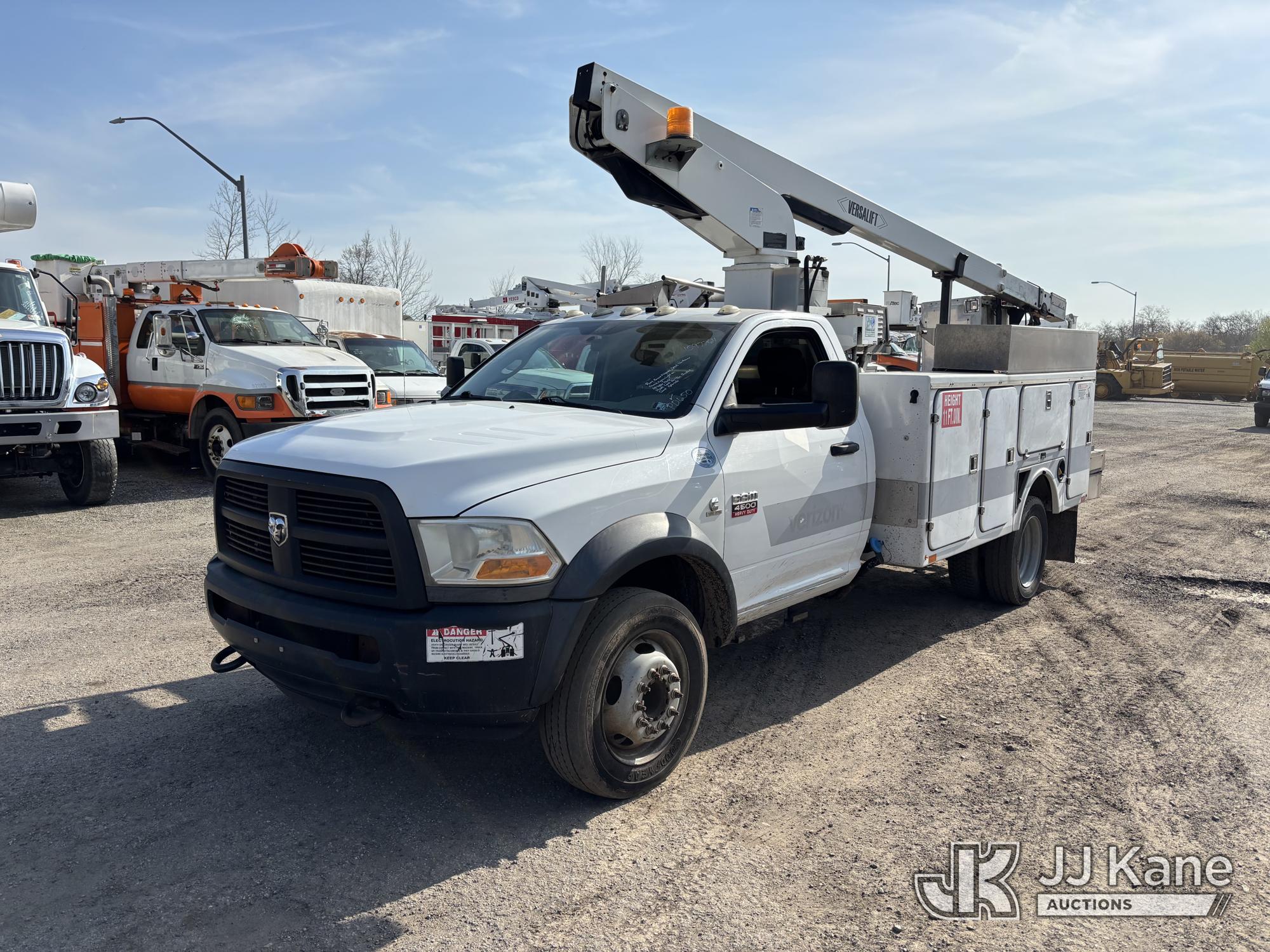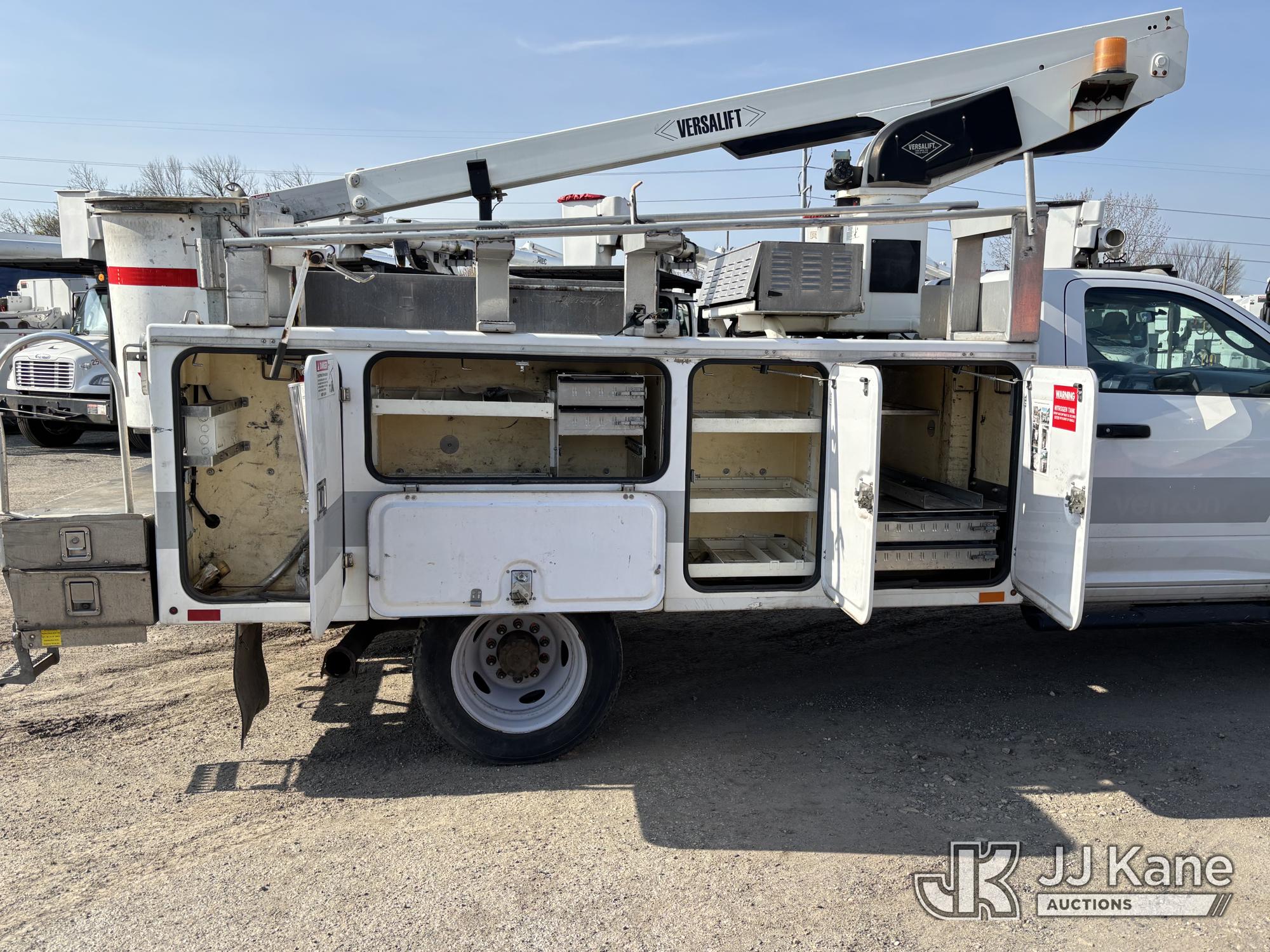Versalift TEL29NE03, 34 ft, Telescopic Non-Insulated Bucket Truck s/n AG120342, with Single-Man Bucket, mounted behind cab on 2012 Ram 4500 Service Truck, 6.7L diesel, Auto, A/C, (90,250 miles) (Runs, Moves & Upper Condition Unknown, Missing Upper Plate, Hydraulic Leak On The Bucket, Don’t Operate) This is a Titled Item*