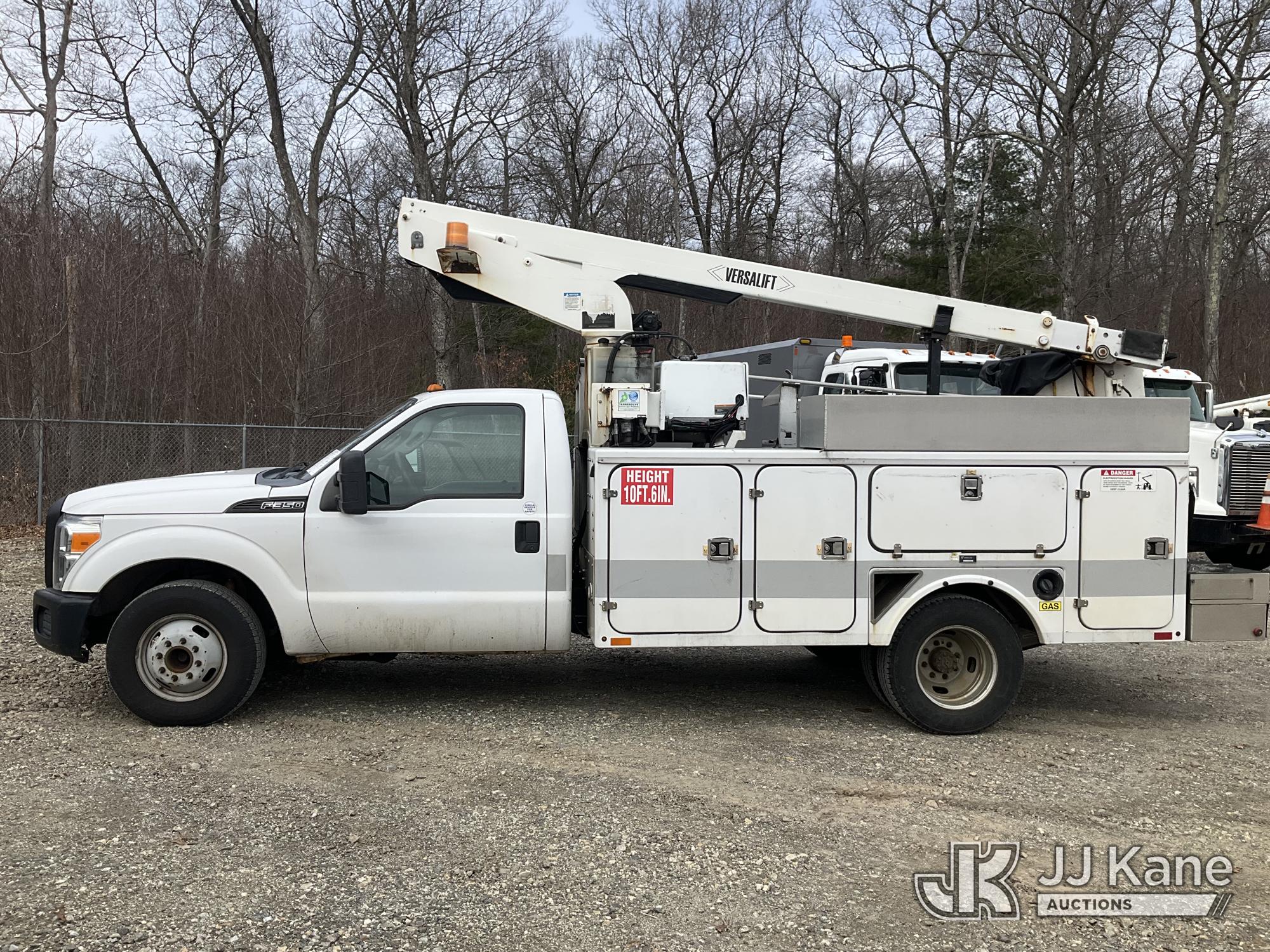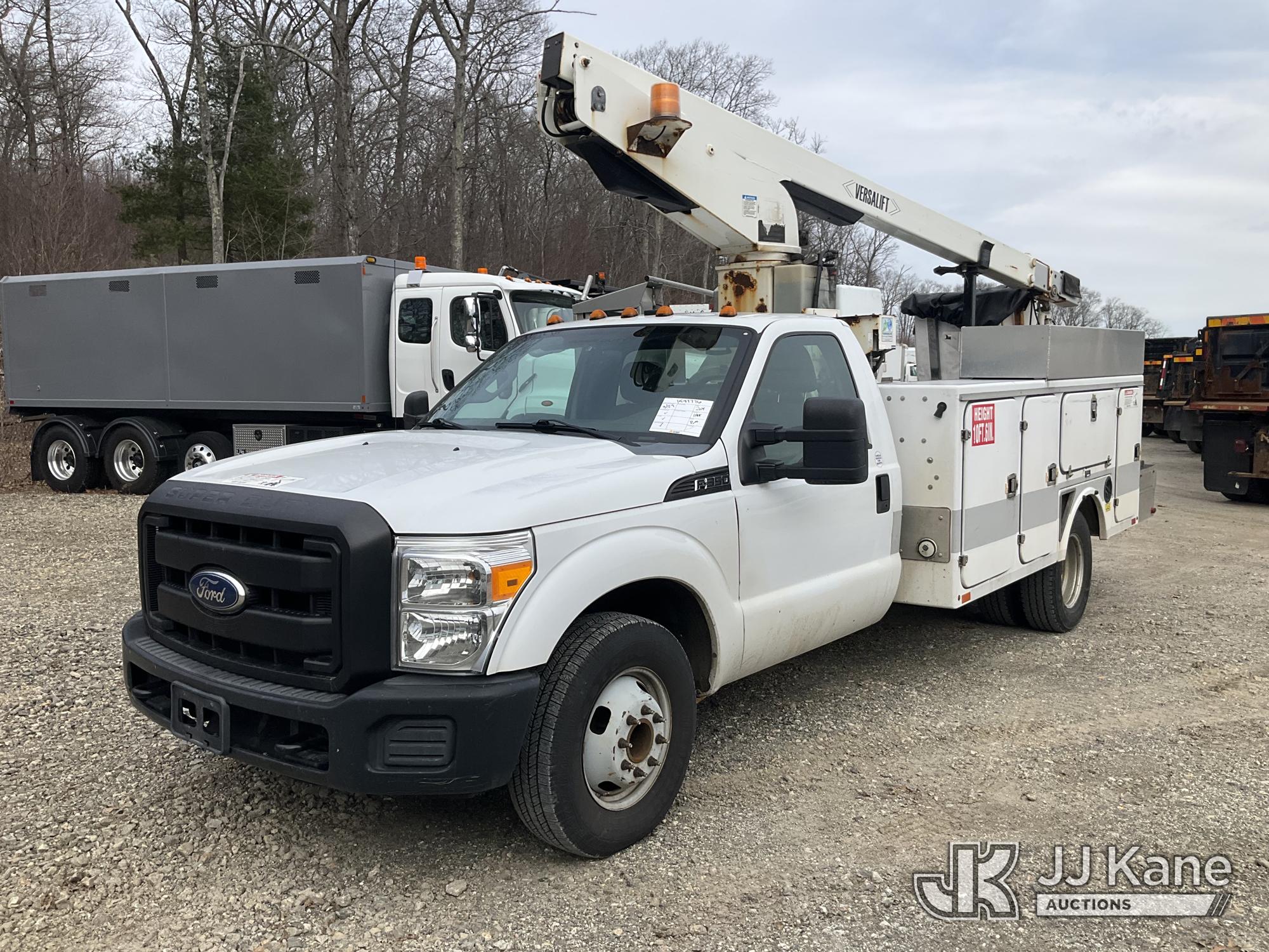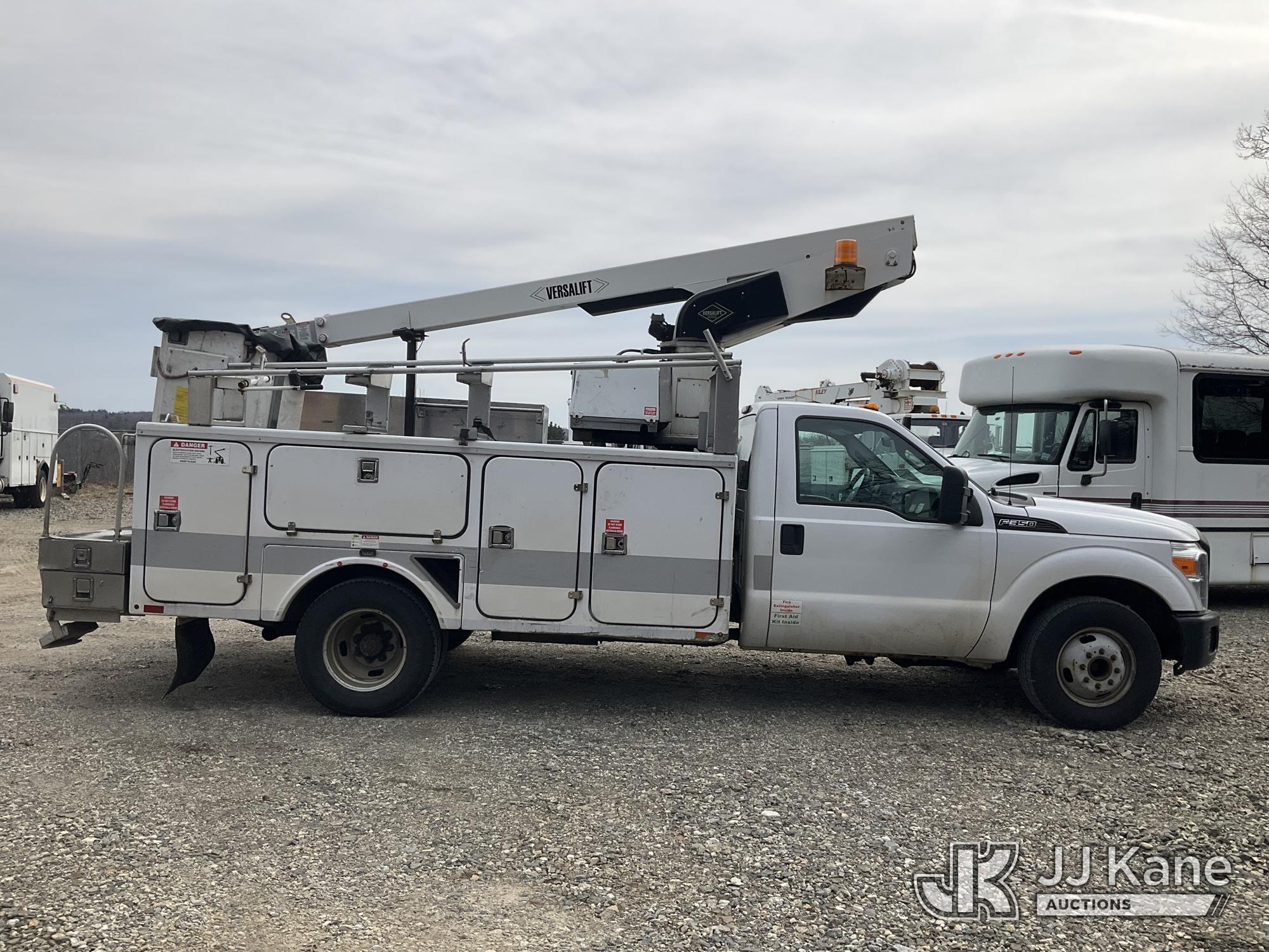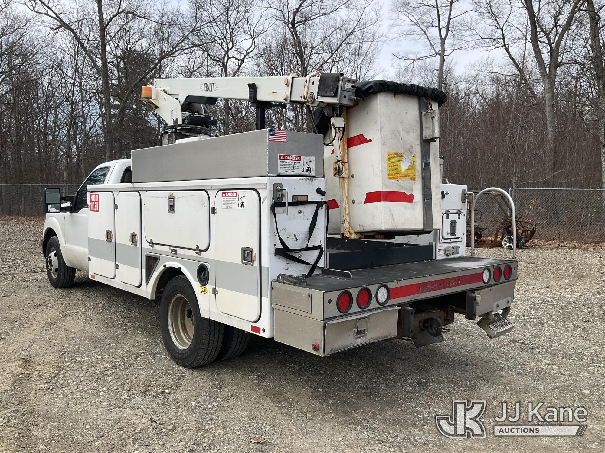 Versalift TEL29N02, 34 ft, Telescopic Non-Insulated Bucket Truck s/n AG110162, with single-man bucket, mounted behind cab on 2012 Ford F-350 SD Service Truck, 6.2L V8 RWD, gas, 6-Speed Automatic, A/C, (119,249 miles) (Runs, Moves & Upper Operates) This is a Titled Item*