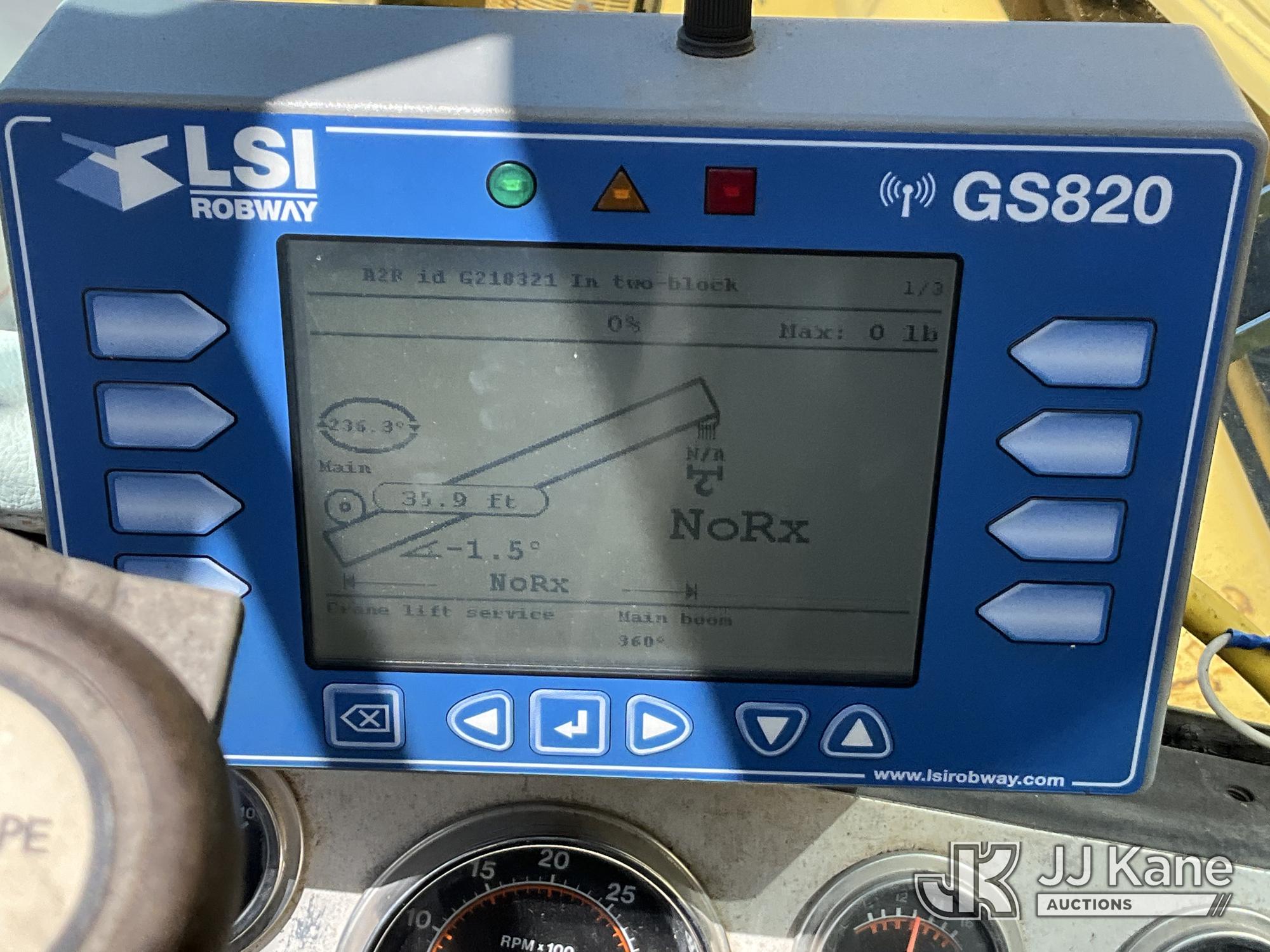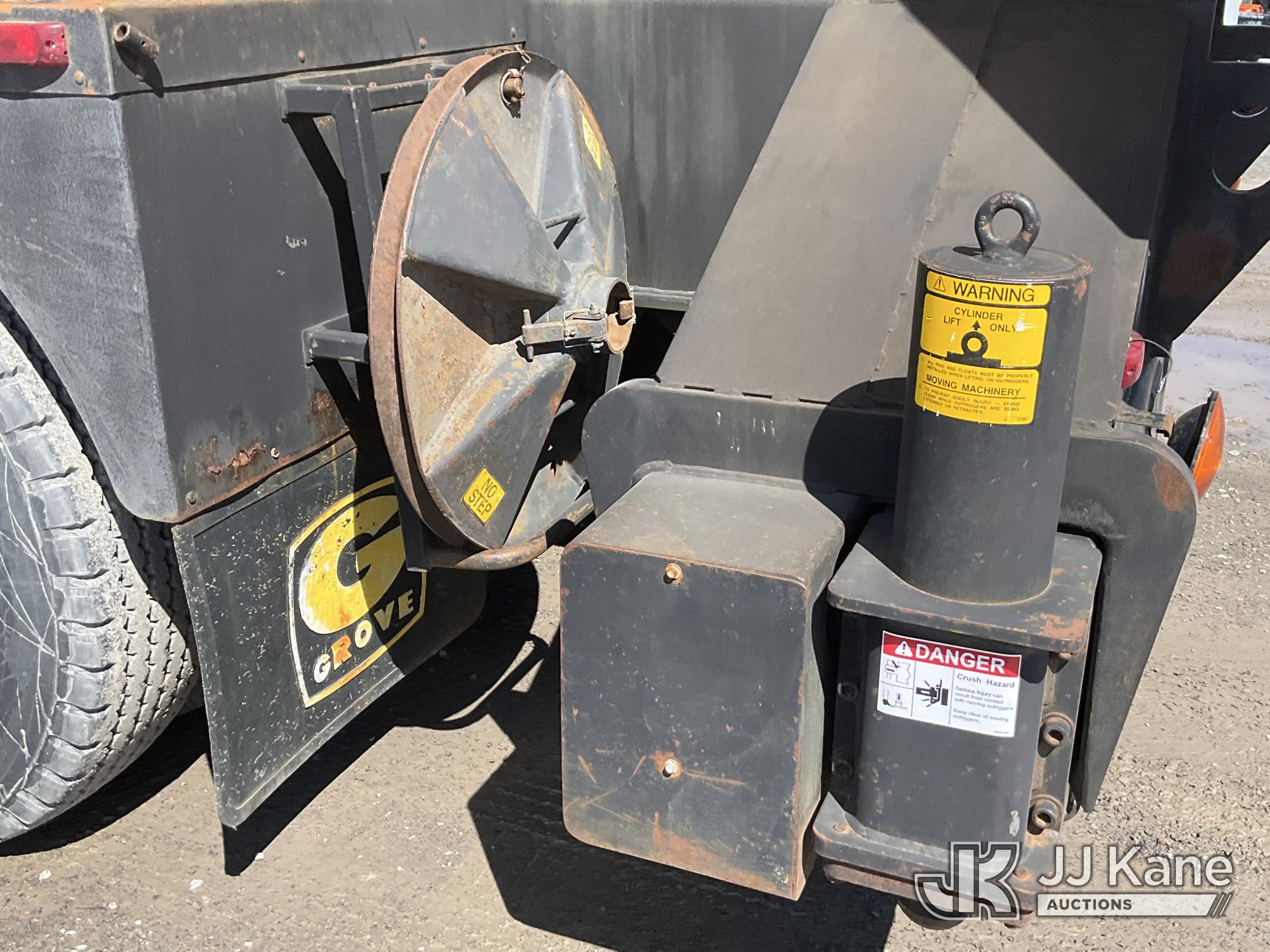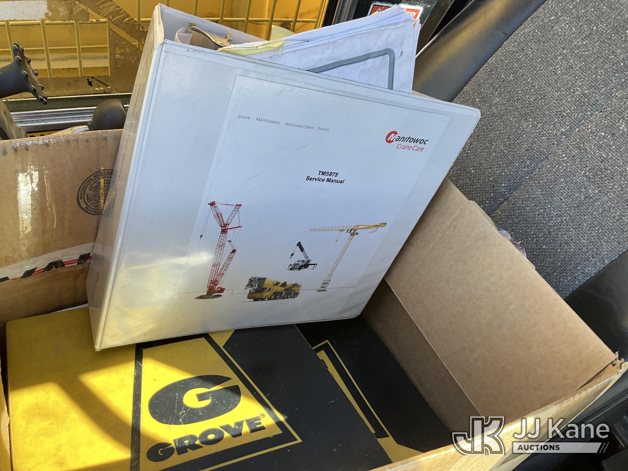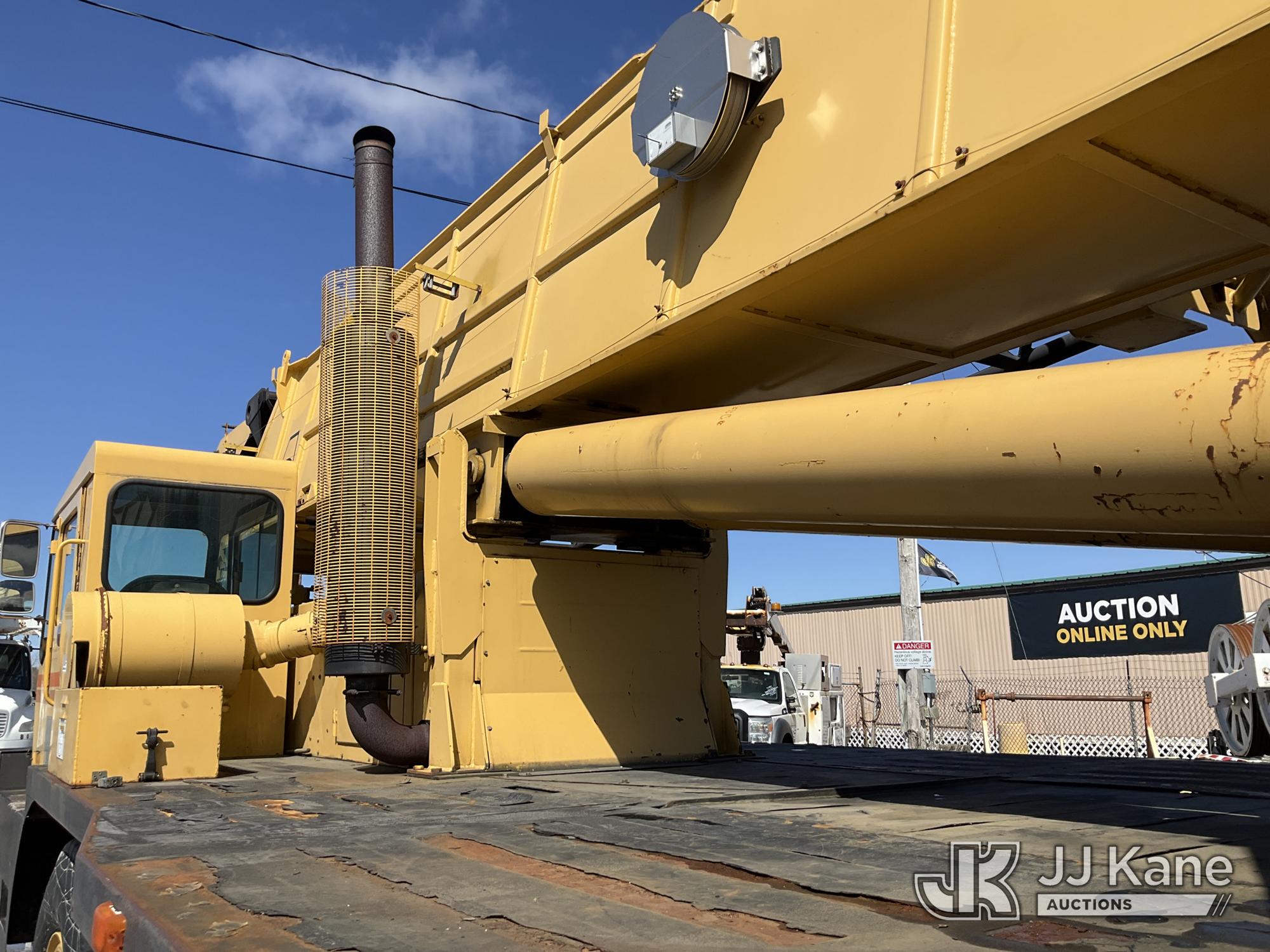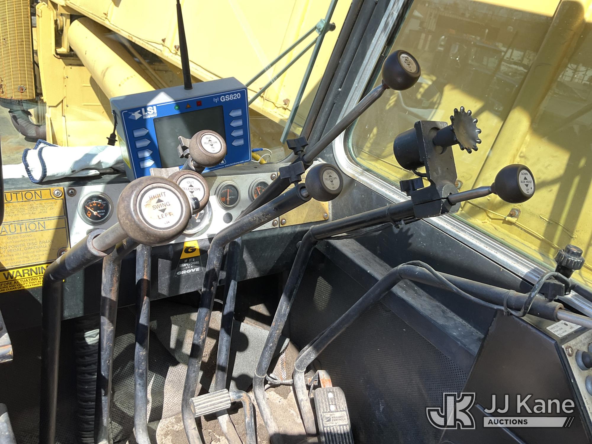 Grove TMS875, 75-Ton Hydraulic Crane s/n 68205, with 36-144 ft Hyd Boom, 32 ft Swing-Away Lattice Jib, Main & Aux Winches, Miller 75-Ton Hook Block, Miller 10-Ton Headache Ball, LSI Robway GS820 Load Management system, Anti-Two Block System & 5 Outriggers, mounted on 1985 Grove 8475G T/A Carrier, s/n LN1PP28003AW, Cummins diesel, 9-spd, with Jacobs Engine Brake, Tandem Front Steering Axles, (1) Spare Tire, (Exempt from Odometer Disclosure - Reads 5,760 miles) (Runs & Moves, Seller States In Operating Condition, (NYS Transferable Registration Only)) (Reads 3,397 hours)*
