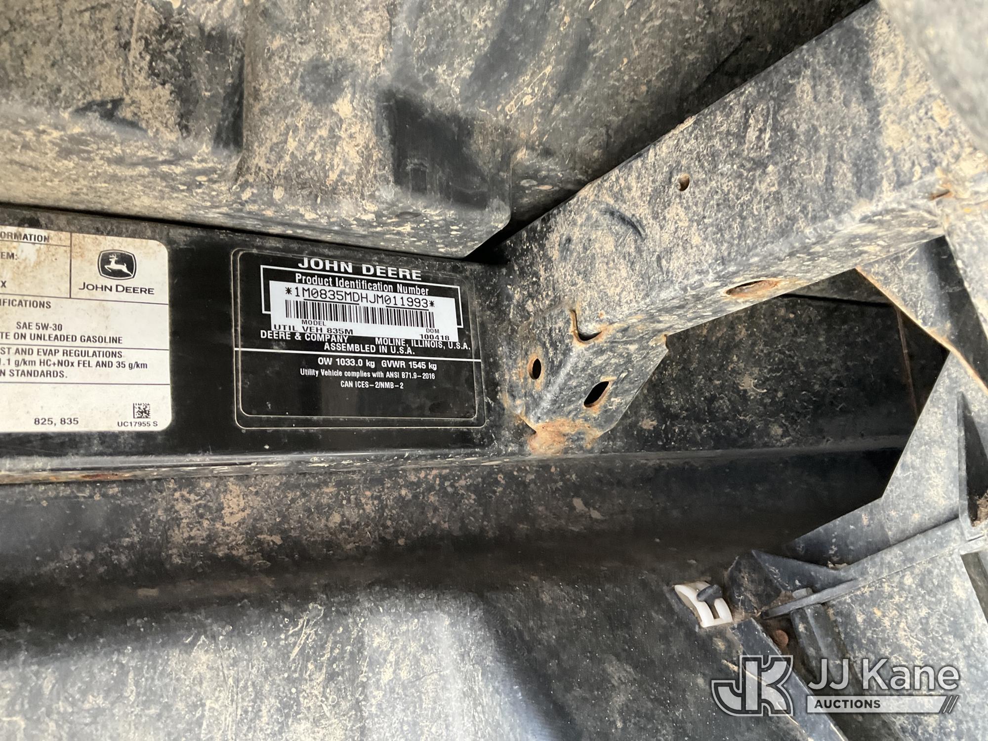 2018 John Deere XUV835M 4x4 ATV, UTV, Side by SIde, s/n 1M0835MDHJM011993, 3-cyl gas, Auto, A/C, with Camso UTV4S1 Crawler Tracks, Set of 4 Tires, Dump Bed, Front Winch, () ANUFACTURERS CERTIFICATE OF ORIGIN) (Reads 413 hours)*