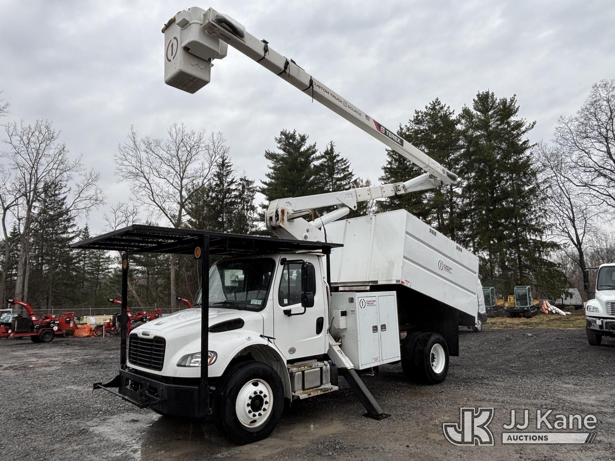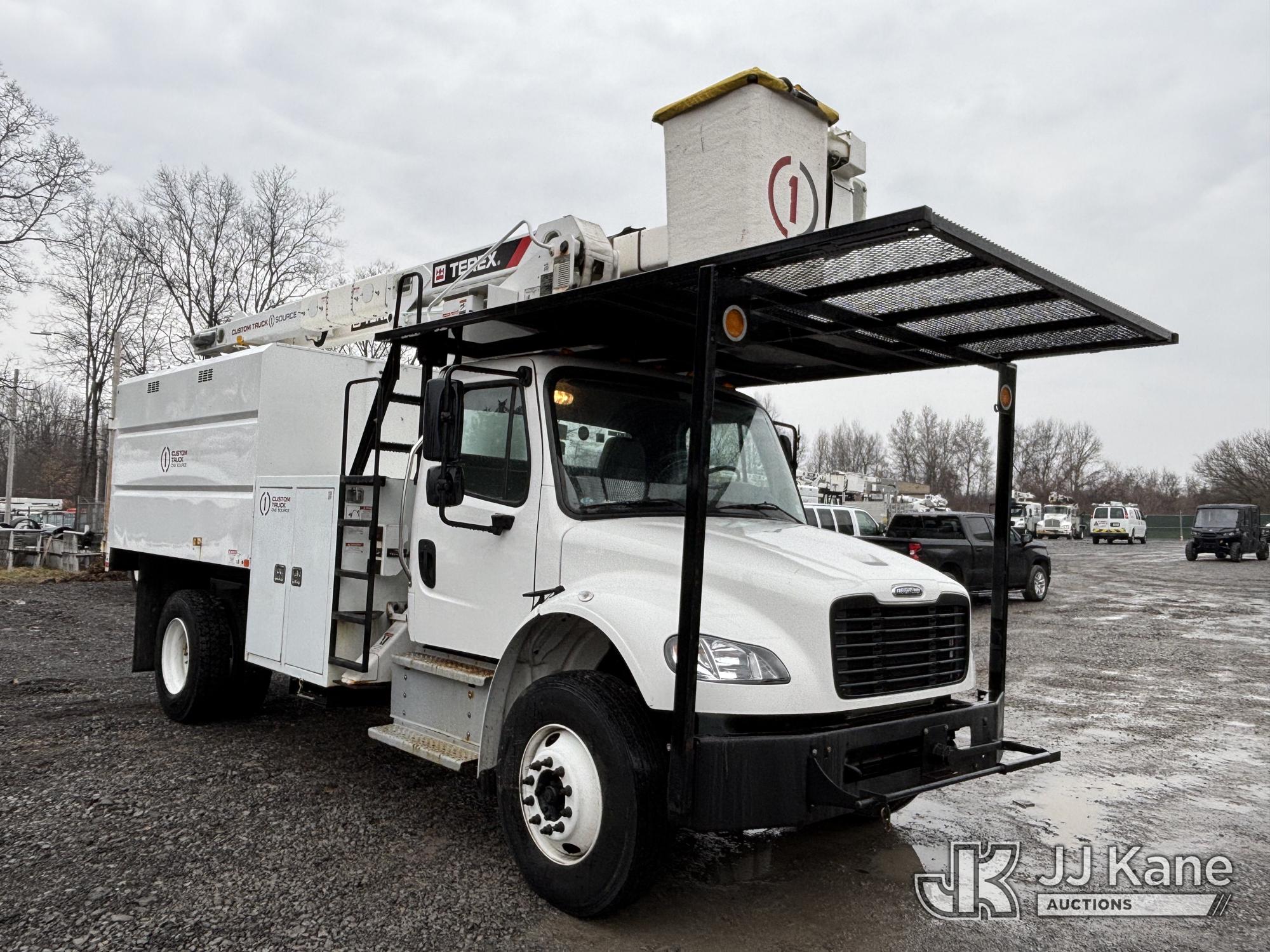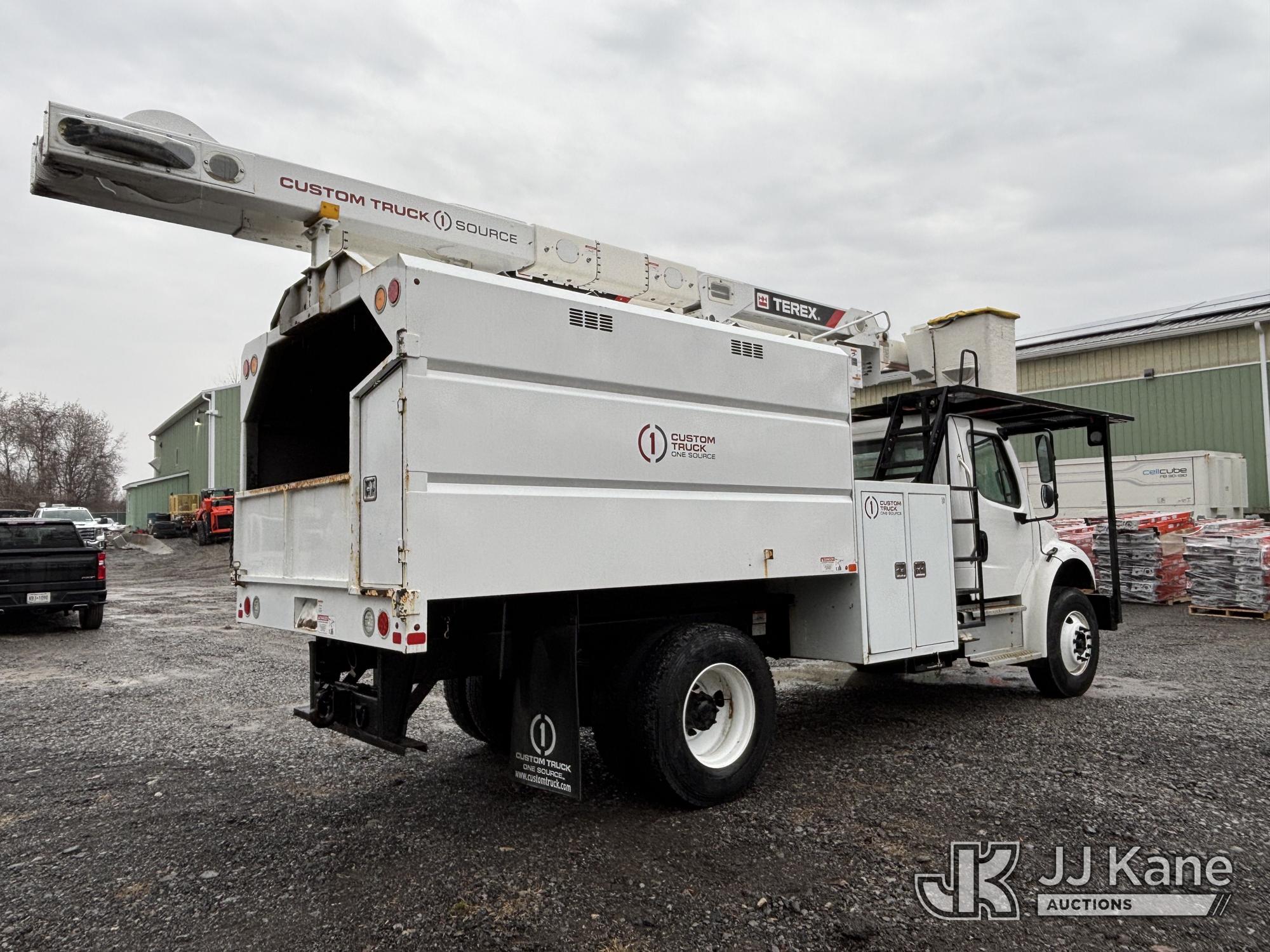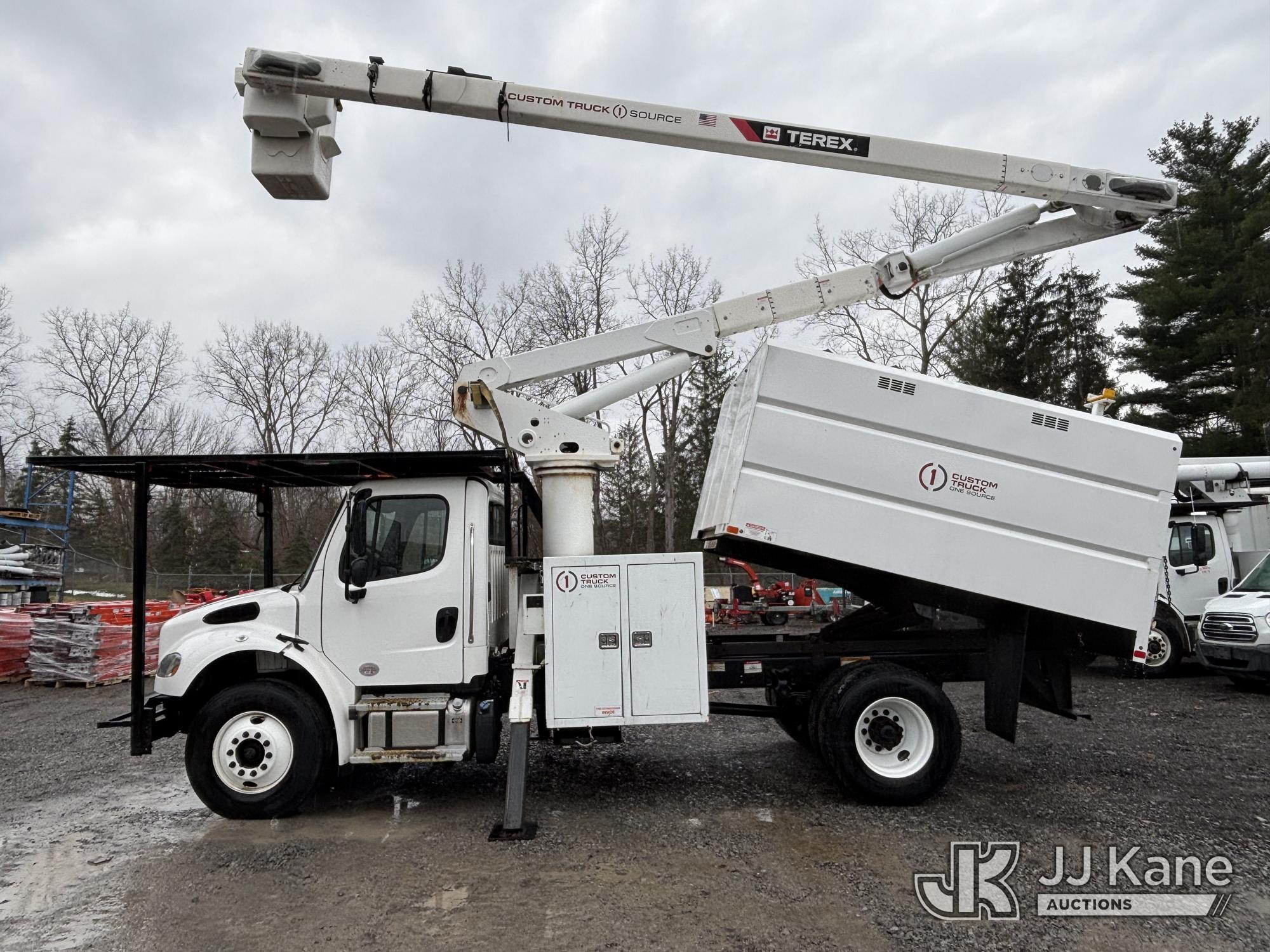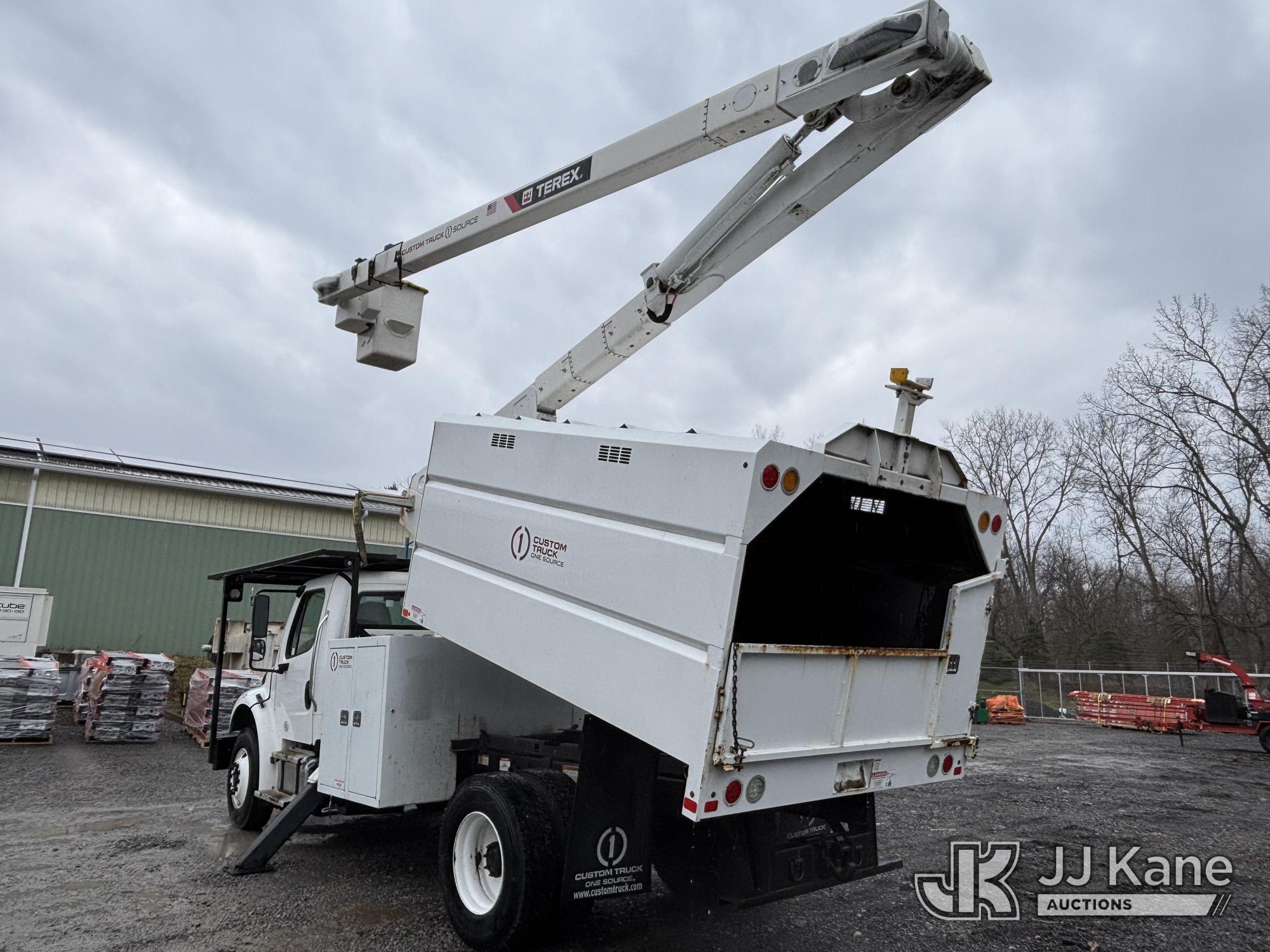 Terex XTPRO56, 61 ft, Over-Center Bucket Truck s/n 2211277666, with single-man bucket & 2 hyd outriggers, mounted behind cab on 2022 Freightliner M2 Chipper Dump Truck, Cummins 6.7L diesel, Auto, A/C, (33,988 miles) (Runs, Moves & Operates) (Body, Rust & Paint Damage) (Reads 833 hours) This is a Titled Item*