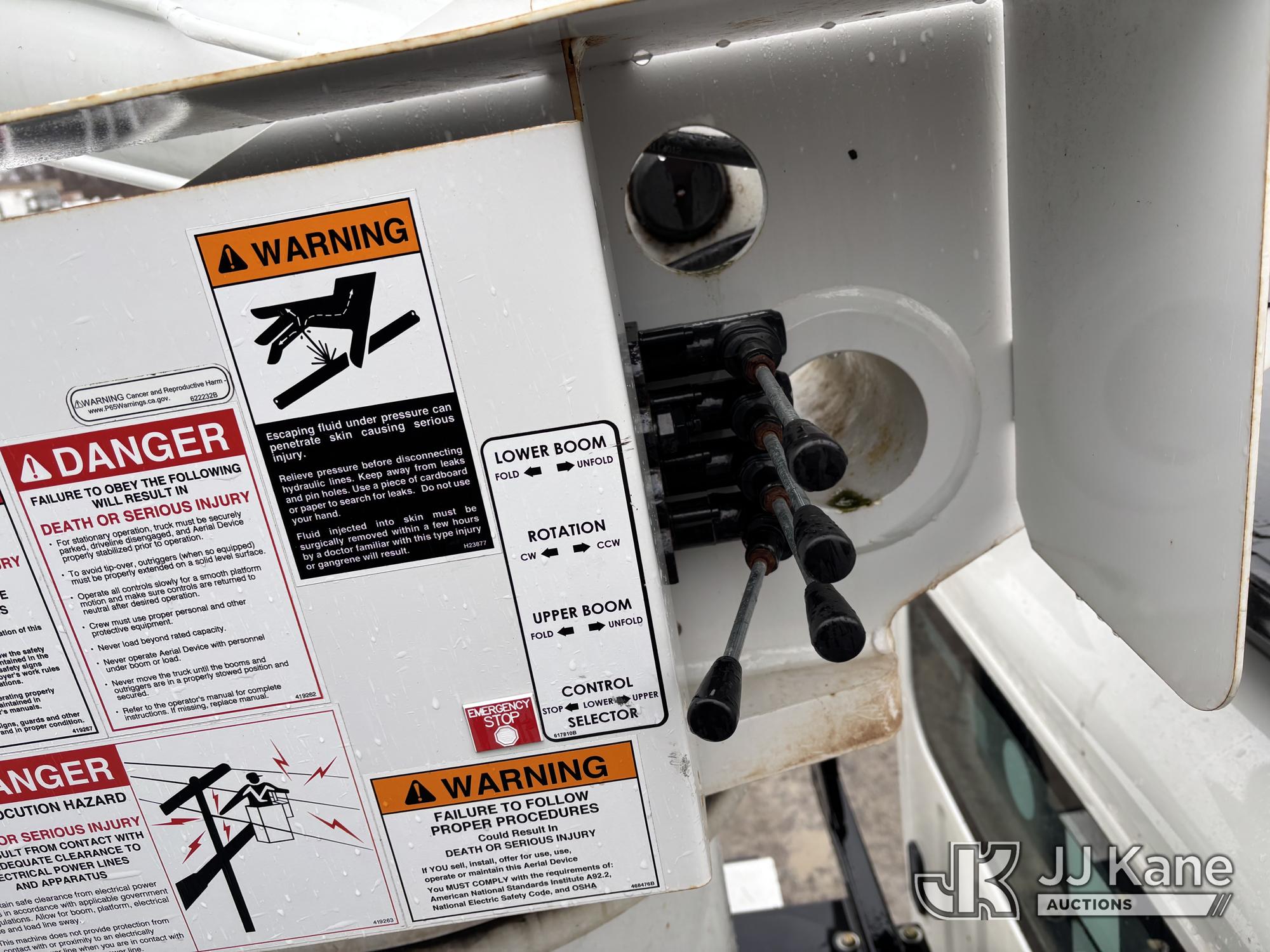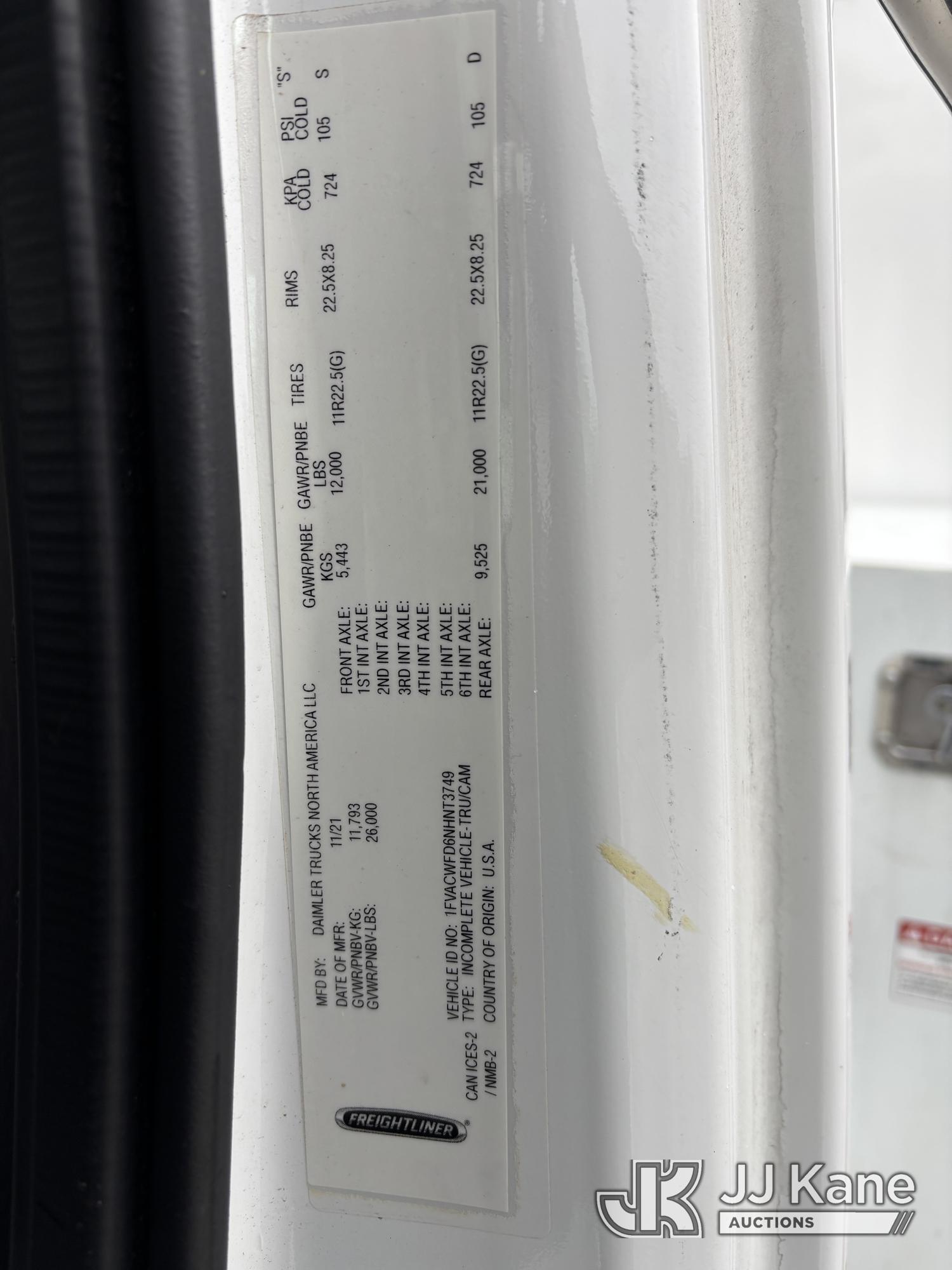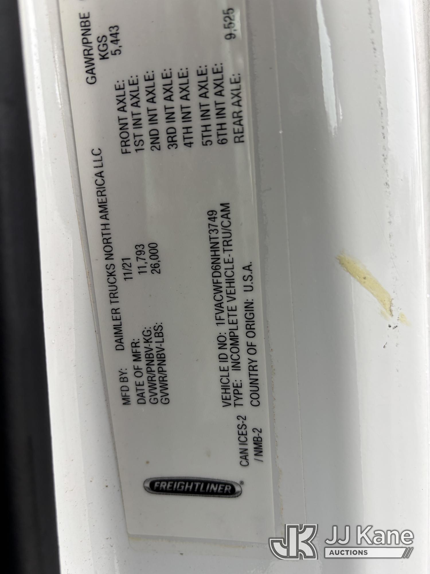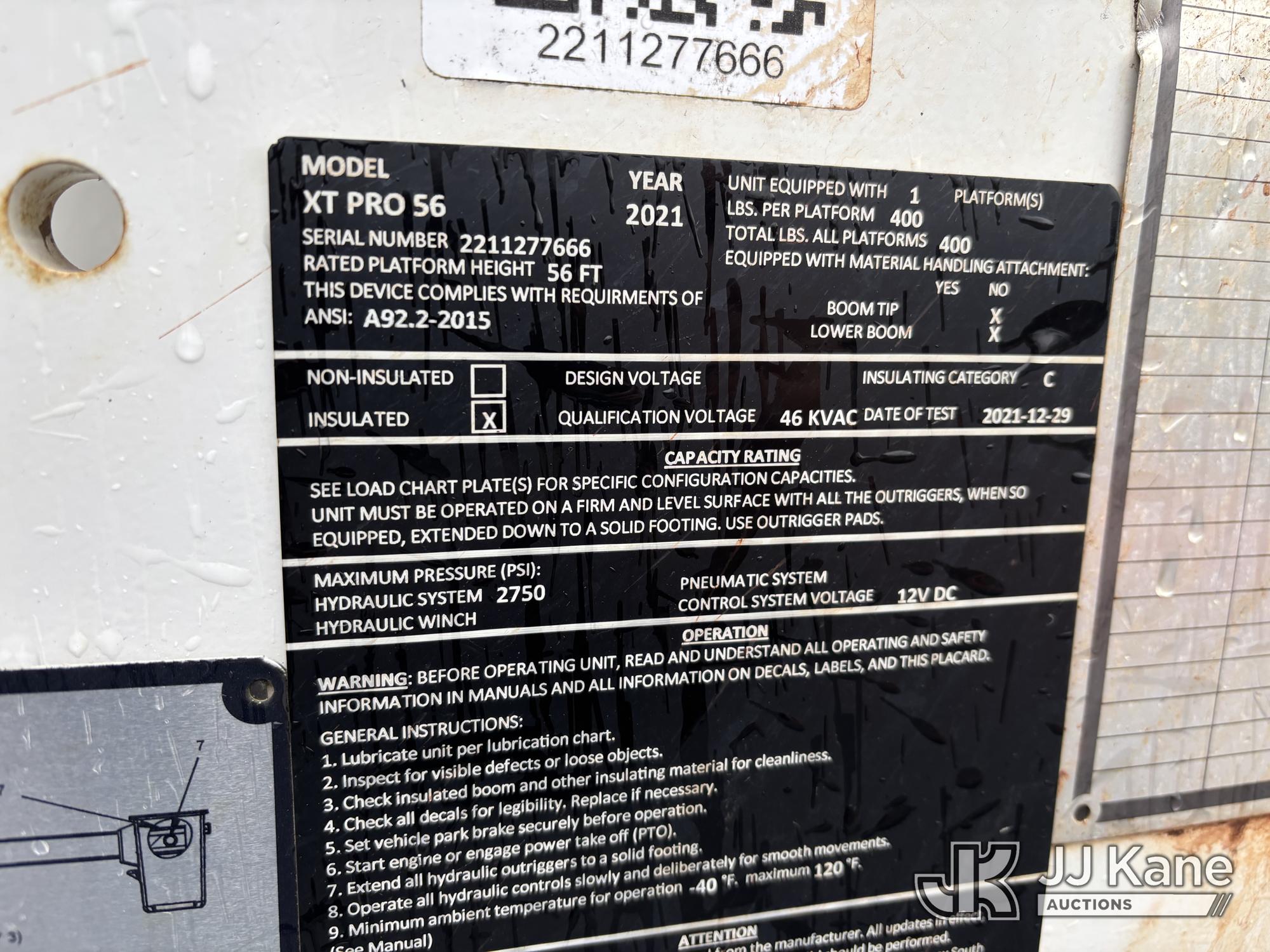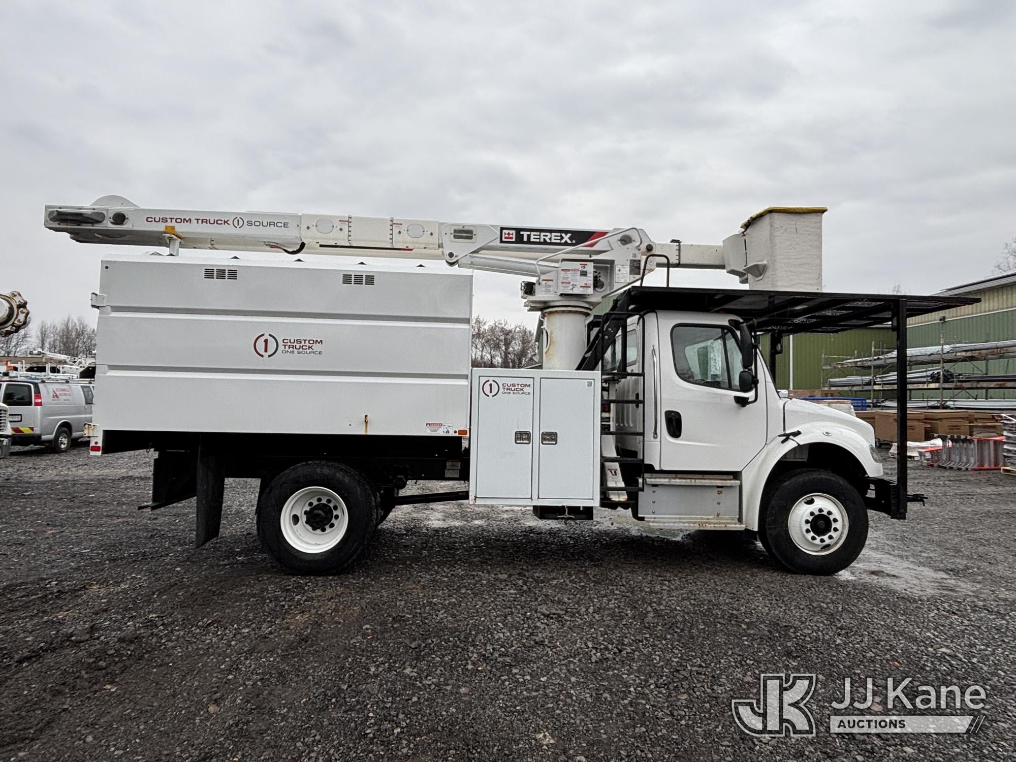 Terex XTPRO56, 61 ft, Over-Center Bucket Truck s/n 2211277666, with single-man bucket & 2 hyd outriggers, mounted behind cab on 2022 Freightliner M2 Chipper Dump Truck, Cummins 6.7L diesel, Auto, A/C, (33,988 miles) (Runs, Moves & Operates) (Body, Rust & Paint Damage) (Reads 833 hours) This is a Titled Item*