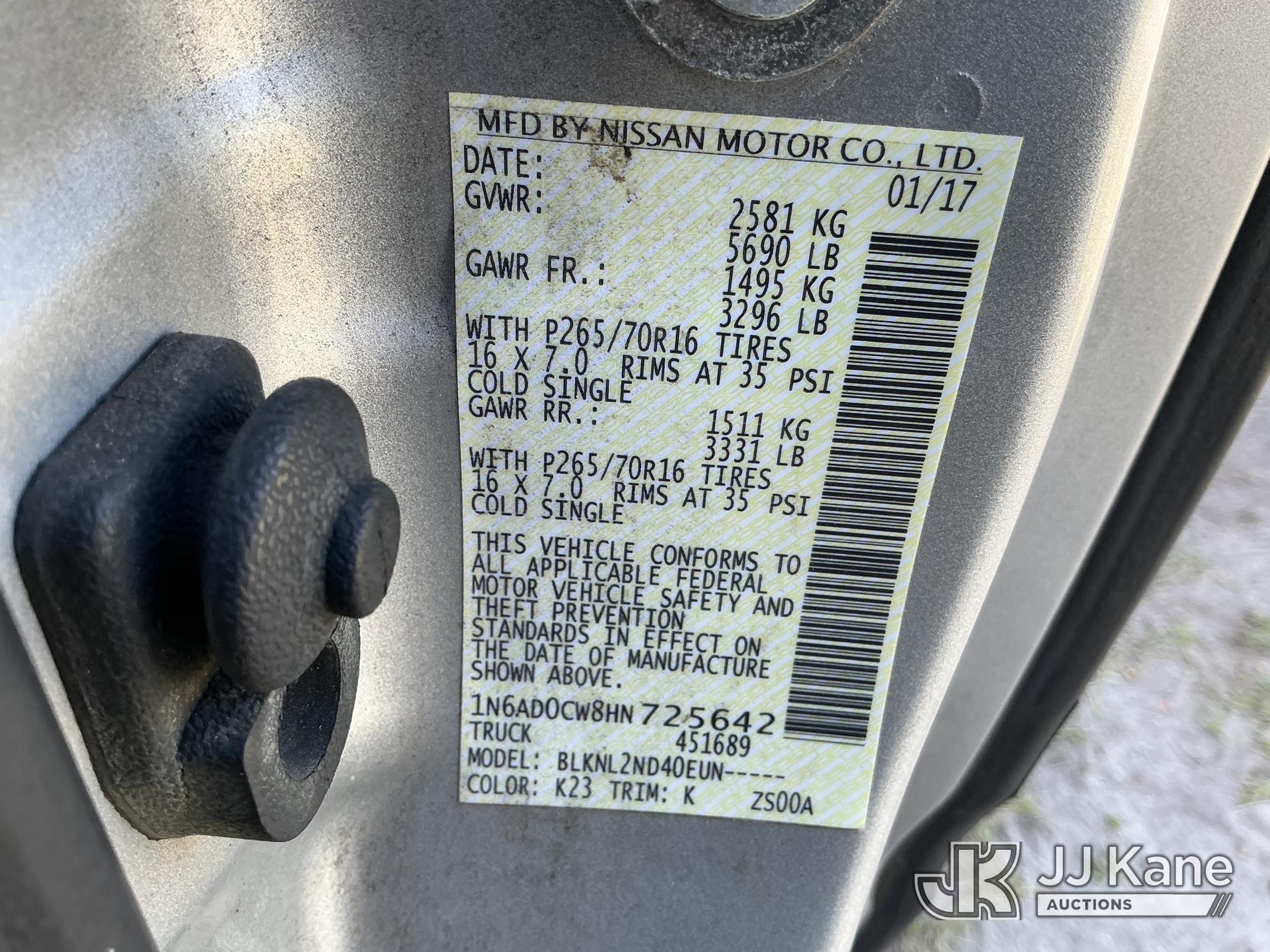 2017 Nissan Frontier 4x4 Extended-Cab Pickup Truck, 4.0L V6 DOHC 24V gas, 5-Speed Automatic, A/C, with bed cover, (194,676 miles) (Runs & Moves) (Idles Rough)(FL Residents Purchasing Titled Items – tax, title & registration fees will be collected at the maximum rate of $400.00 under 25,999 and $800.00 for Over 26,000 and $250.00 trailers – Proof of insurance is mandatory; Out of State Residents Purchasing Title Items – tax will be collected based upon your state rate.) This is a Titled Item*