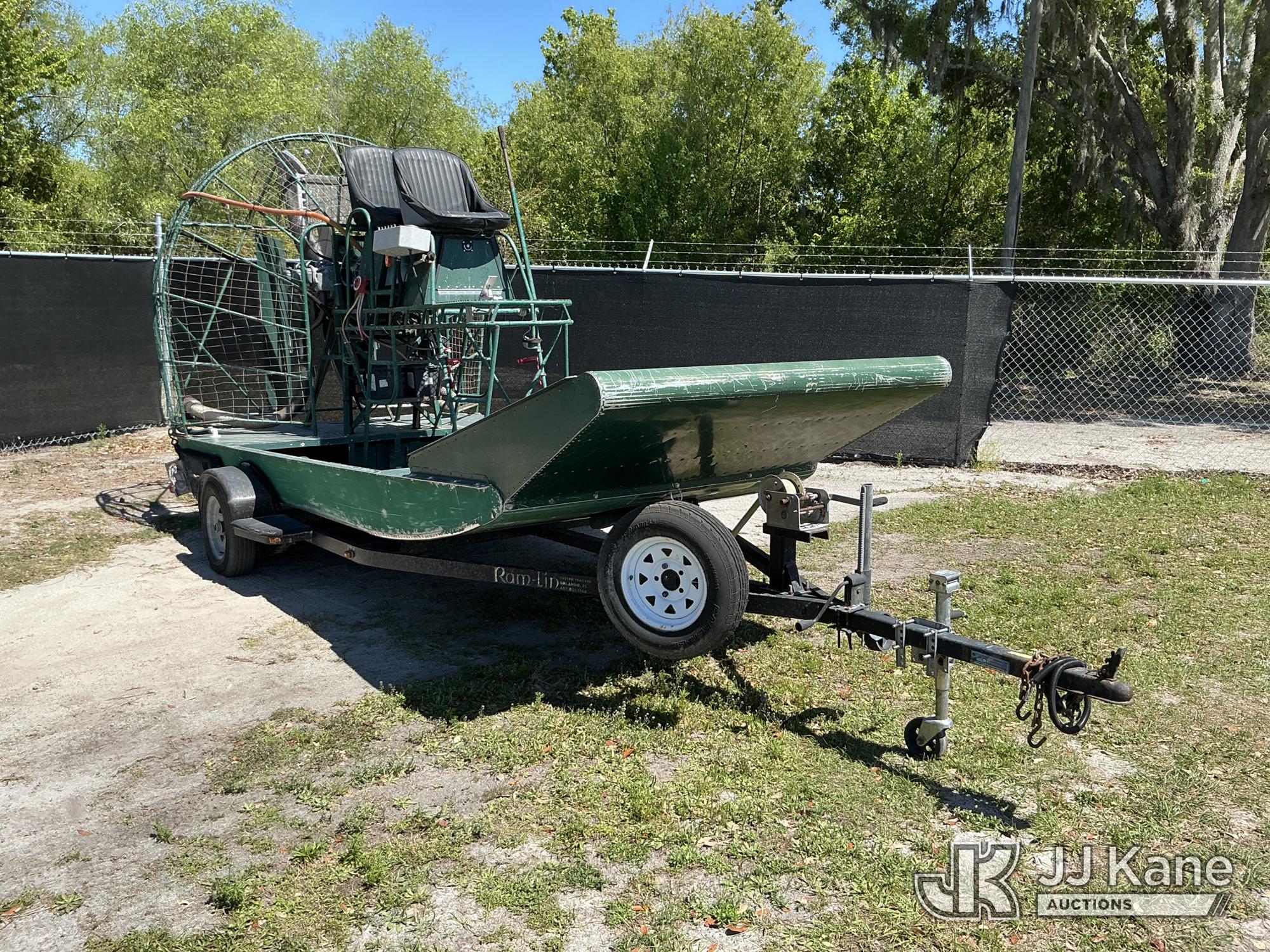 1999 Diamond 13 Foot Aluminum Airboat, 6-cyl, gas, with Sold with 2000 Ramlin Airboat Trailer, VIN: 4WAACBN10Y1000003, State of FL Unit (Not Running, Condition Unknown ) (Reads 86 hours) This is a Titled Item*