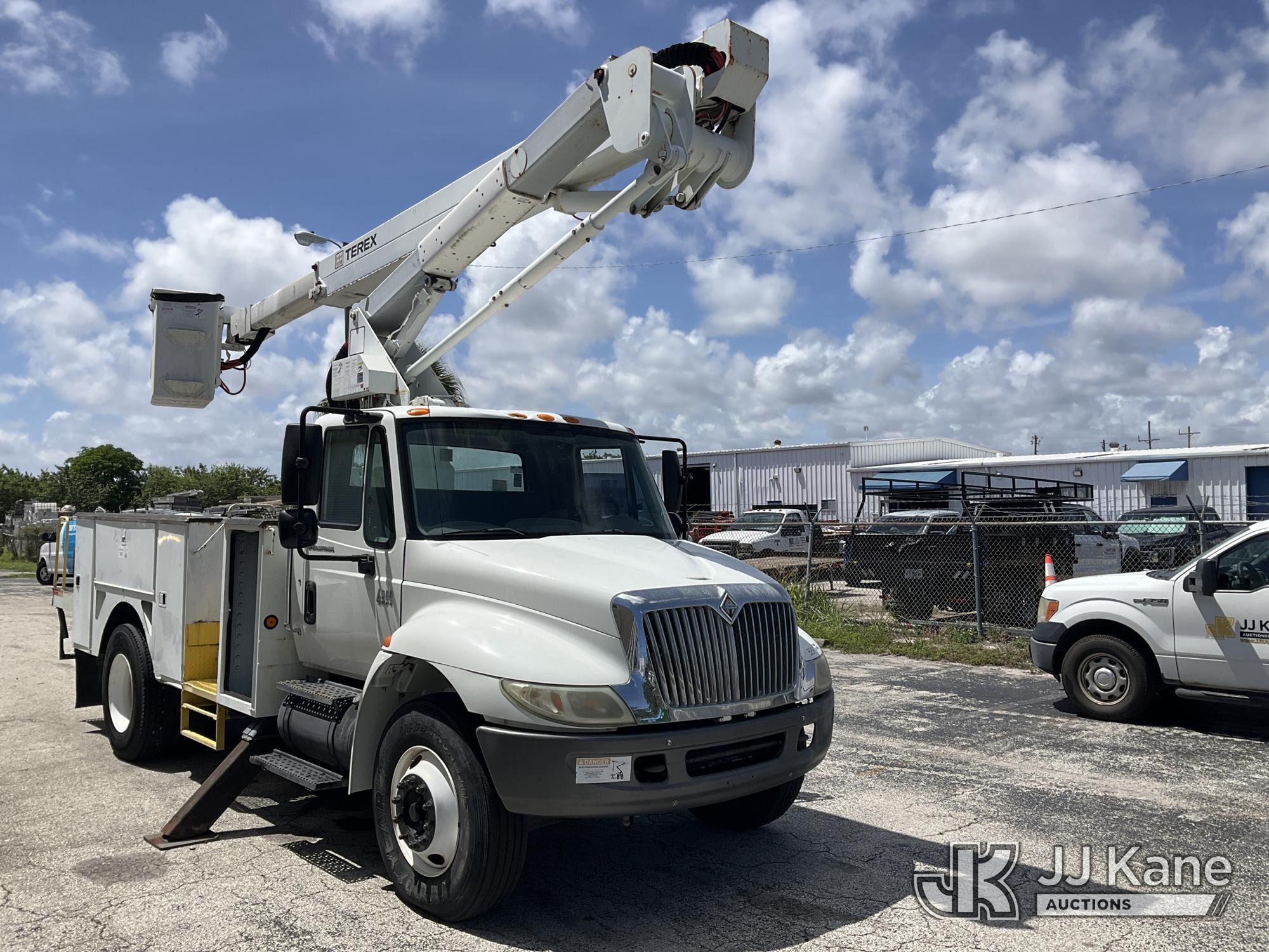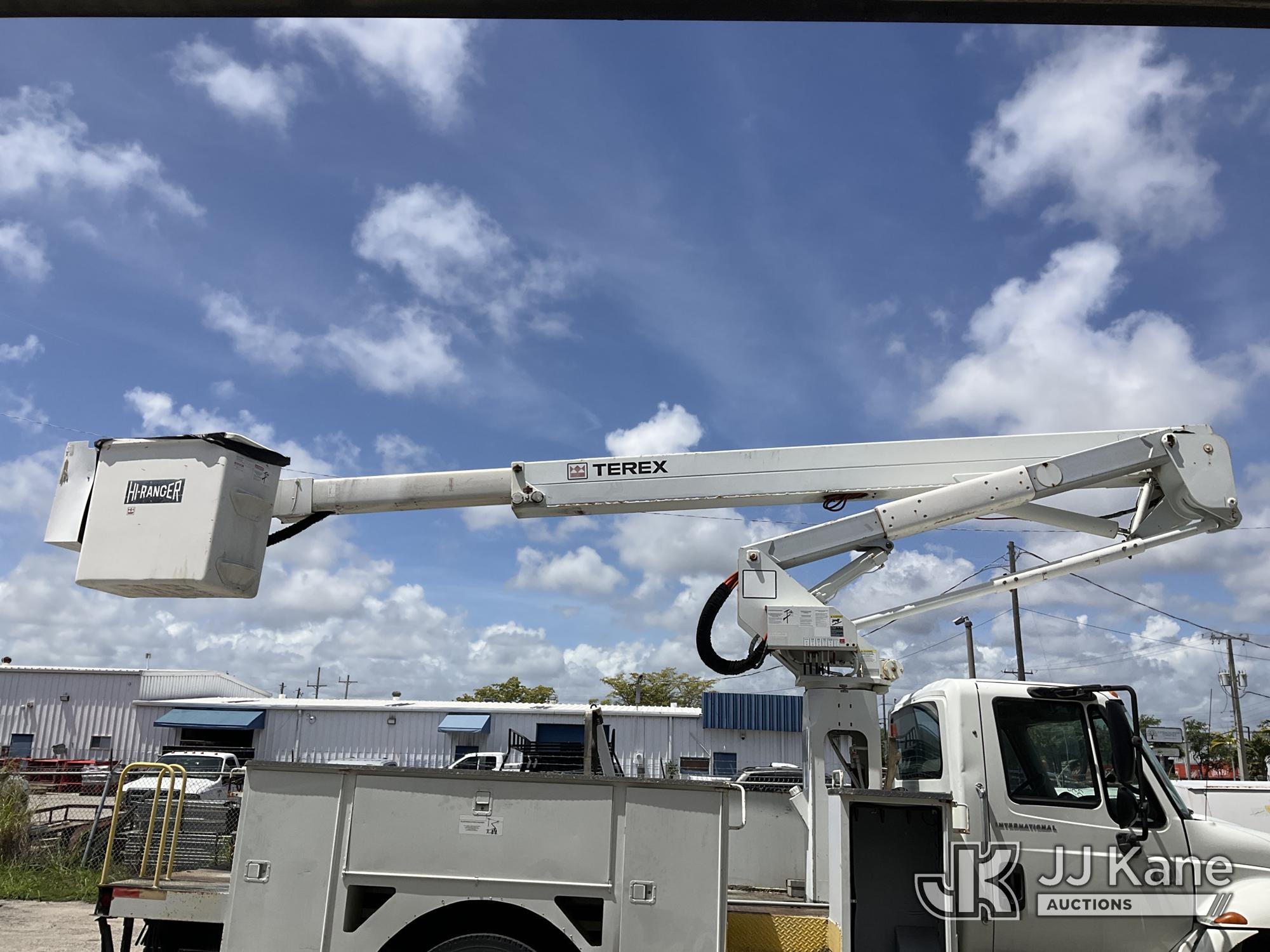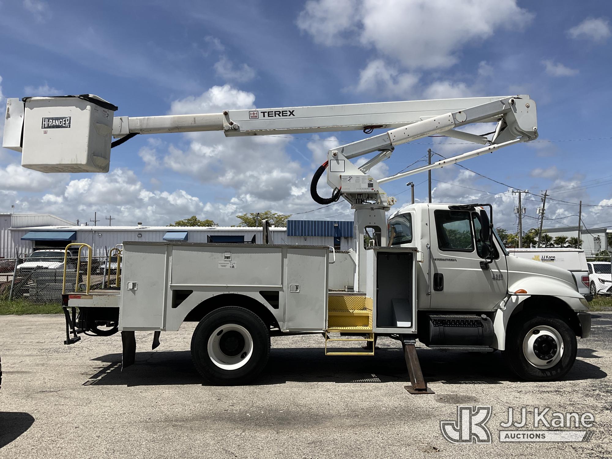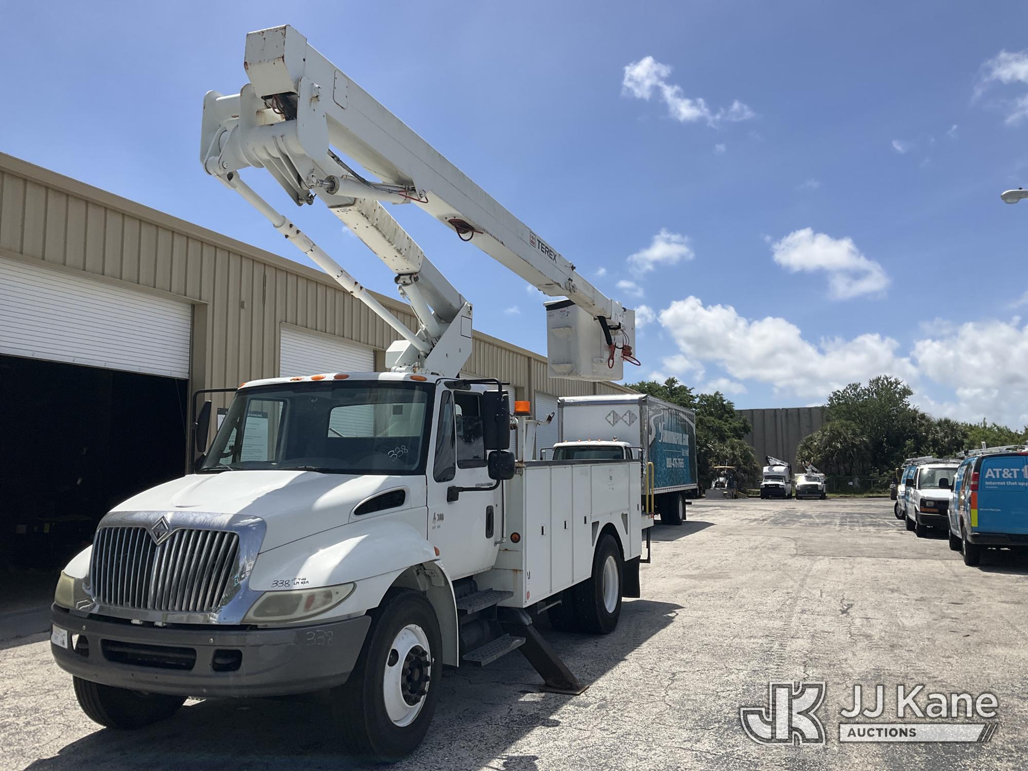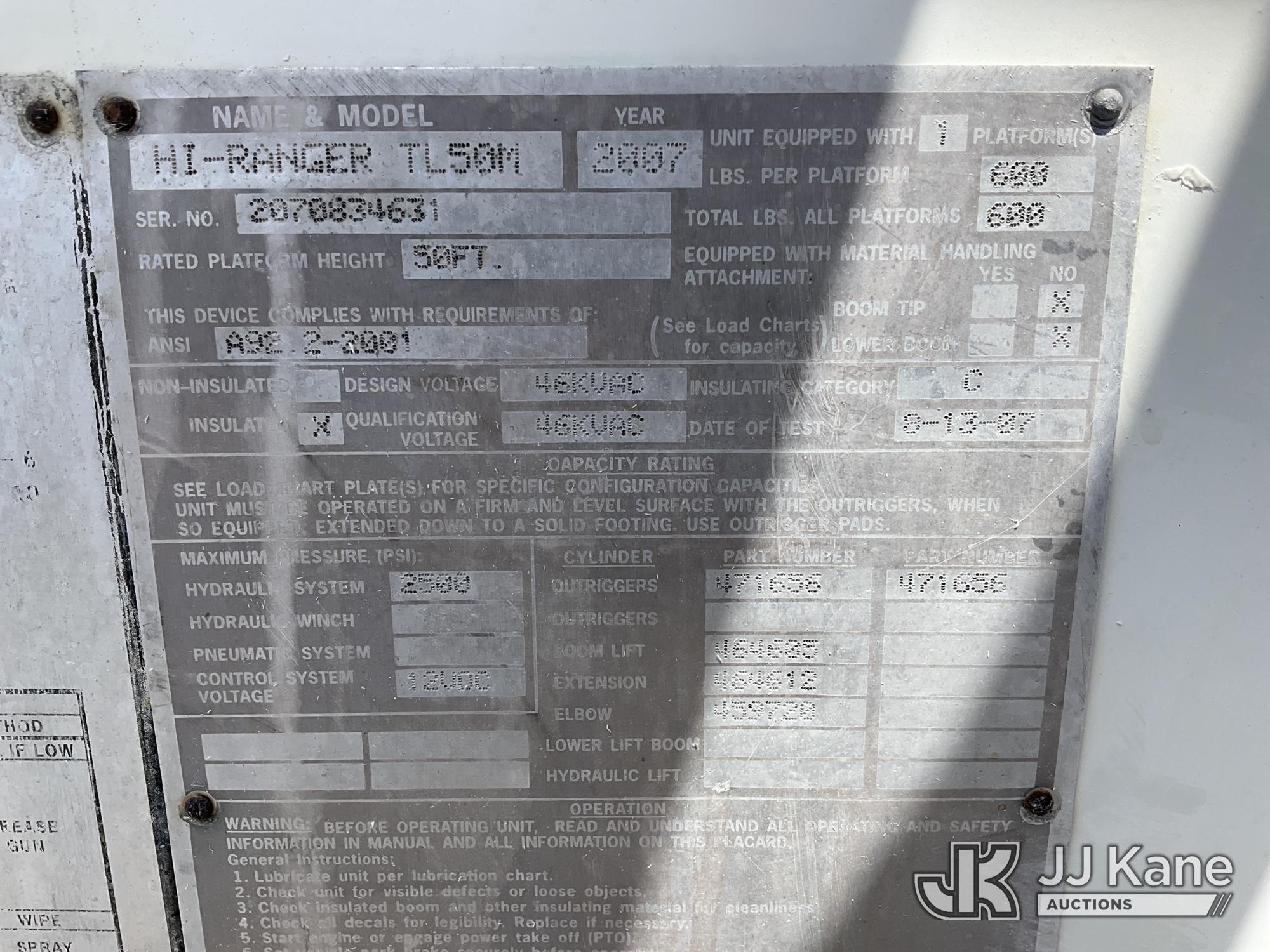 HiRanger TL50M, 55 ft, Bucket Truck s/n 2070834631, with Two-Man Bucket, mounted behind cab on 2007 International 4300 Utility Truck, 7.6L L6 DIESEL 4X2, Auto, A/C, (12,983 miles) (Runs & Moves, Upper Unit Operates) (Body Damage & Rust, Passenger Side Rear Tool Box Door Missing) (FL Residents Purchasing Titled Items – tax, title & registration fees will be collected at the maximum rate of $400.00 under 25,999 and $800.00 for Over 26,000 and $250.00 for Trailers – Proof of insurance is mandatory; Out of State Residents Purchasing Title Items – tax will be collected based upon your state rate) (Reads 4,226 hours) This is a Titled Item*