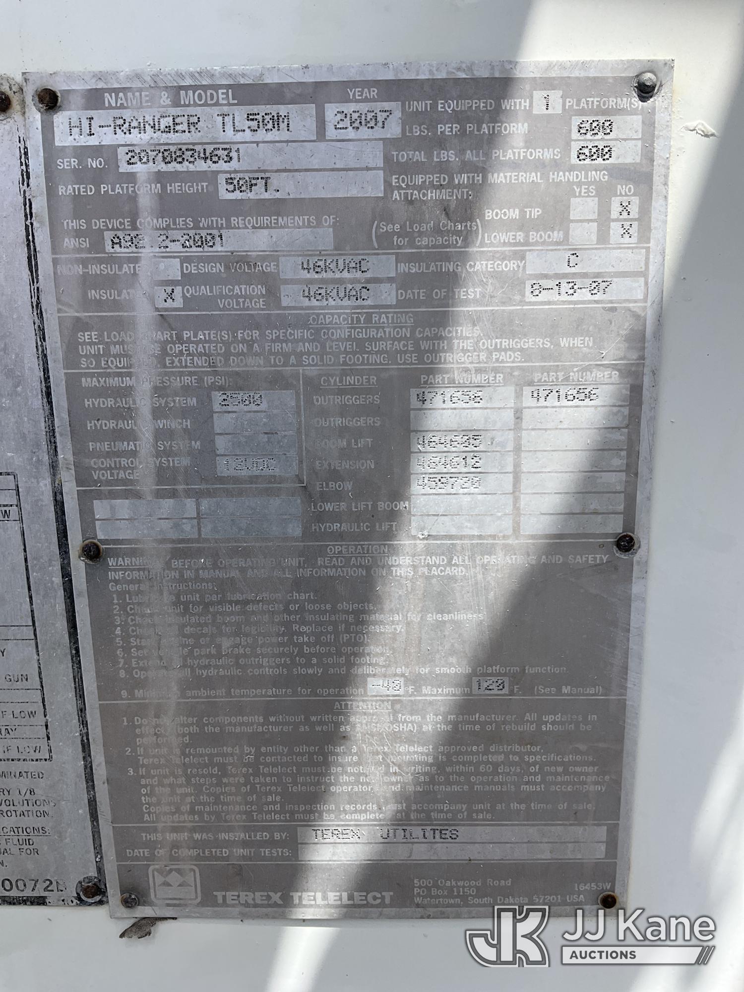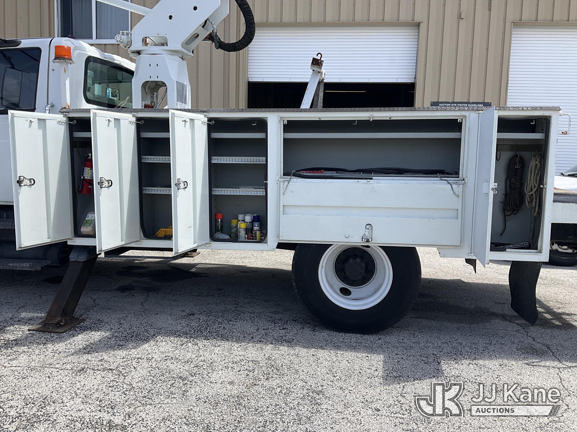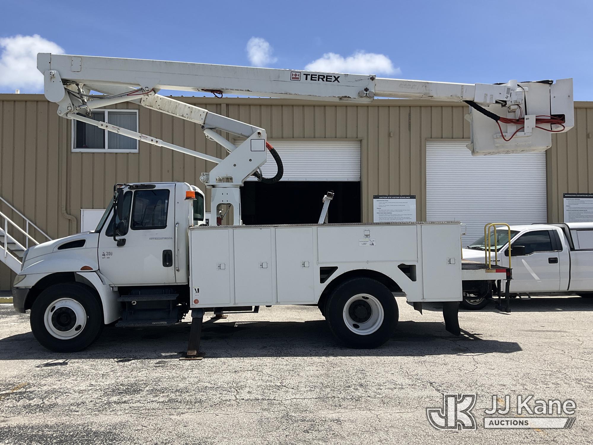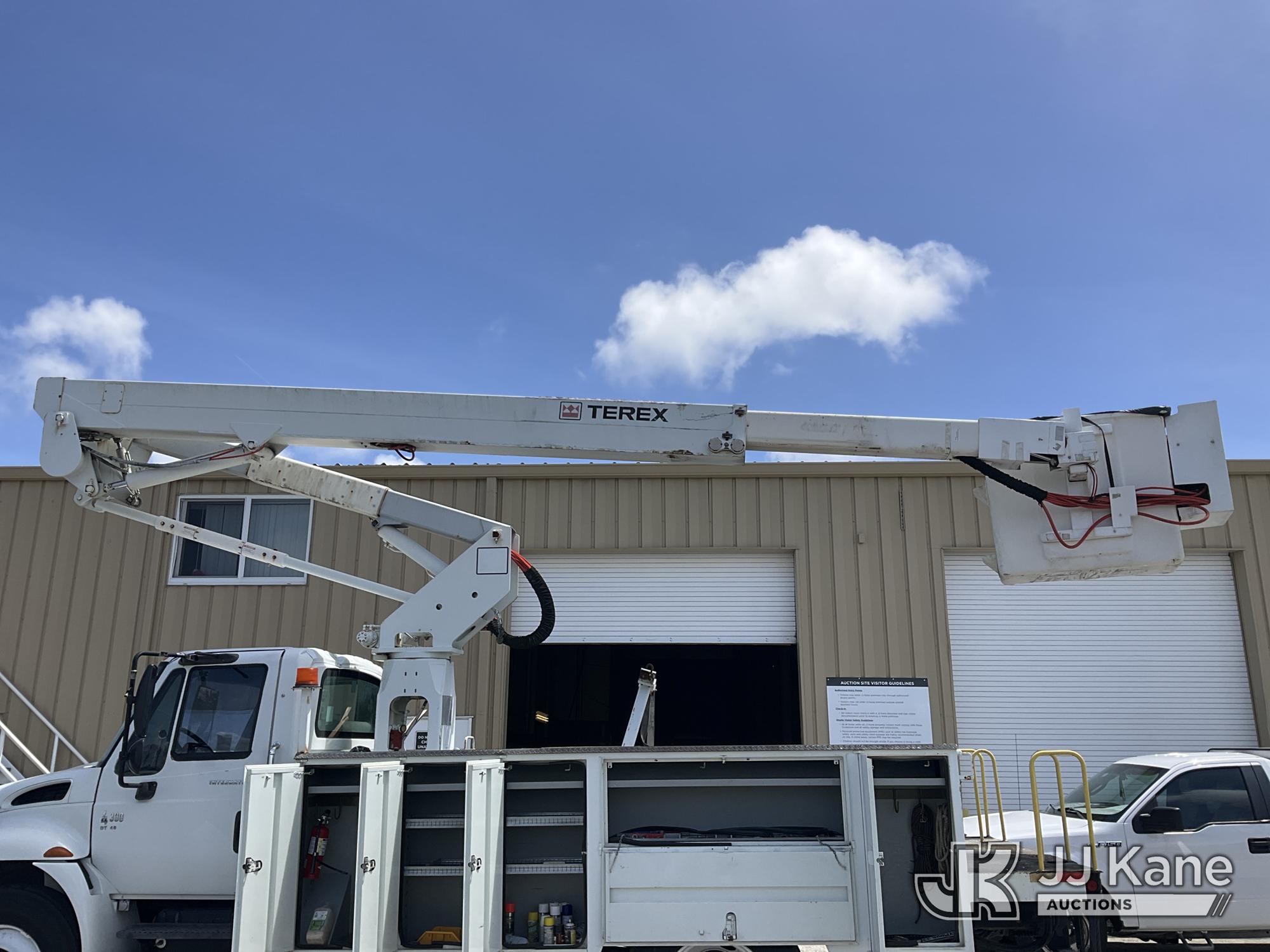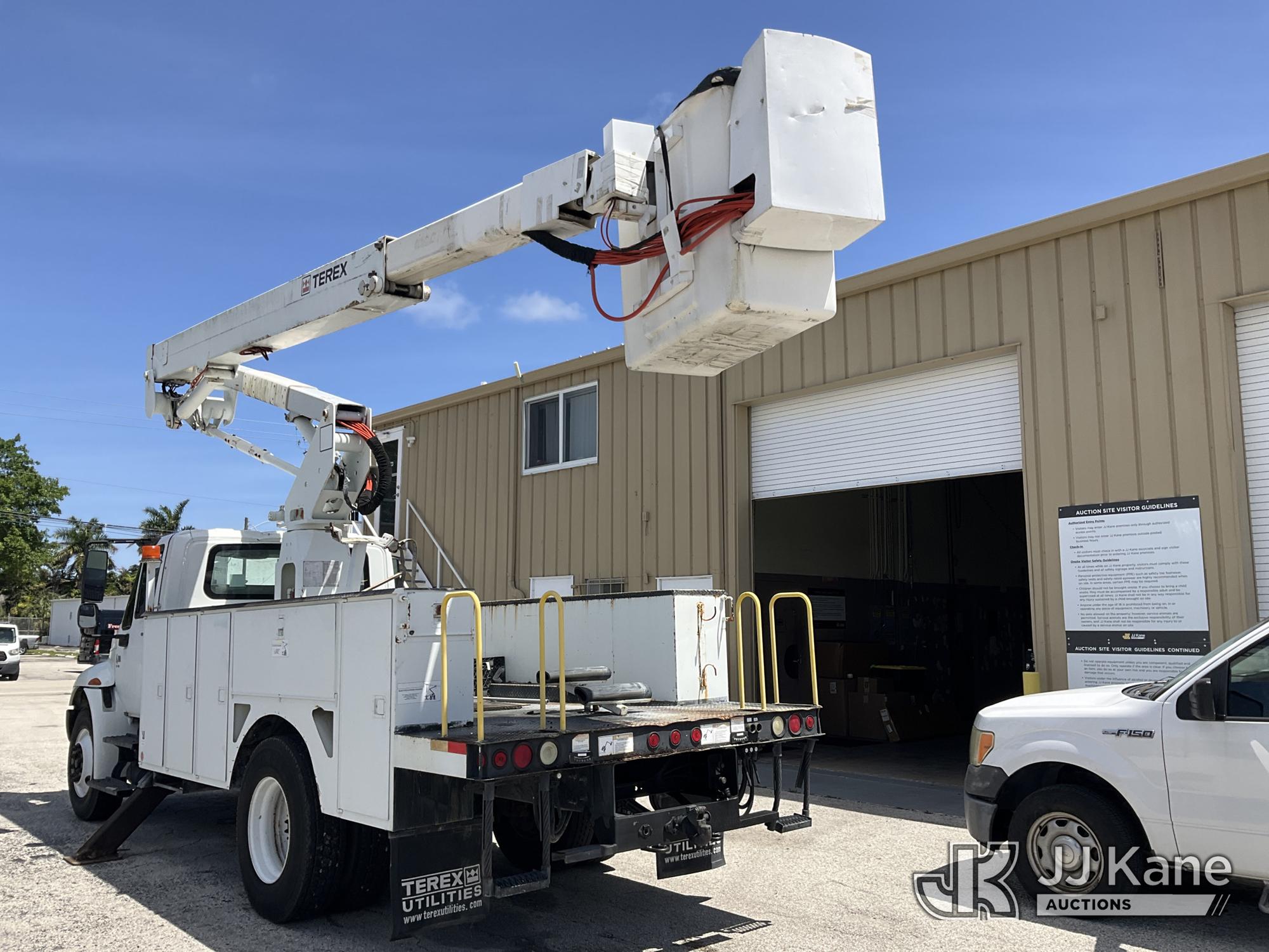 HiRanger TL50M, 55 ft, Bucket Truck s/n 2070834631, with Two-Man Bucket, mounted behind cab on 2007 International 4300 Utility Truck, 7.6L L6 DIESEL 4X2, Auto, A/C, (12,983 miles) (Runs & Moves, Upper Unit Operates) (Body Damage & Rust, Passenger Side Rear Tool Box Door Missing) (FL Residents Purchasing Titled Items – tax, title & registration fees will be collected at the maximum rate of $400.00 under 25,999 and $800.00 for Over 26,000 and $250.00 for Trailers – Proof of insurance is mandatory; Out of State Residents Purchasing Title Items – tax will be collected based upon your state rate) (Reads 4,226 hours) This is a Titled Item*