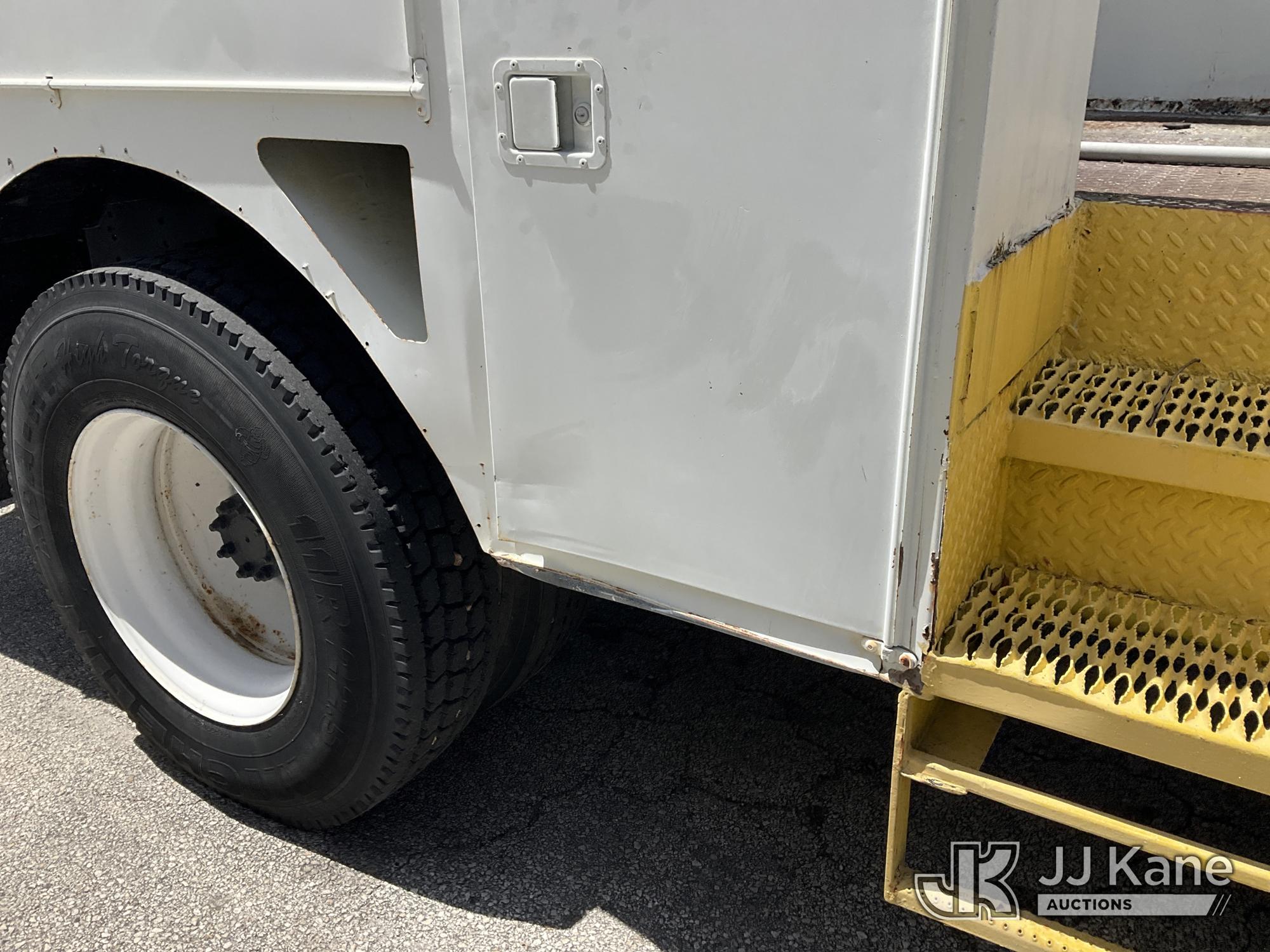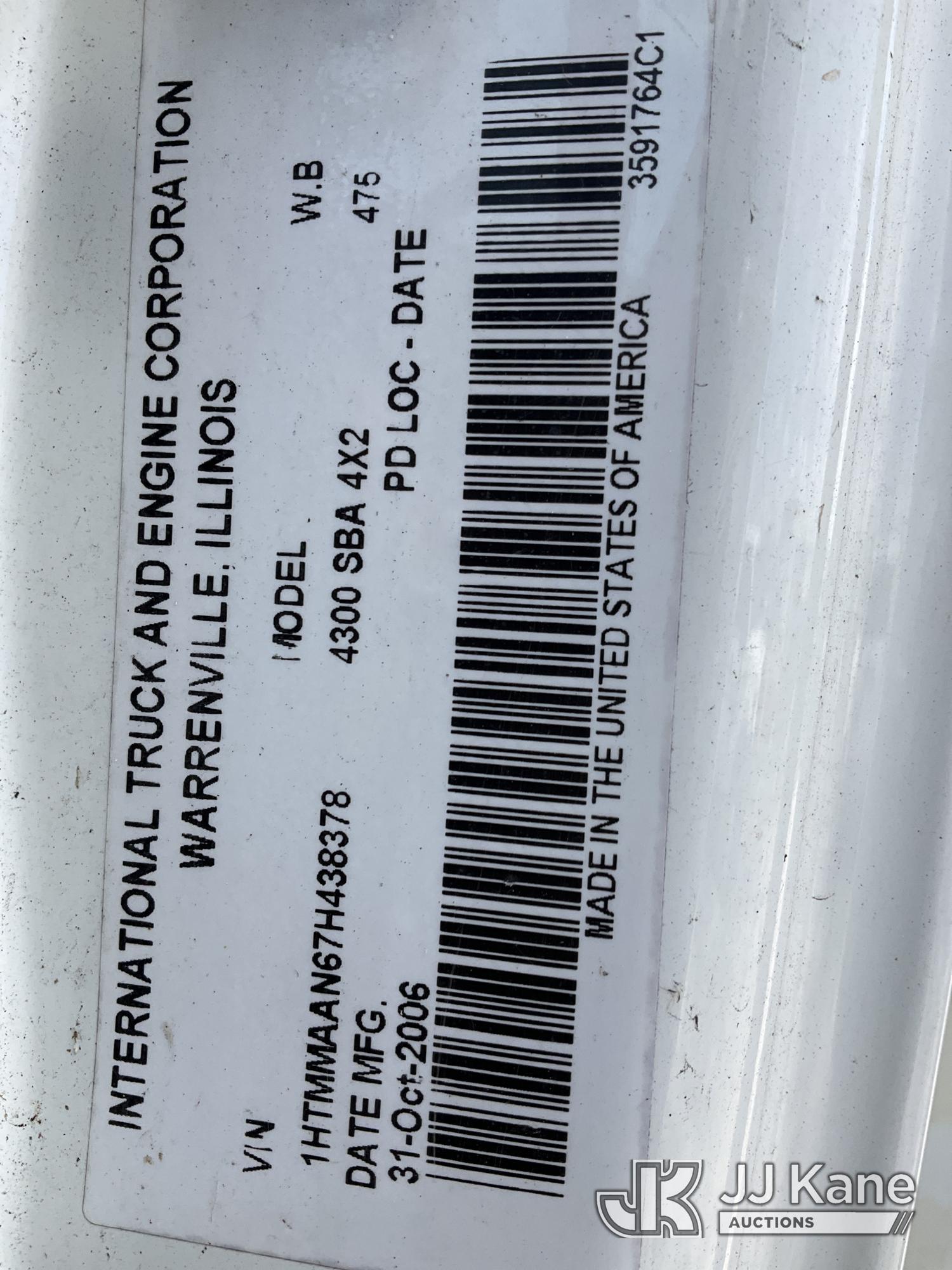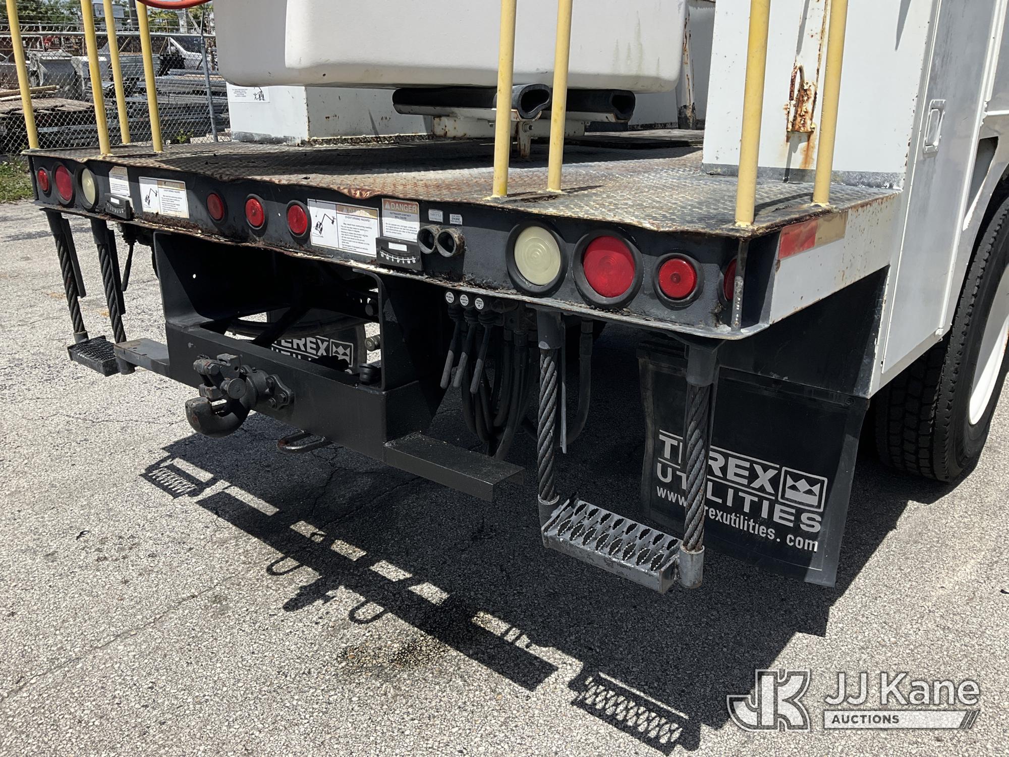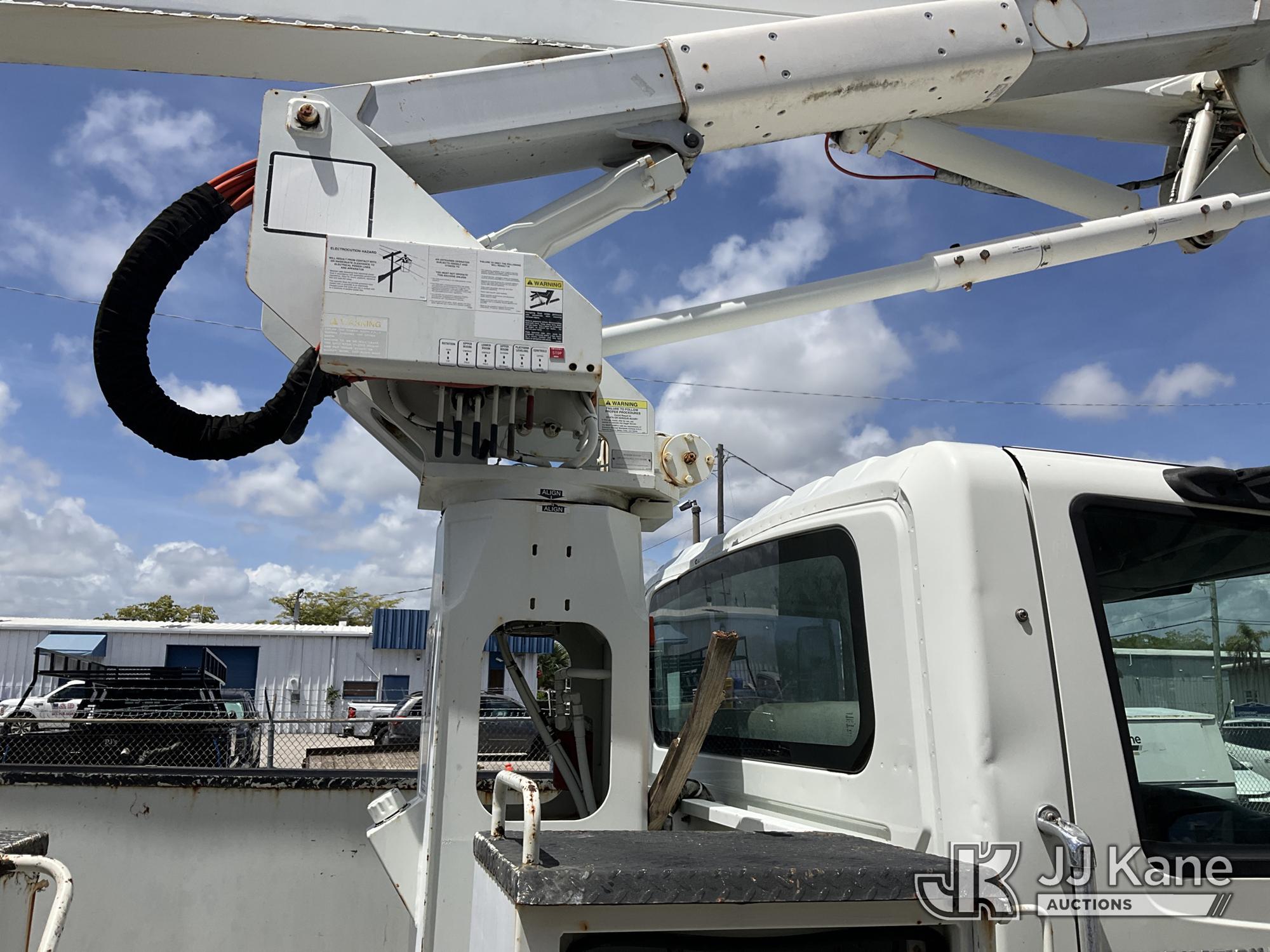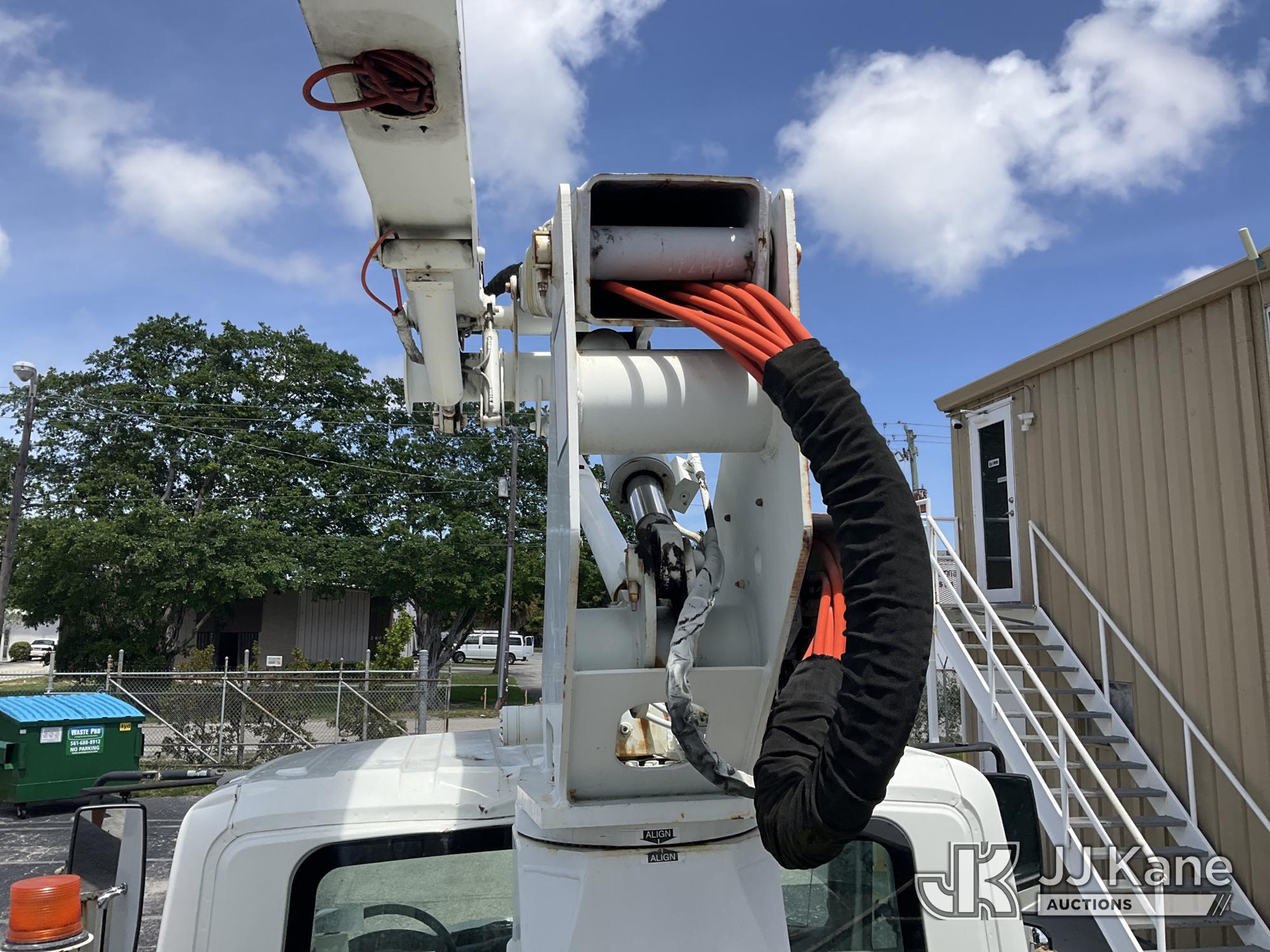HiRanger TL50M, 55 ft, Bucket Truck s/n 2070834631, with Two-Man Bucket, mounted behind cab on 2007 International 4300 Utility Truck, 7.6L L6 DIESEL 4X2, Auto, A/C, (12,983 miles) (Runs & Moves, Upper Unit Operates) (Body Damage & Rust, Passenger Side Rear Tool Box Door Missing) (FL Residents Purchasing Titled Items – tax, title & registration fees will be collected at the maximum rate of $400.00 under 25,999 and $800.00 for Over 26,000 and $250.00 for Trailers – Proof of insurance is mandatory; Out of State Residents Purchasing Title Items – tax will be collected based upon your state rate) (Reads 4,226 hours) This is a Titled Item*