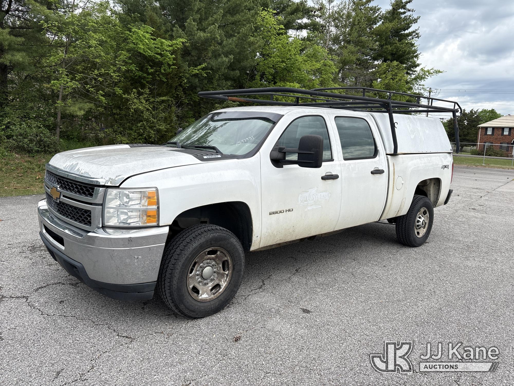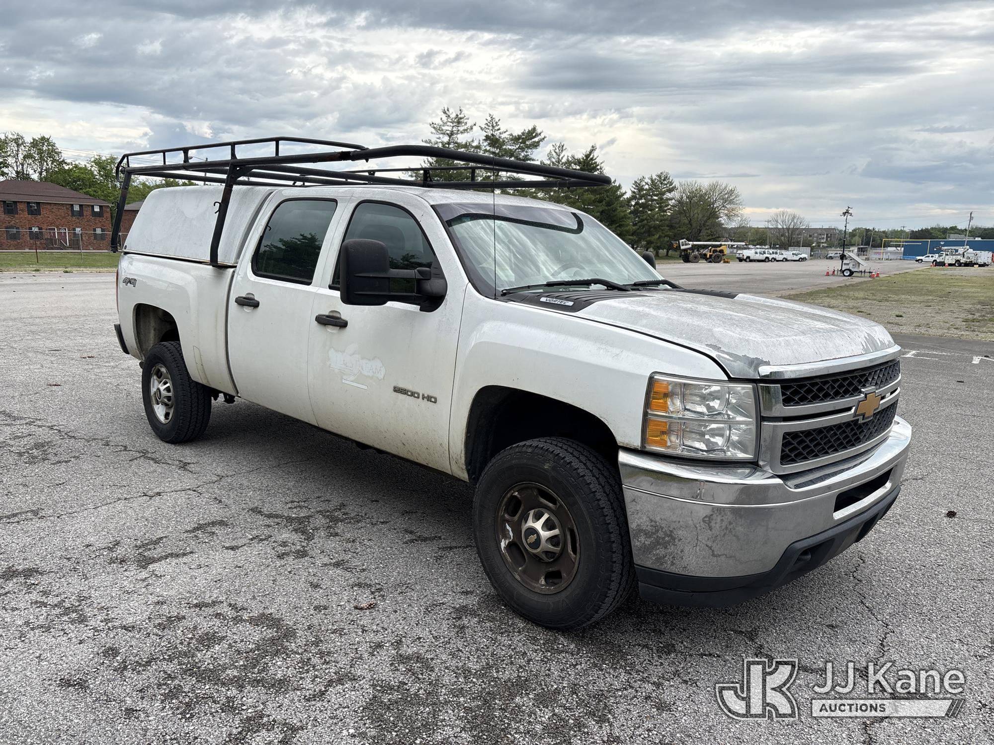 2014 Chevrolet Silverado 2500HD 4x4 Crew-Cab Pickup Truck, 8-cyl gas, Auto, A/C, with cap, (320,145 miles) (Runs & Moves) (Jump To Start, Roof Rack Has Rust Damage) This is a Titled Item*