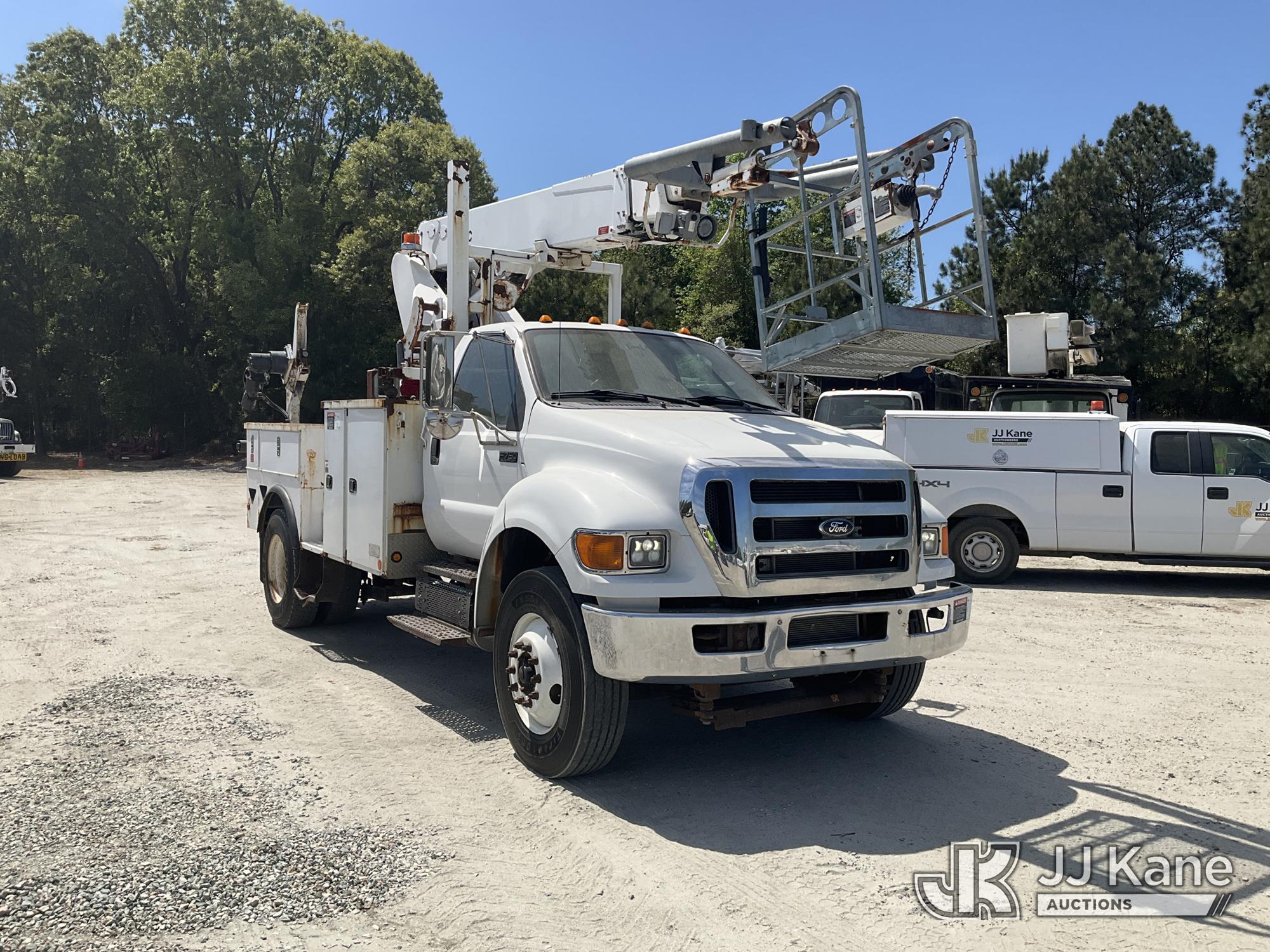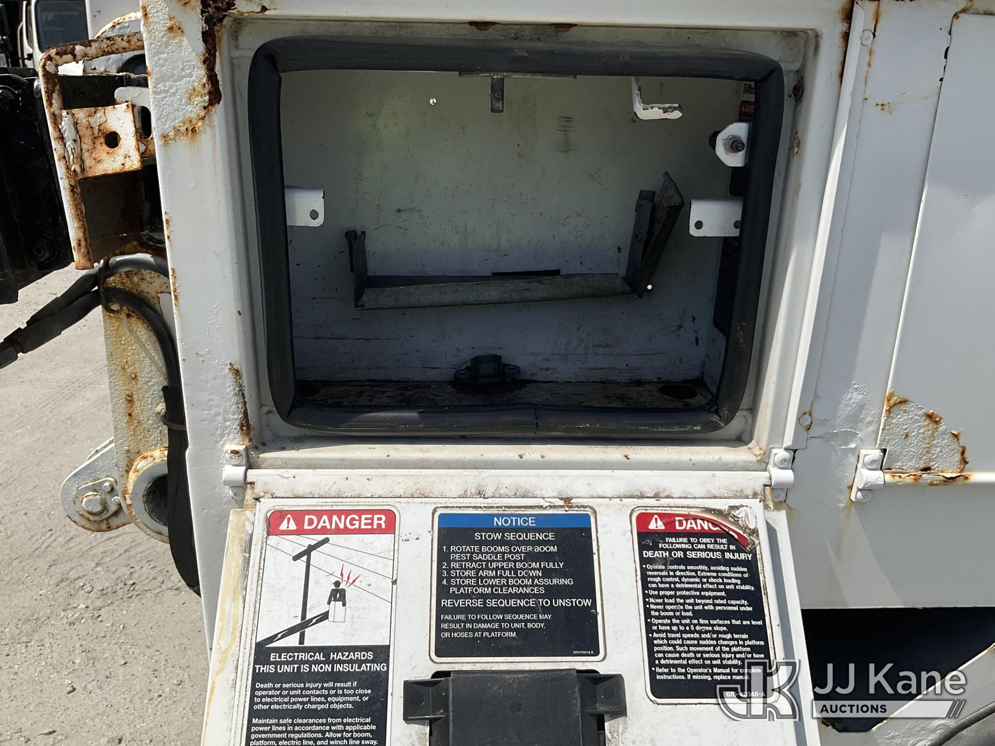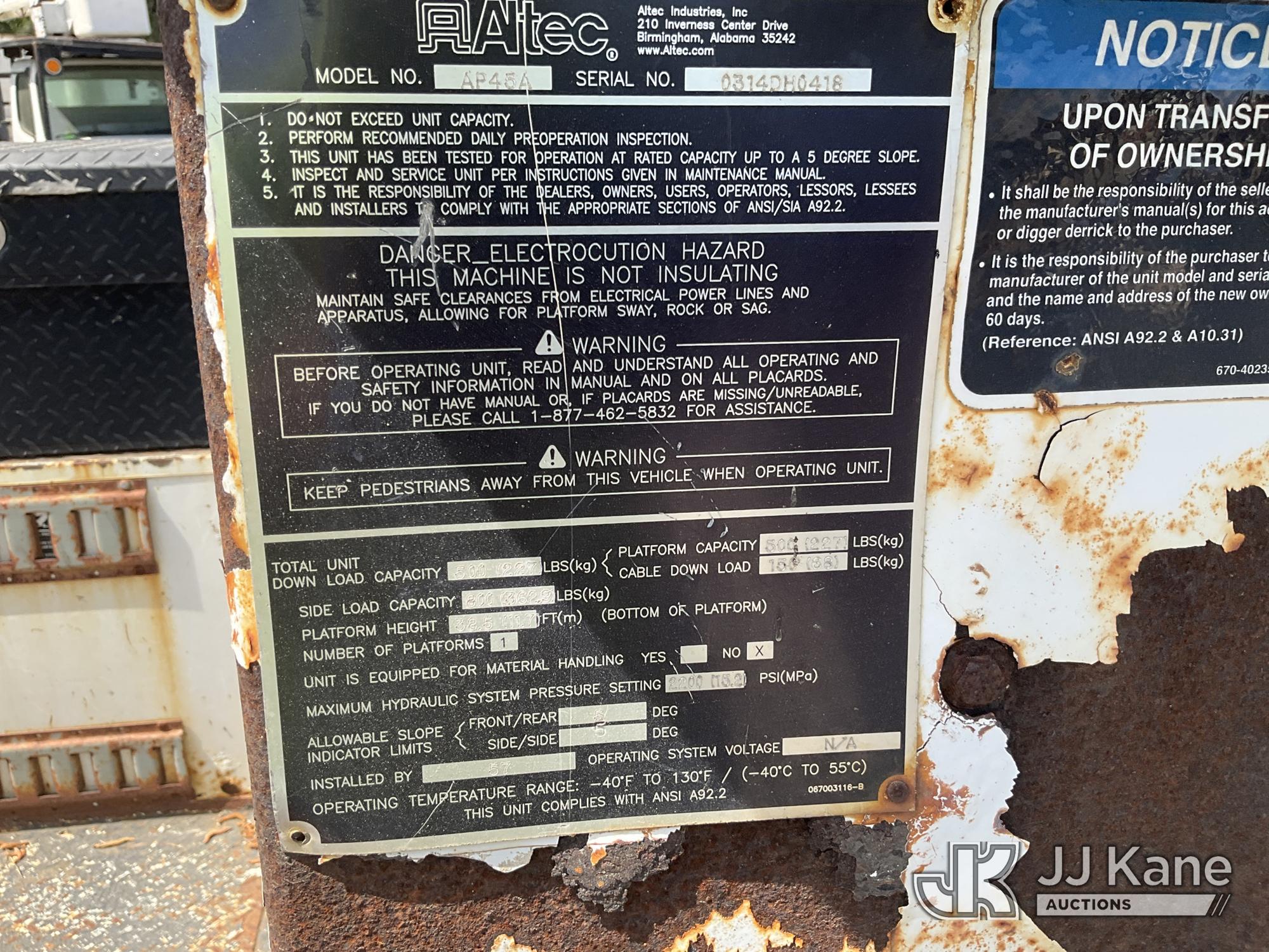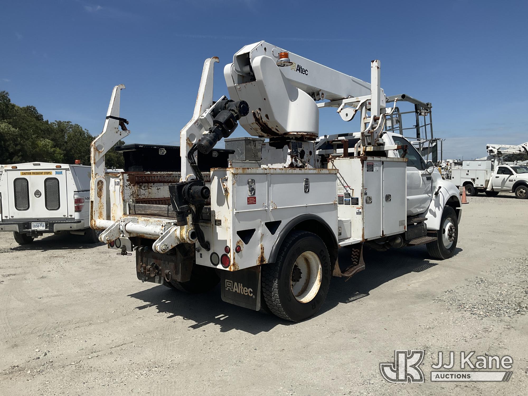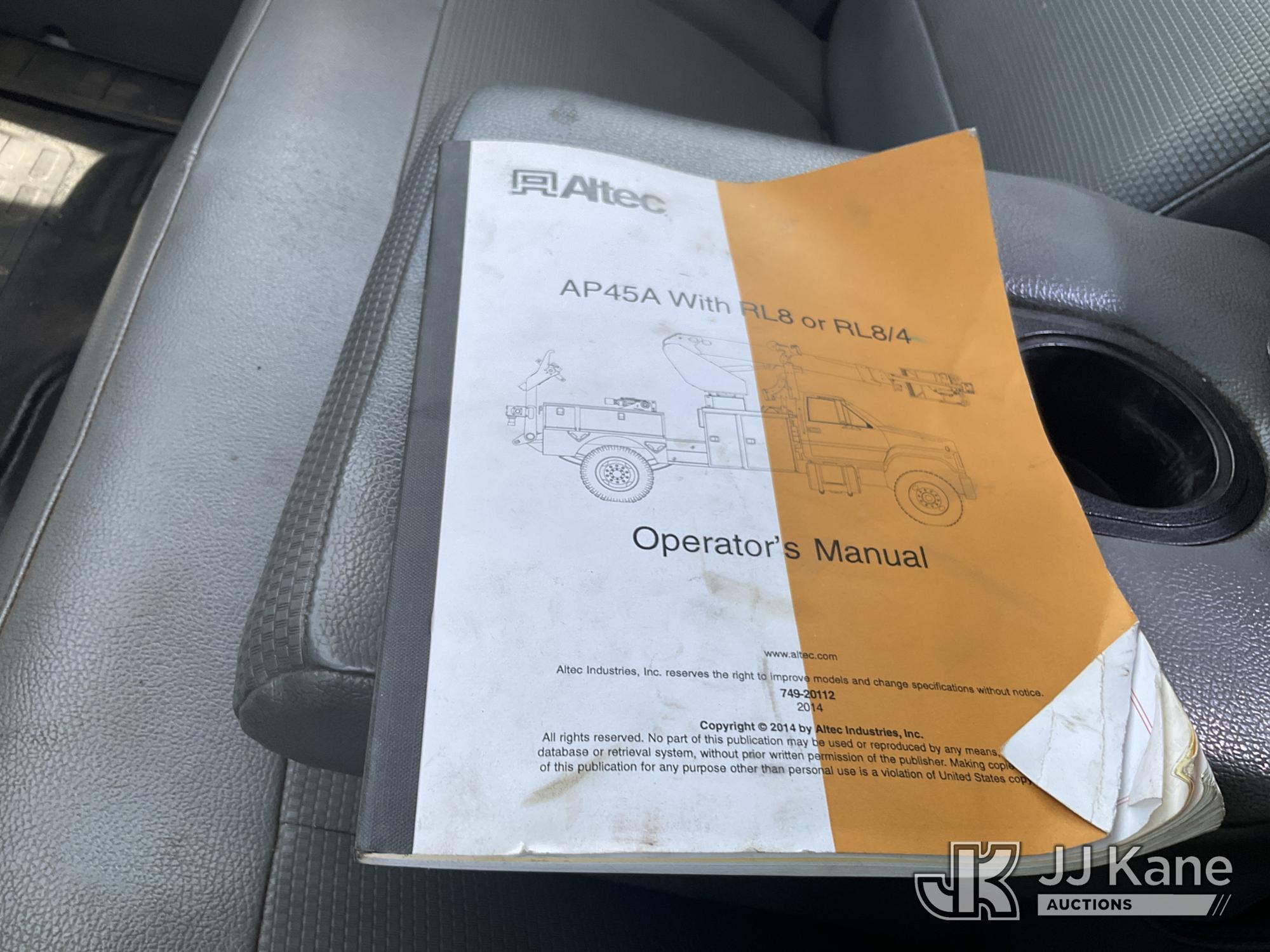 Altec AP45A, 43 ft, Non-Insulated Cable Placing Bucket Truck s/n 0314DH0418, with single-man basket, center mounted on 2015 Ford F750 Utility Truck, 6.7L diesel, Auto, with reel carrier, (153,403 miles) (Runs & Moves) (Upper Condition Unknown, PTO Does Not Engage, Lower Controls Box Missing, DEF Warning Light On The manufacturer has notified JJ Kane that this equipment is subject to an open recall. CSN 724 Air Line Plumbing Inspection for Pintle Hitch and Air Accessories The equipment should not be operated until this is addressed. Buyer is responsible for reviewing the recall notice and contacting the manufacturer to schedule the recommended corrective actions. Associated costs may be covered by the manufacturer in some cases.) This is a Titled Item*