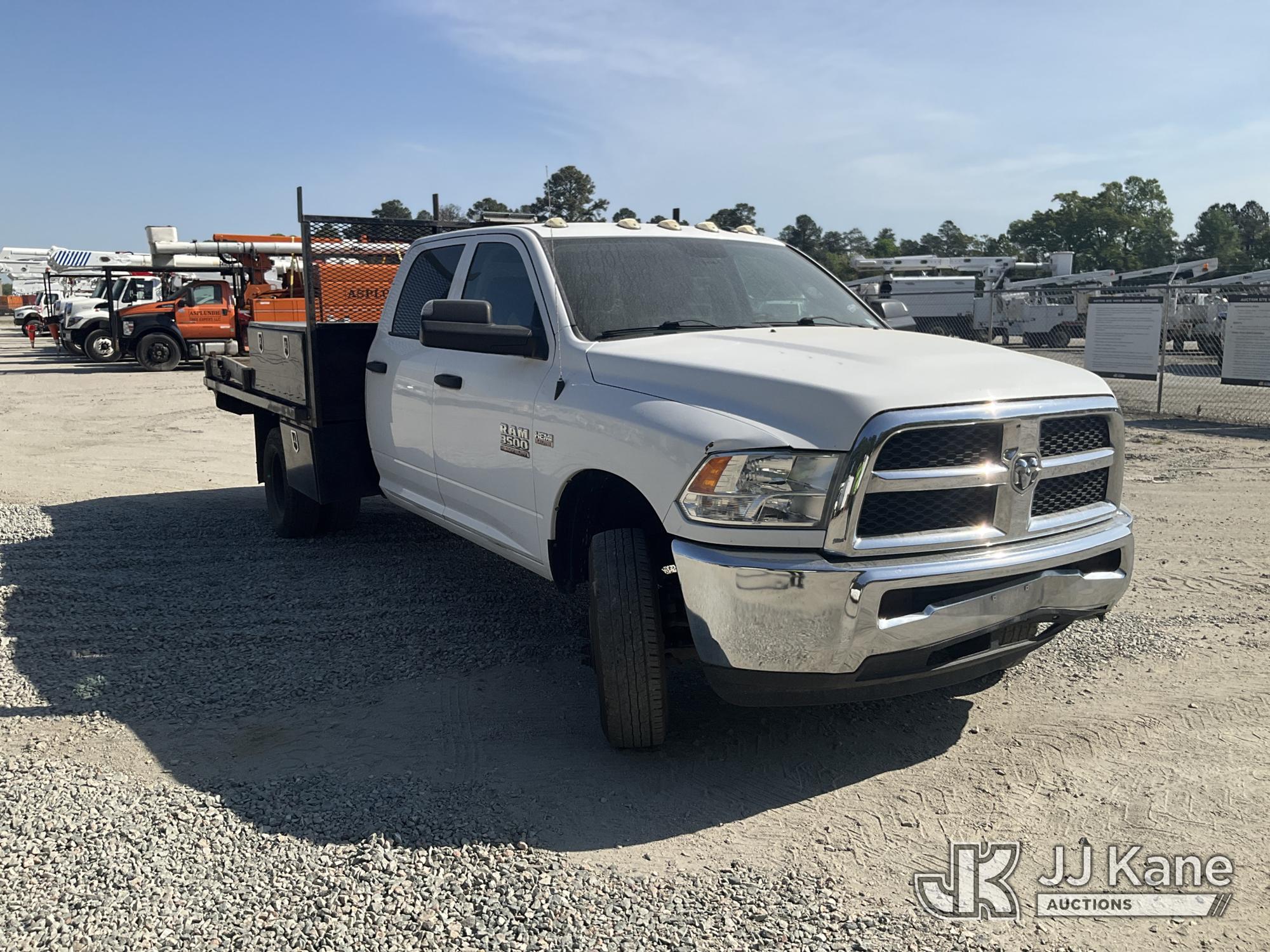 2015 RAM 3500 4x4 Crew-Cab Flatbed/Service Truck, 8-cyl gas, Auto, A/C, (180,544 miles) (Runs & Moves) (Barely Moves, Check Engine Light On) (Seller States: Transmission Is Going Out) This is a Titled Item*