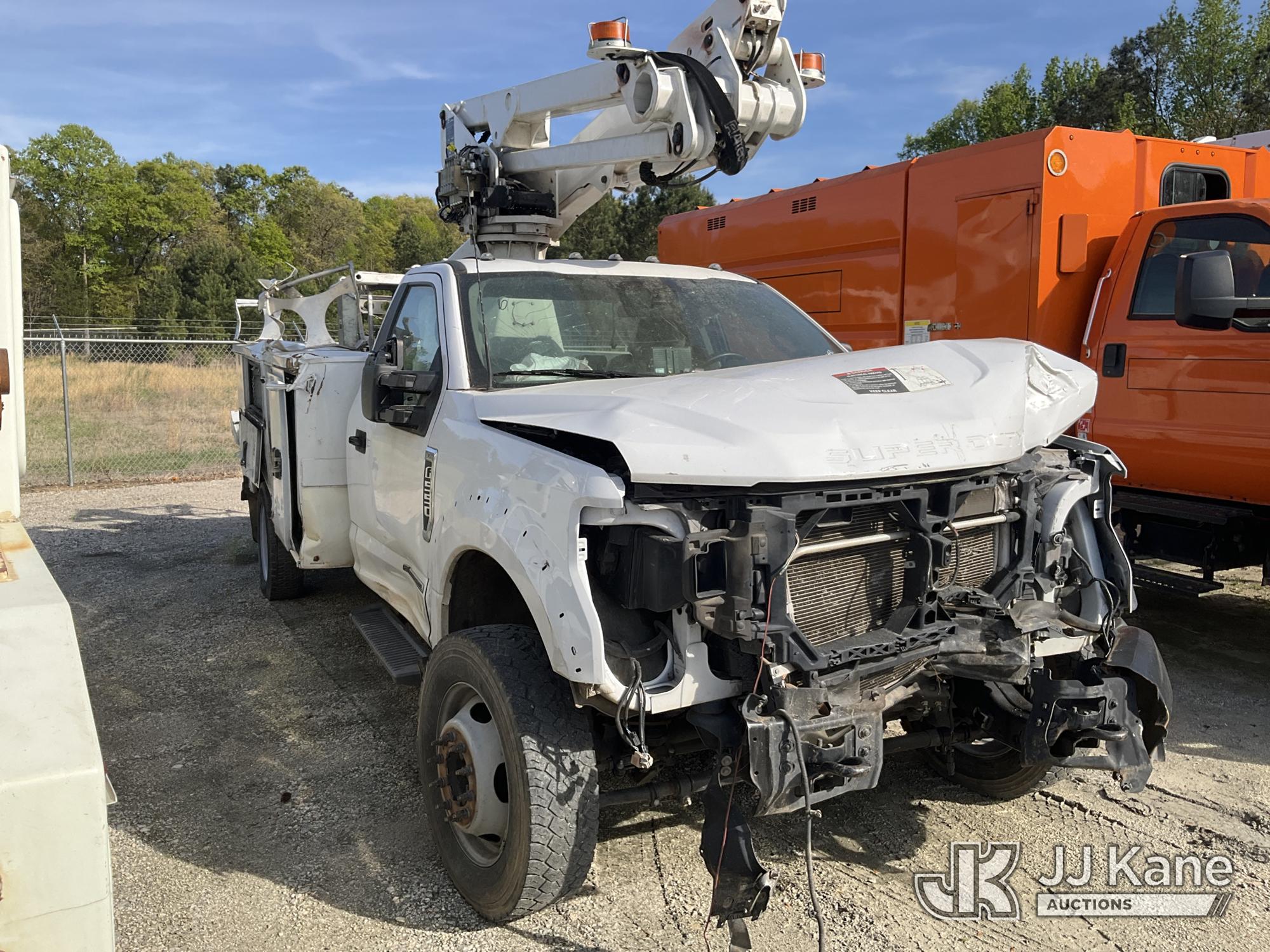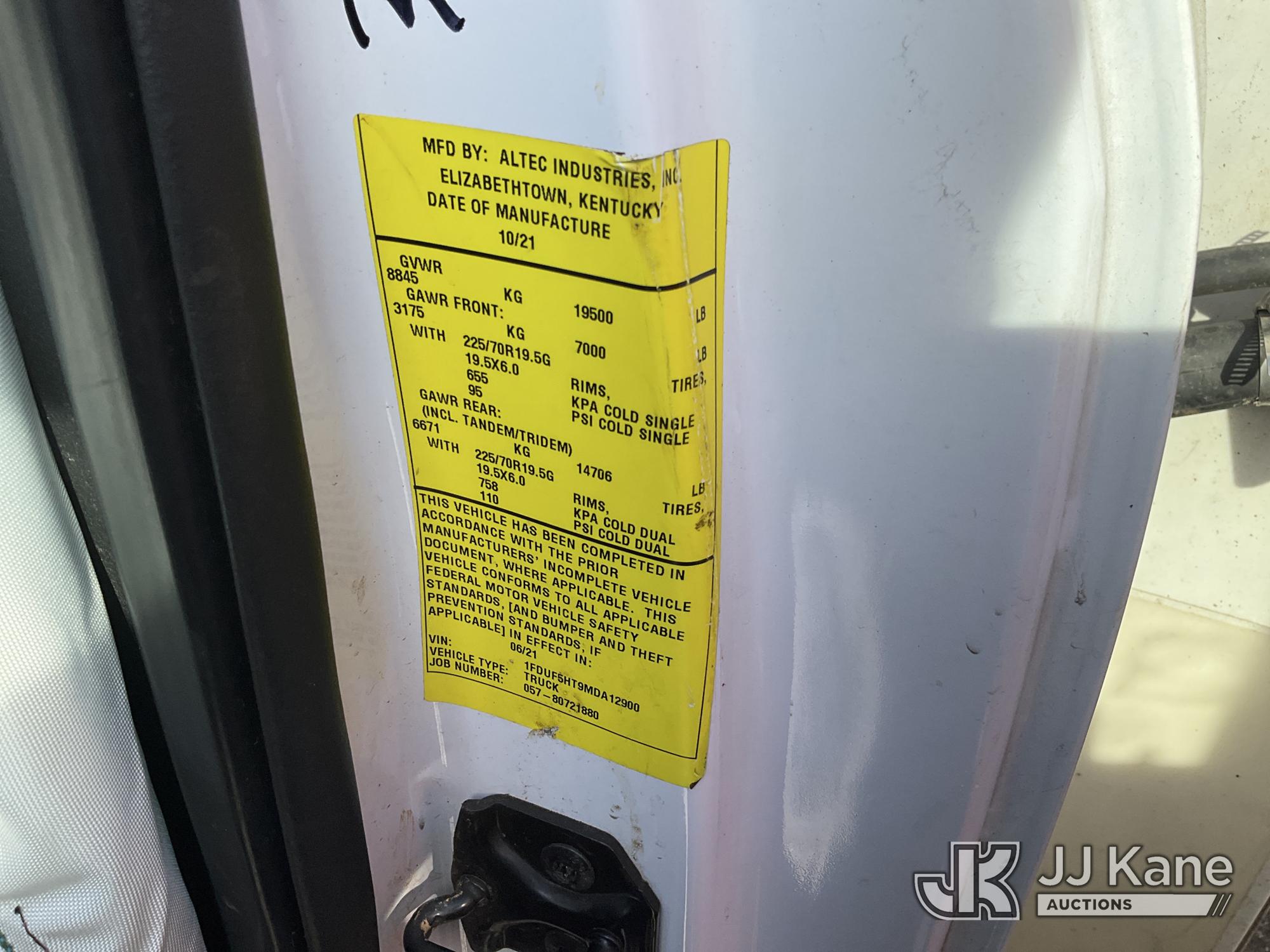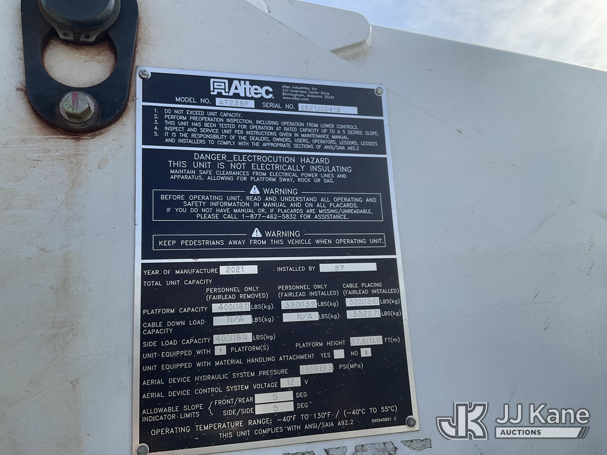 Altec AT238-P, 42 ft, Telescopic Cable Placing Bucket Truck s/n 0821JC0418, with single-man basket, mounted behind cab on 2021 Ford F550 4x4 Service Truck, 6.7L diesel, Auto, A/C, True Mileage Unknown (**Dealer Only** (Not Running, Chassis Condition Unknown, Airbags Deployed, Windshield Cracked, Hood Does Not Open)(Upper Condition Unknown, **Note** This item has been removed from service due to the listed safety repairs that were not completed. The safety items below must be completed by an approved upper OEM facility before the unit can return to service: UNIT WRECKED; REQUIRES MAJOR UNIT DAMAGE INSPECTION; COMPLETE ANY REQUIRED TESTING AND REPAIRS AFTER INSPECTIONS ARE COMPLETED.) (Bidding Restricted to Licensed Vehicle Dealers Only), This is a Titled Item*