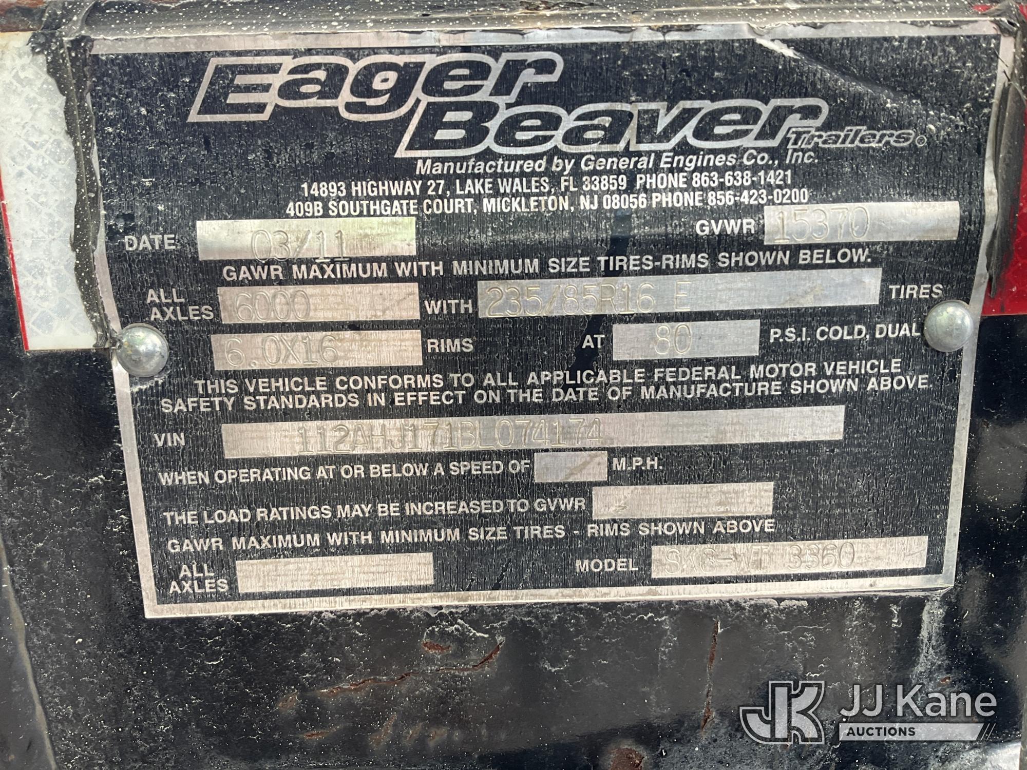 2011 Eager Beaver SK6-WT 3360 T/A Tagalong Equipment Trailer
