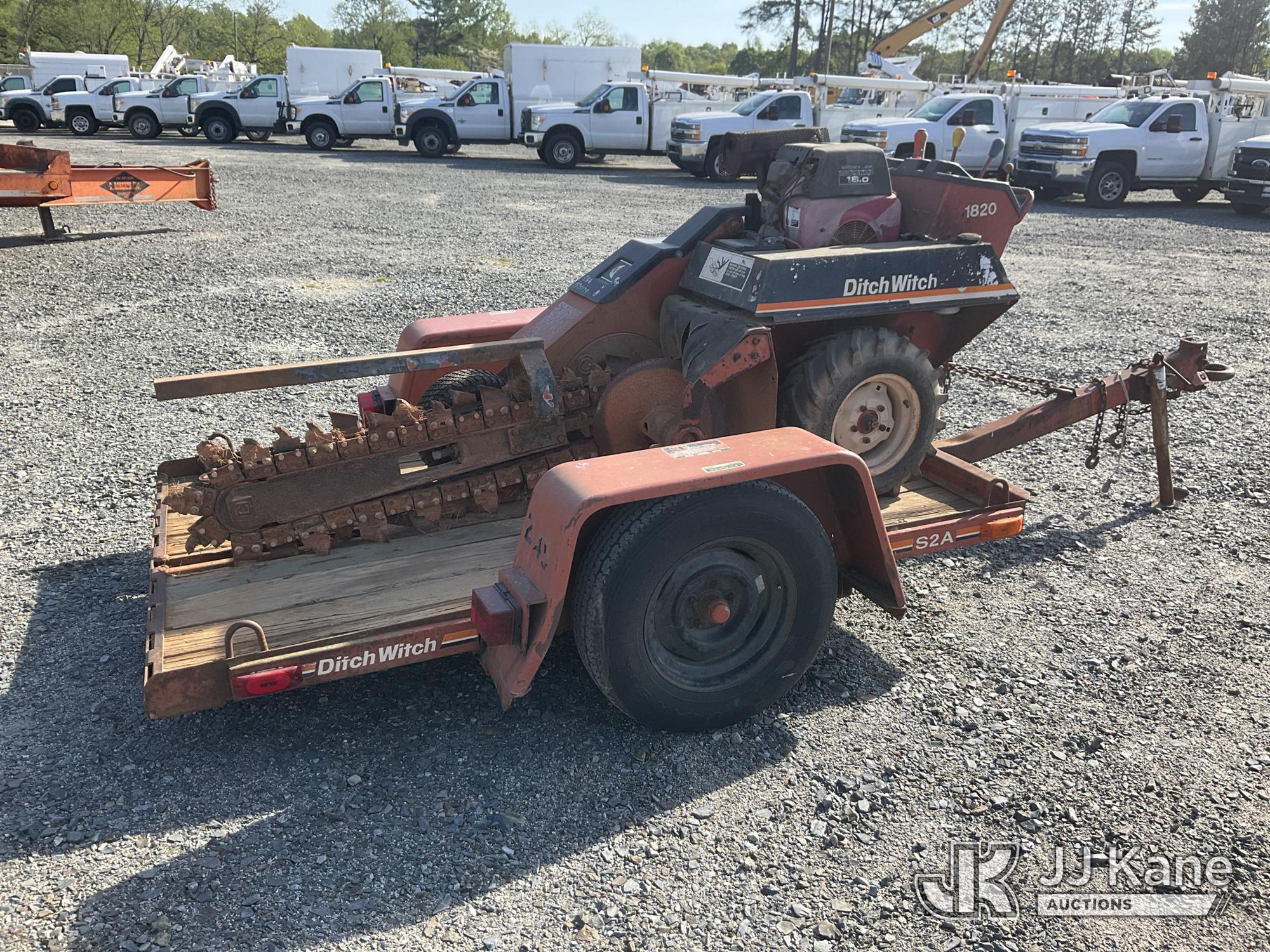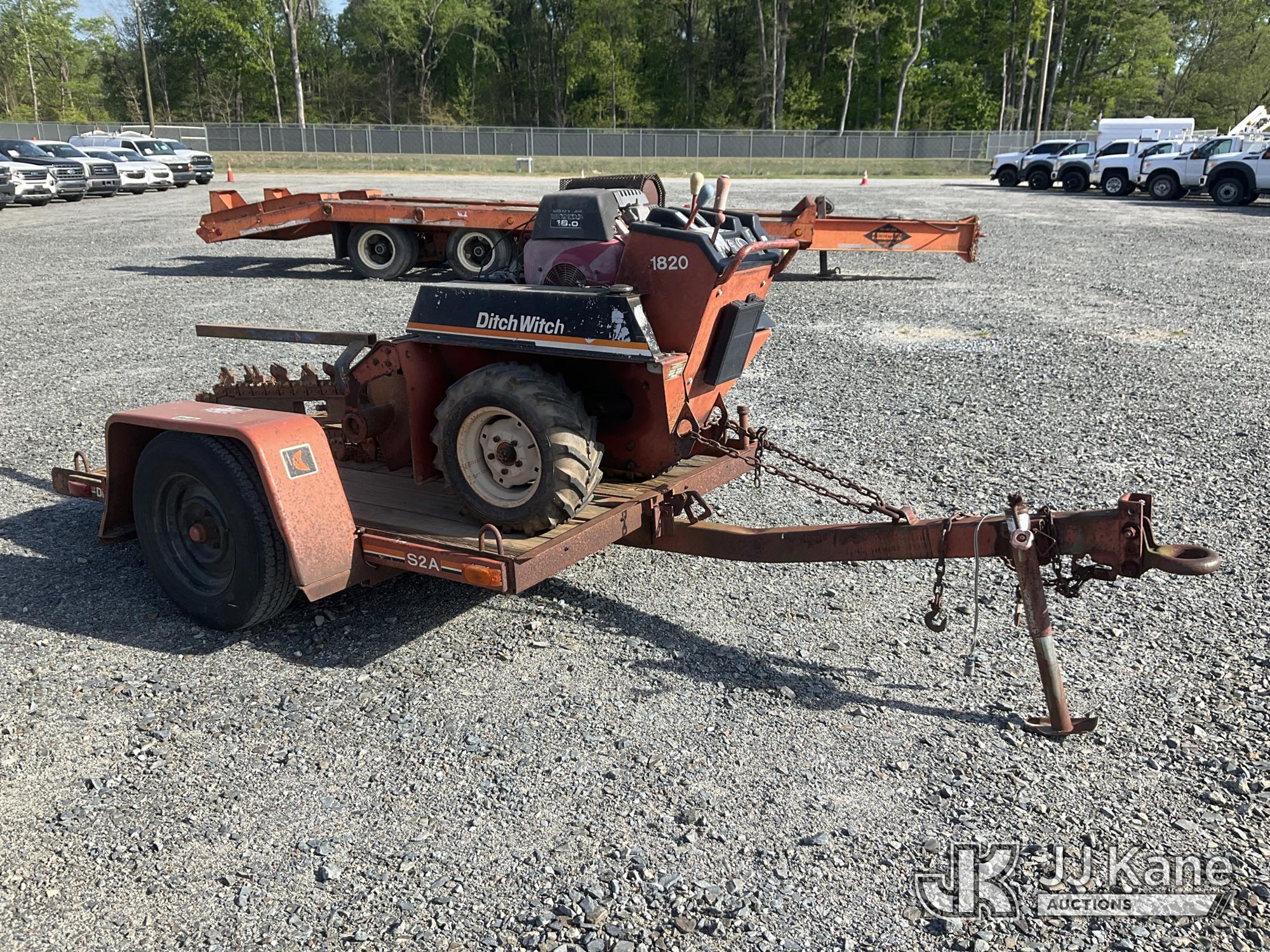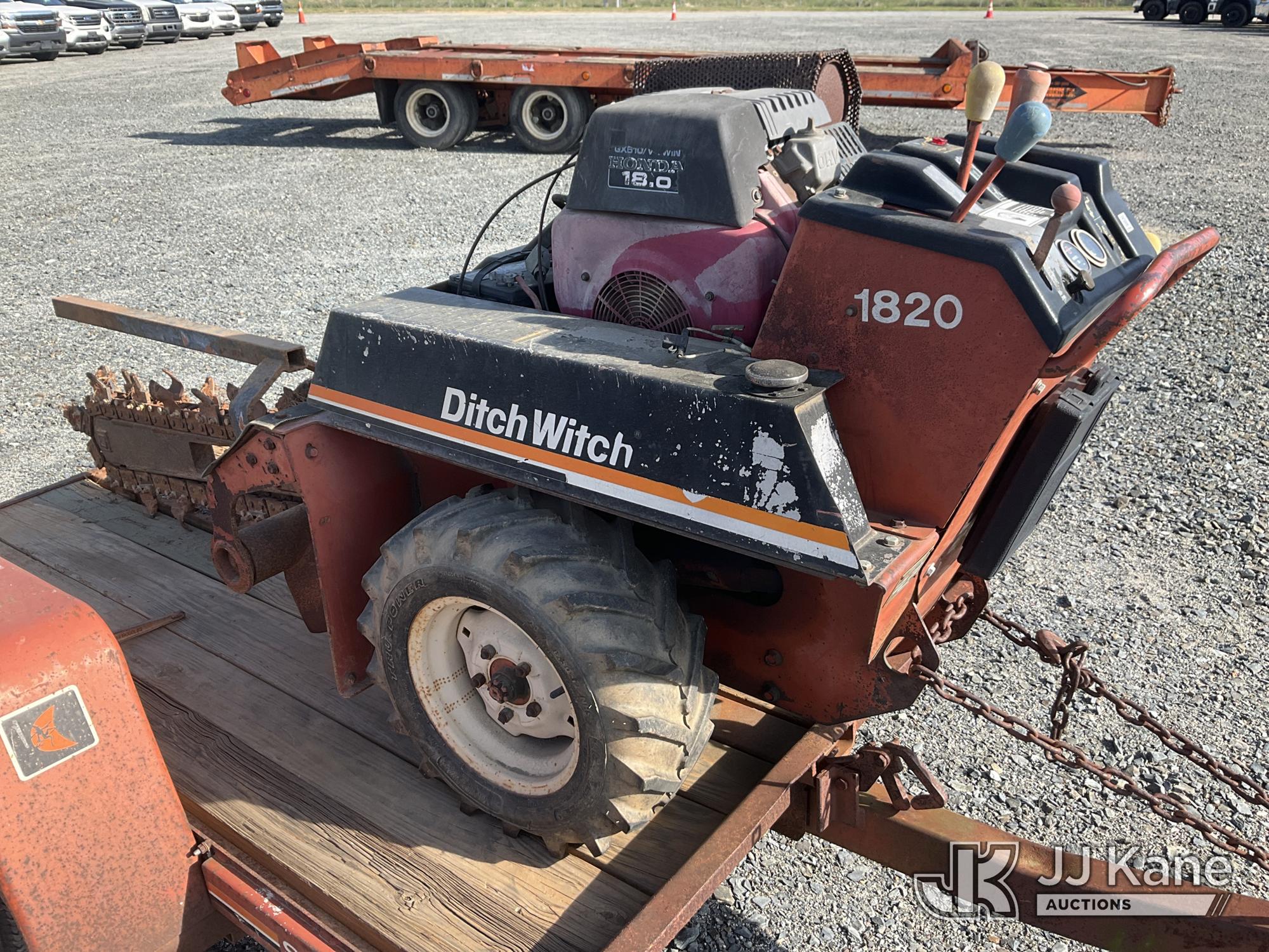 Ditch Witch 1820 Walk-Behind Rubber Tired Trencher, s/n 1L1881, Honda gas, Hydrostatic, Selling With Support Trailer, ID 1602150(Equipment & Trailer Price Will Be Split Out On Invoice To Reflect 80/20, Equipment To Trailer Price Ratio For Tax Purposes.) (Not Running, Condition Unknown ) (Reads 273 hours)*