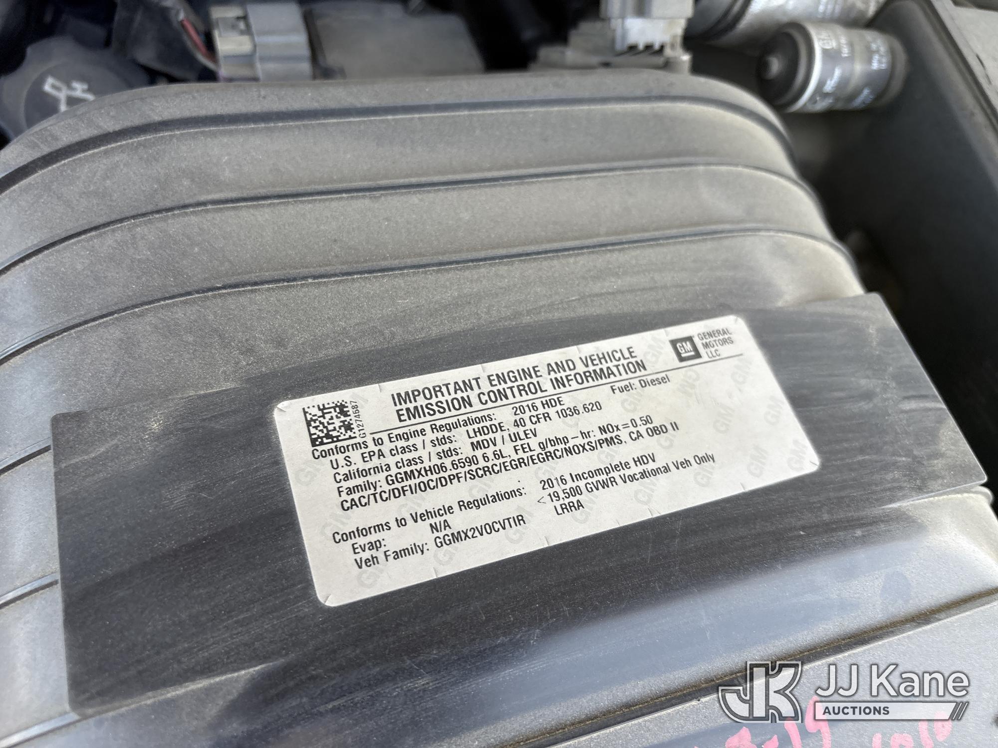 2016 Chevrolet G4500 Van Body Truck, s/n 1GB3GVCL5G1274587, Duramax 6.6L diesel, Auto, A/C, (37,624 miles) (Runs & Moves, Did Not Pass Smog, Service Battery Light On, Needs Jump To Start) (Bidding Restricted to Licensed Vehicle Dealers Only), May be subject to ARB Regulations This is a Titled Item*