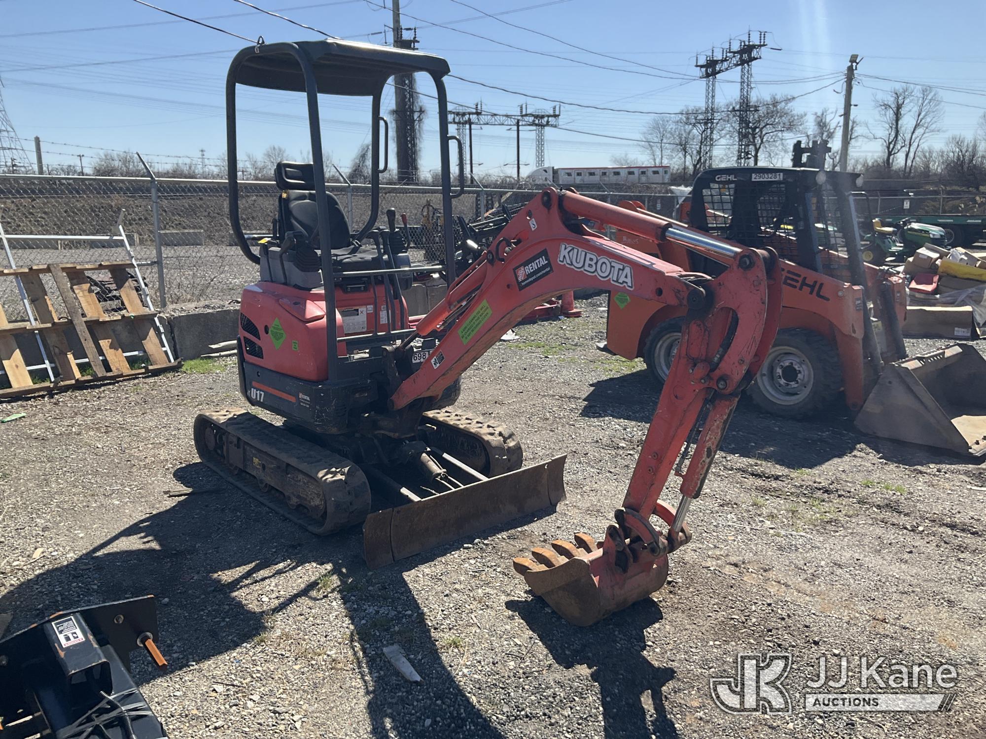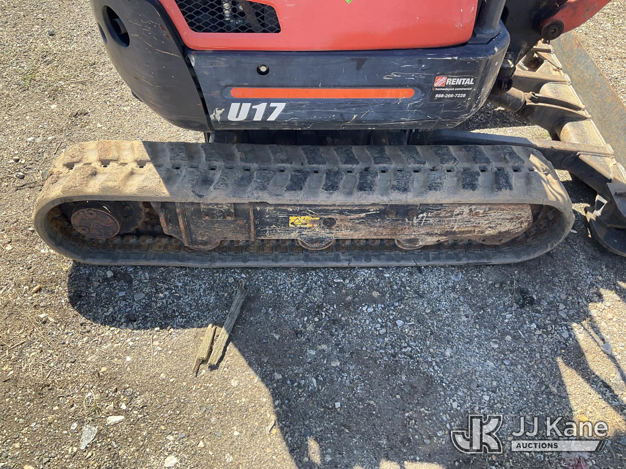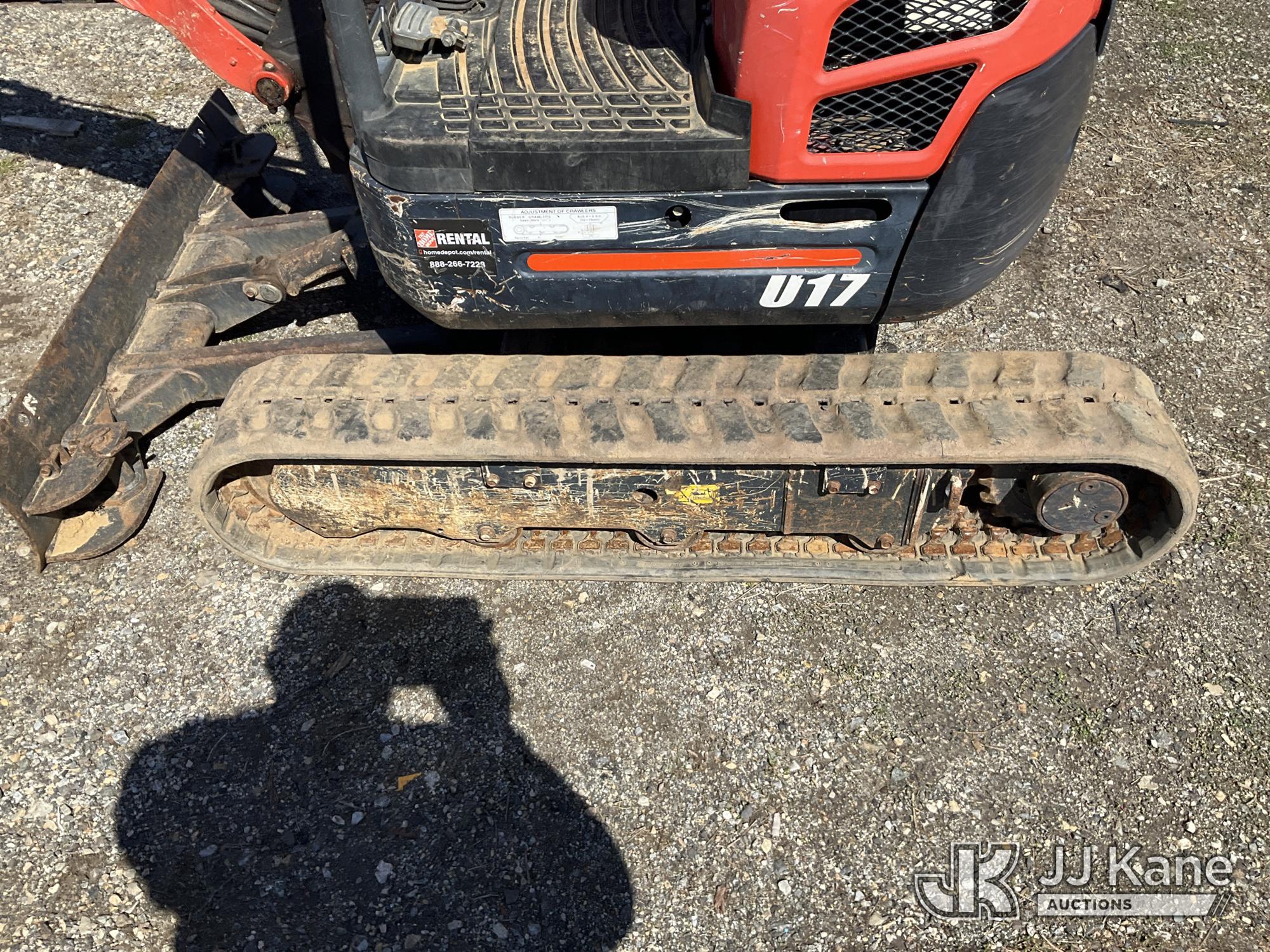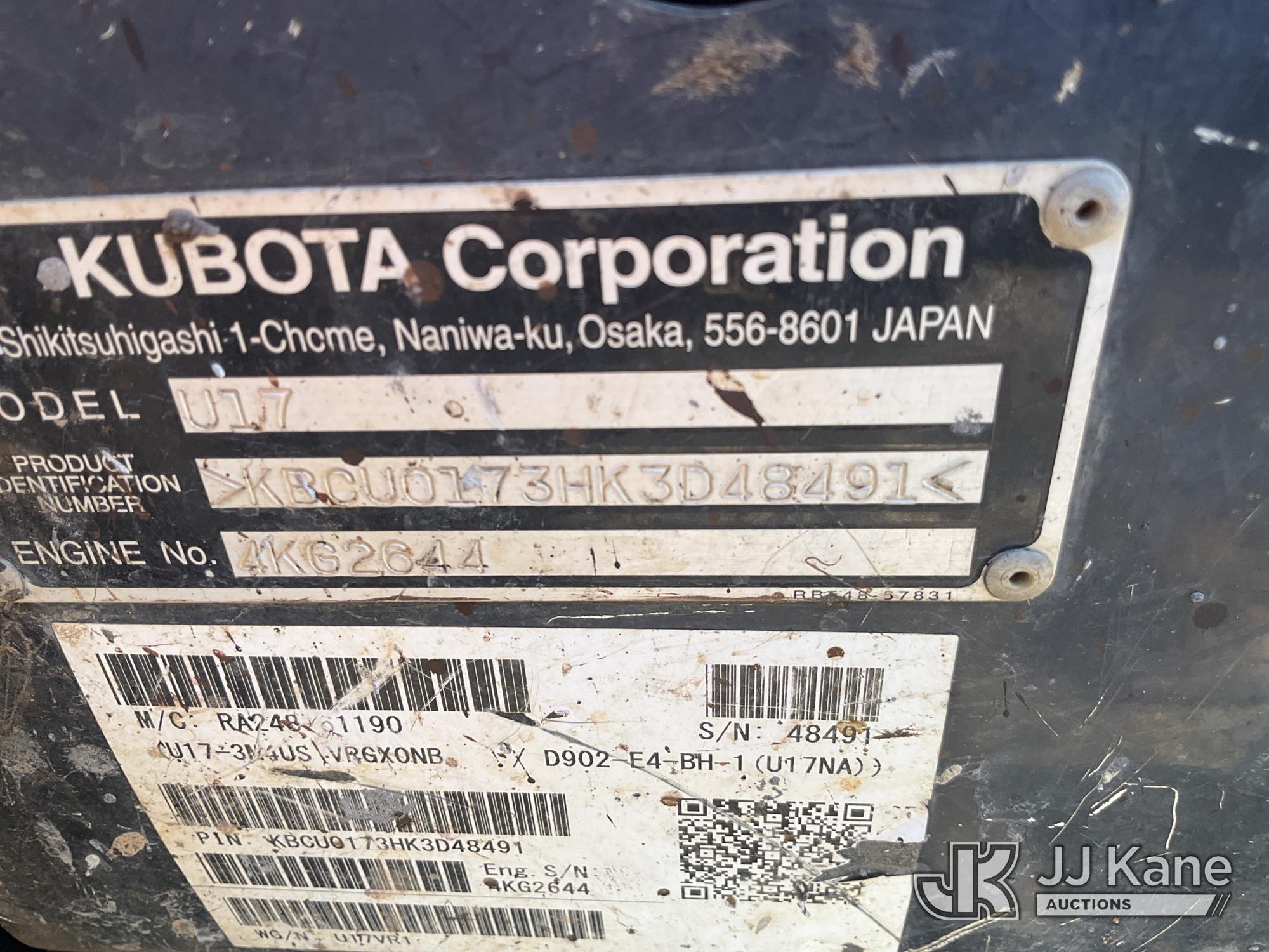 2019 Kubota U17 Mini Hydraulic Excavator, s/n KBCU0173HK3D48491, Kubota diesel, Hydraulic Drive, with 18in Digging Bucket, Rubber Tracks, Backfill Blade, & ROPS, (Runs & Moves) (Reads 1,448 hours)*