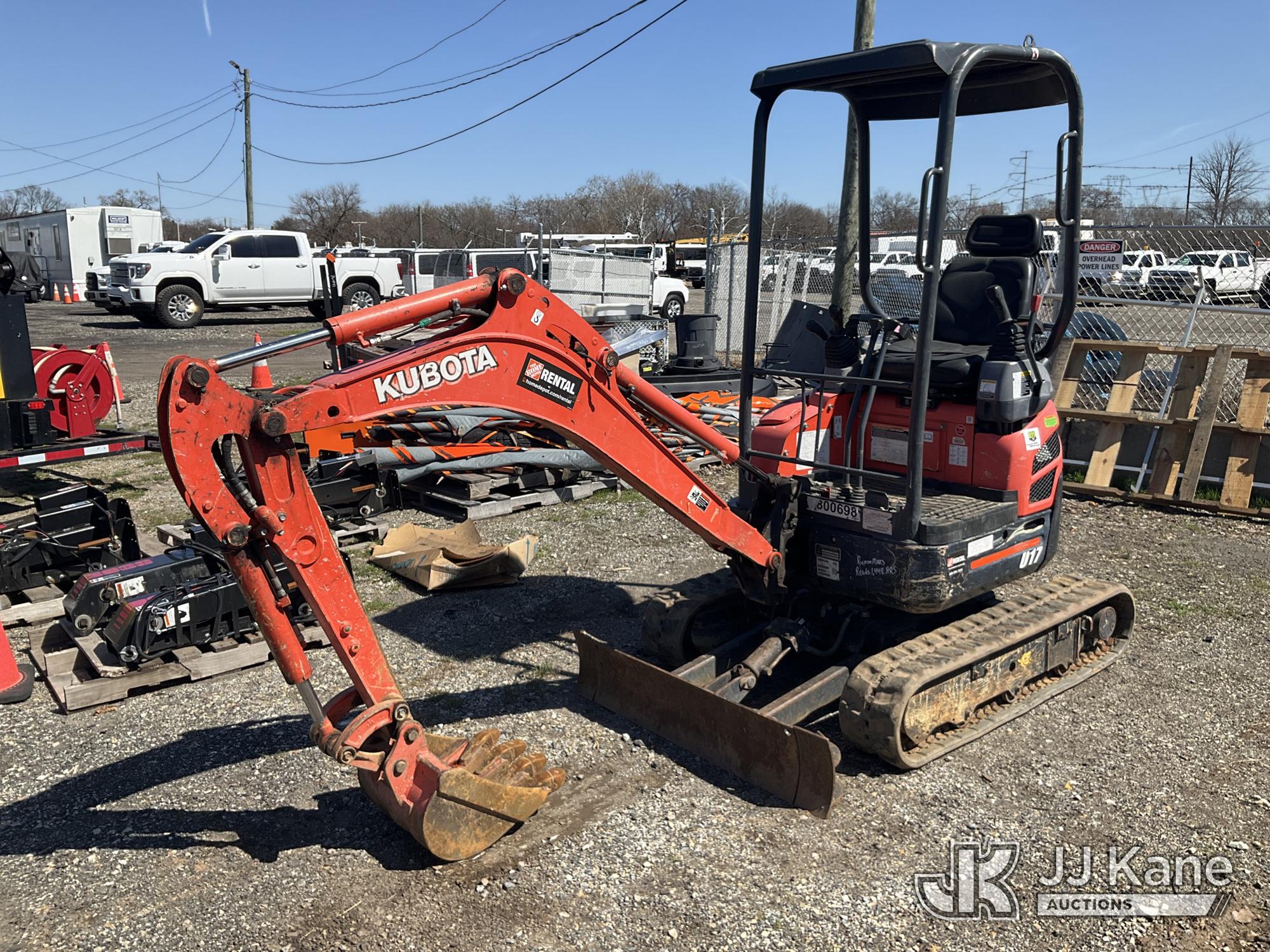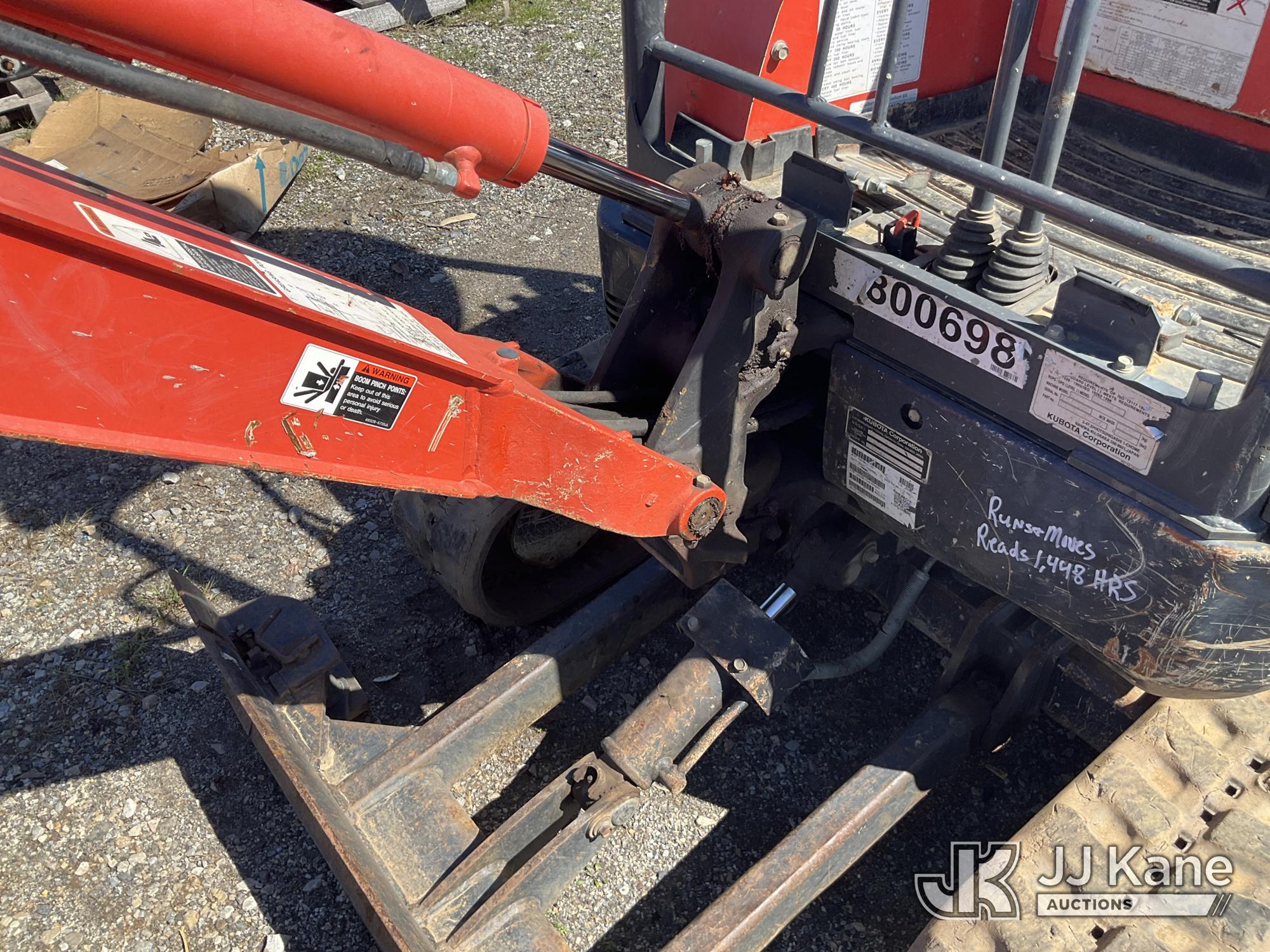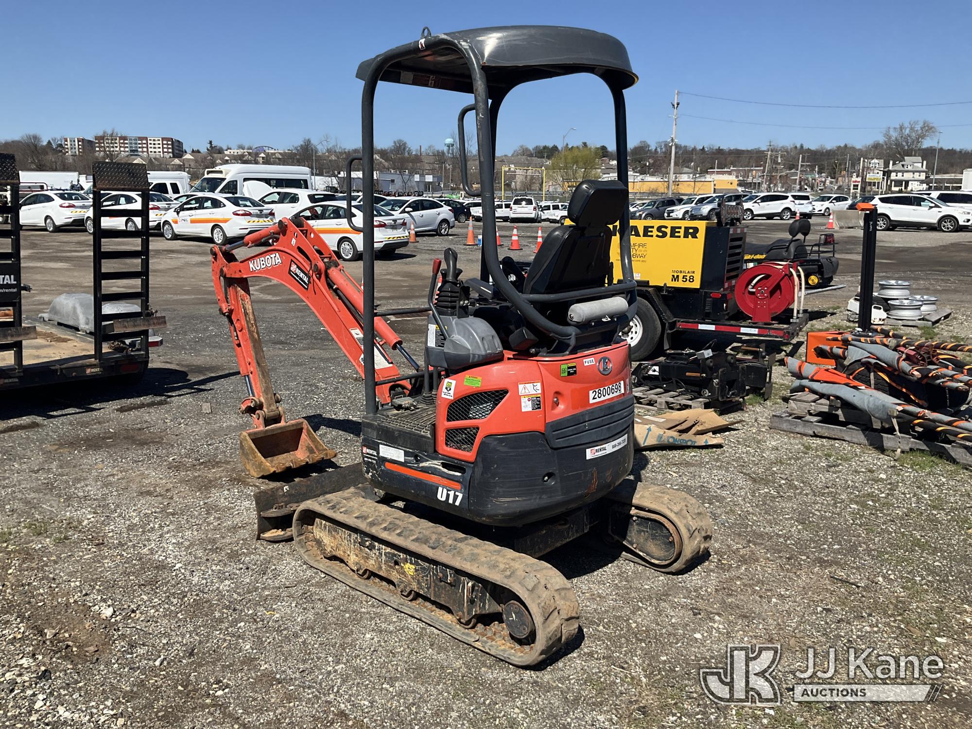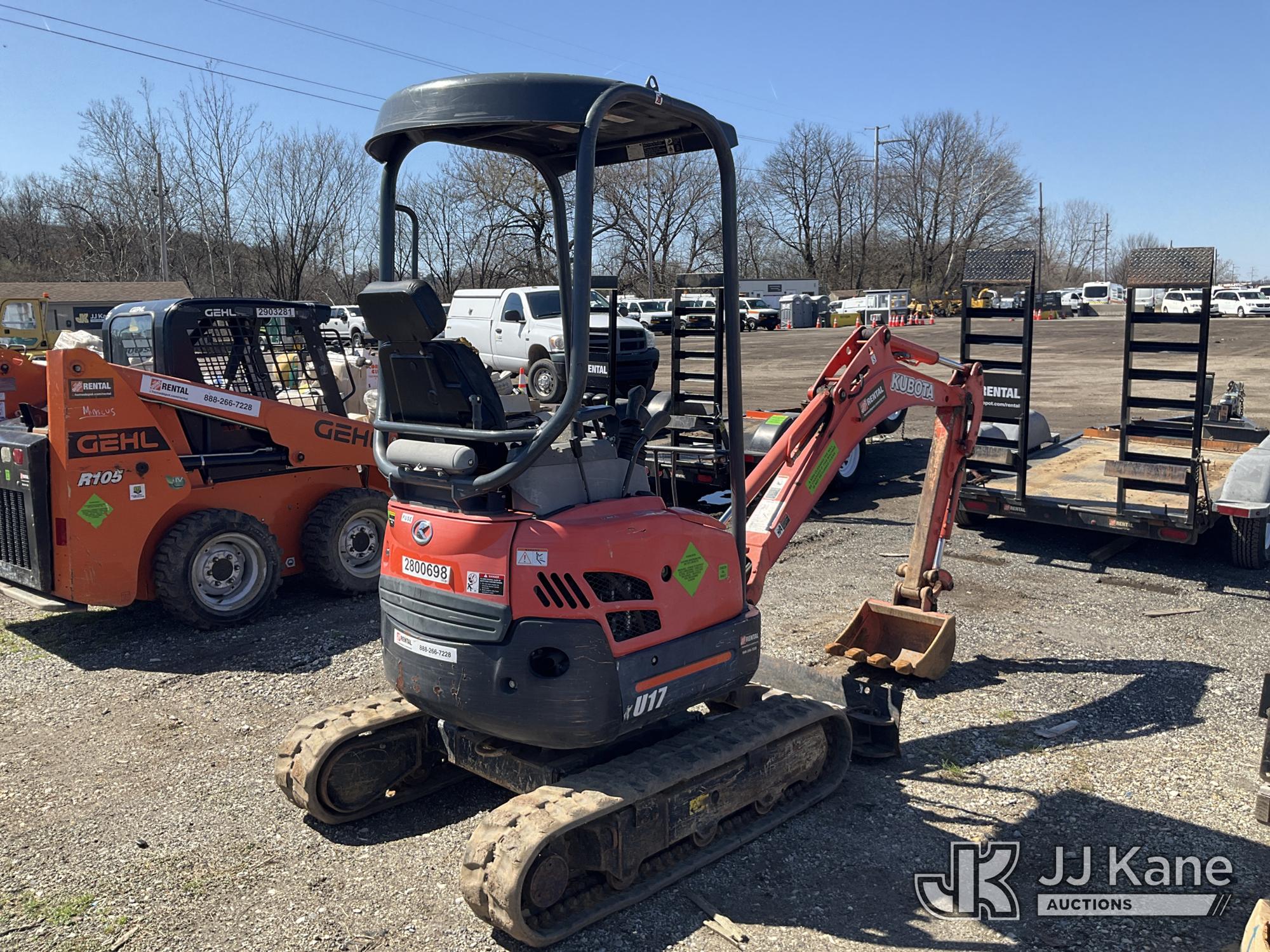 2019 Kubota U17 Mini Hydraulic Excavator, s/n KBCU0173HK3D48491, Kubota diesel, Hydraulic Drive, with 18in Digging Bucket, Rubber Tracks, Backfill Blade, & ROPS, (Runs & Moves) (Reads 1,448 hours)*