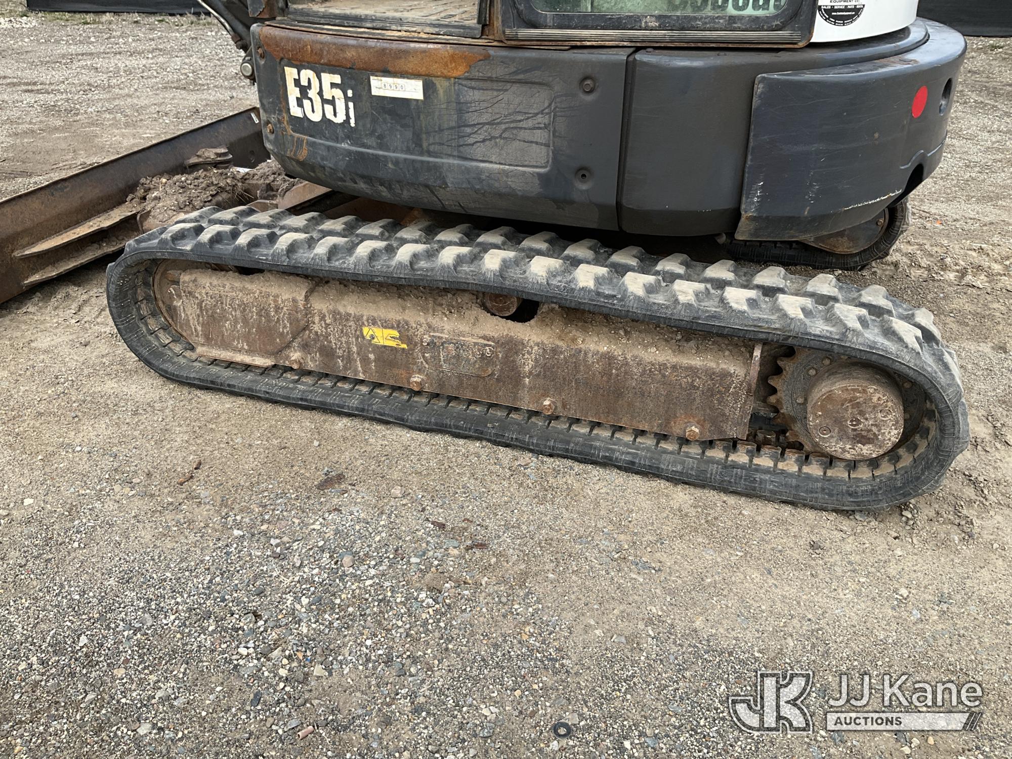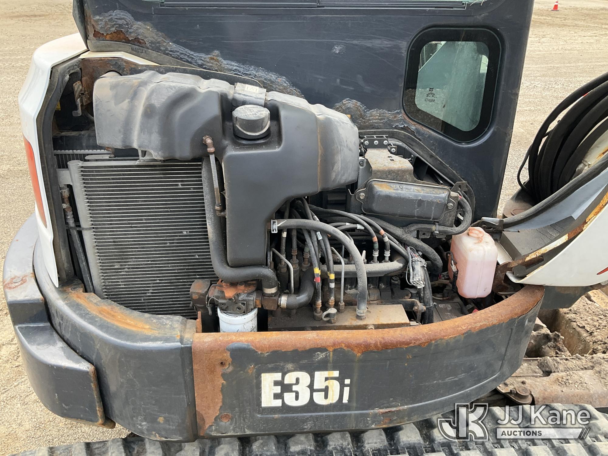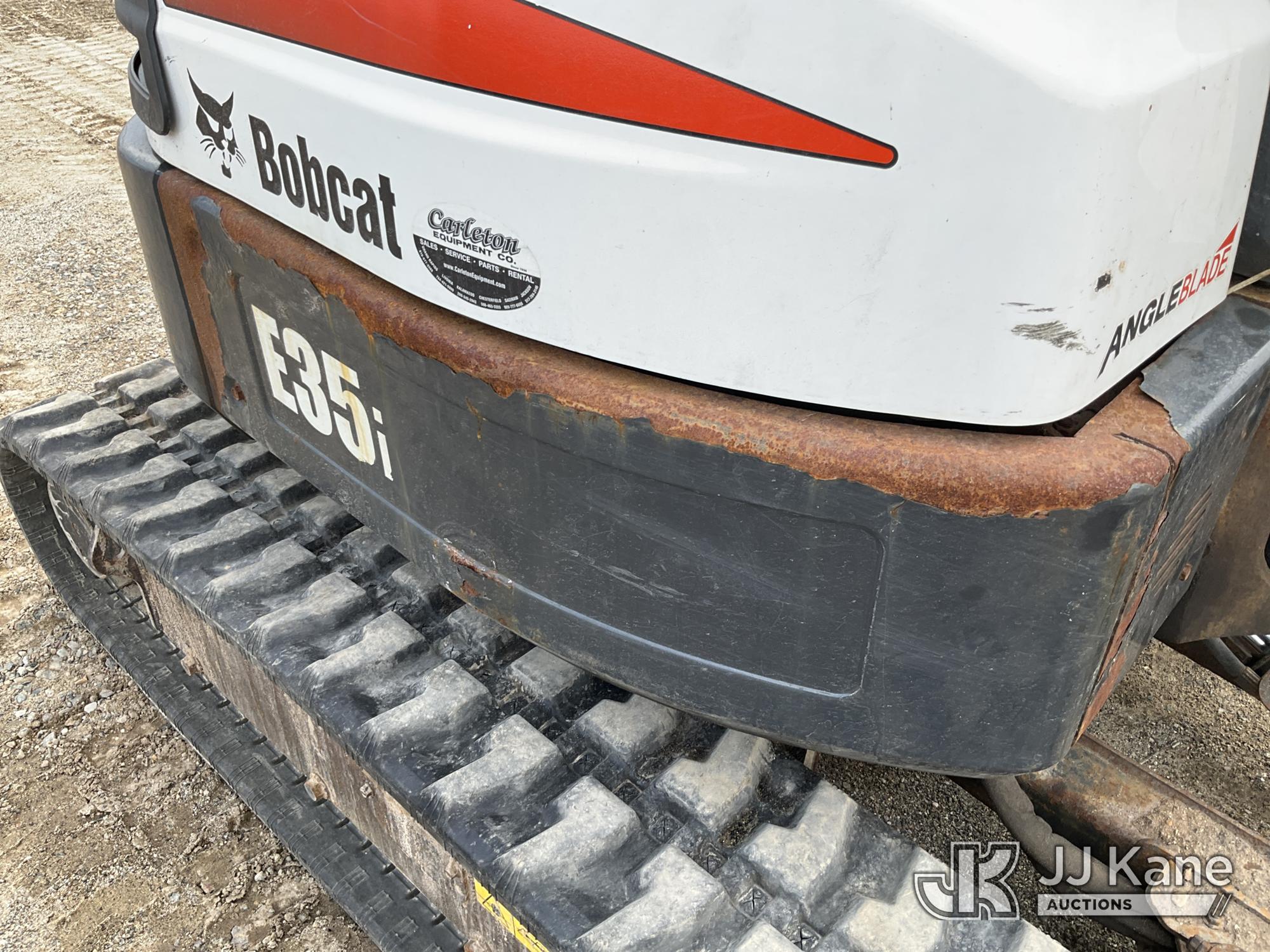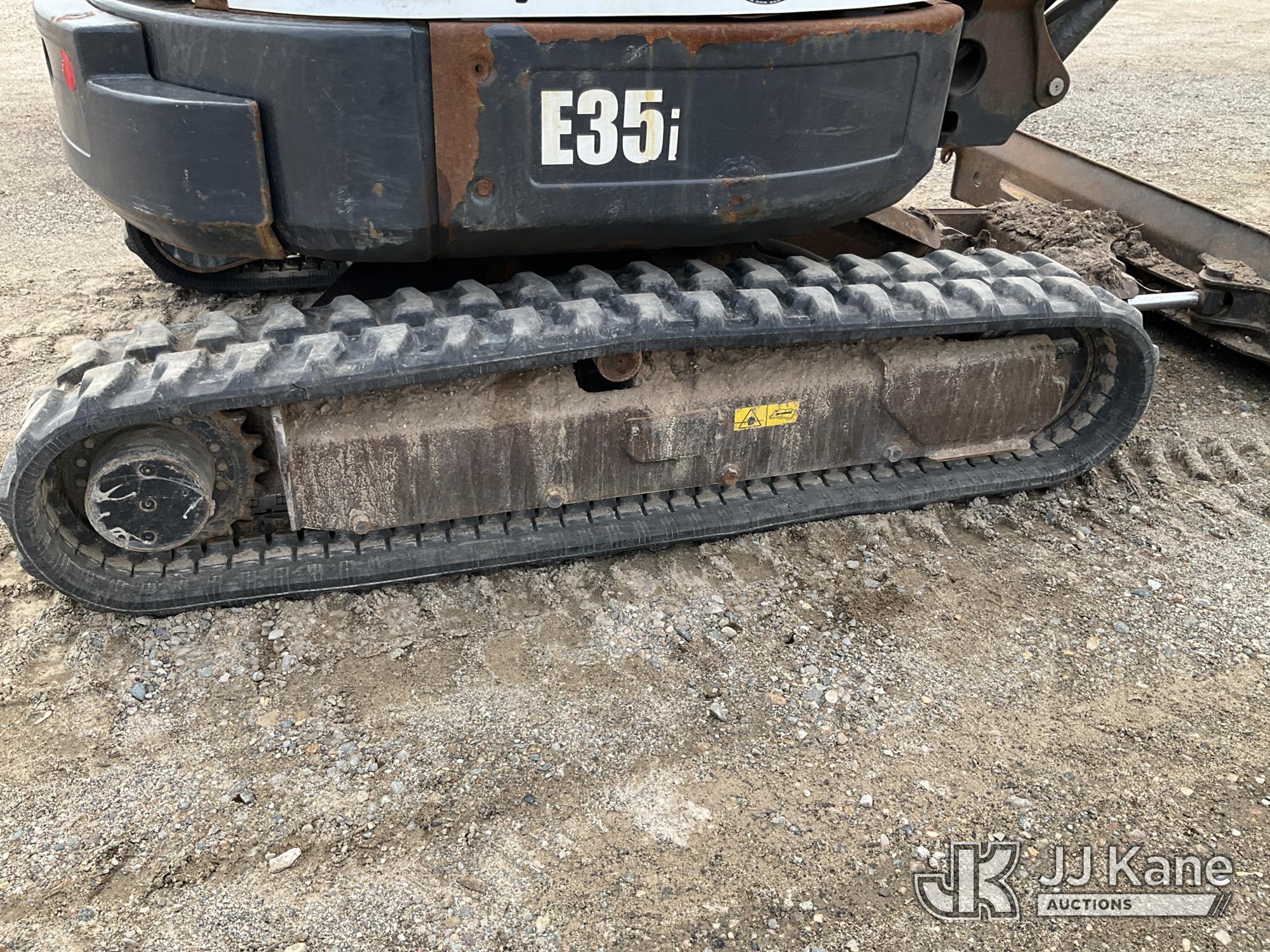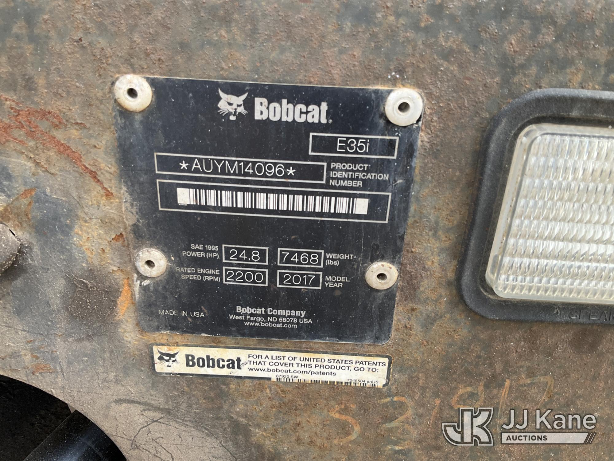 2017 Bobcat E35 Mini Hydraulic Excavator, s/n AUYM14096, Kubota diesel, Hydraulic Drive, A/C, with 24 inch digging bucket, hydraulic thumb attachment, auxiliary hydraulics, 4 way backfill blade, rubber tracks, EROPS, (Runs, Moves & Operates) (Rust) (Reads 2,828 hours)*