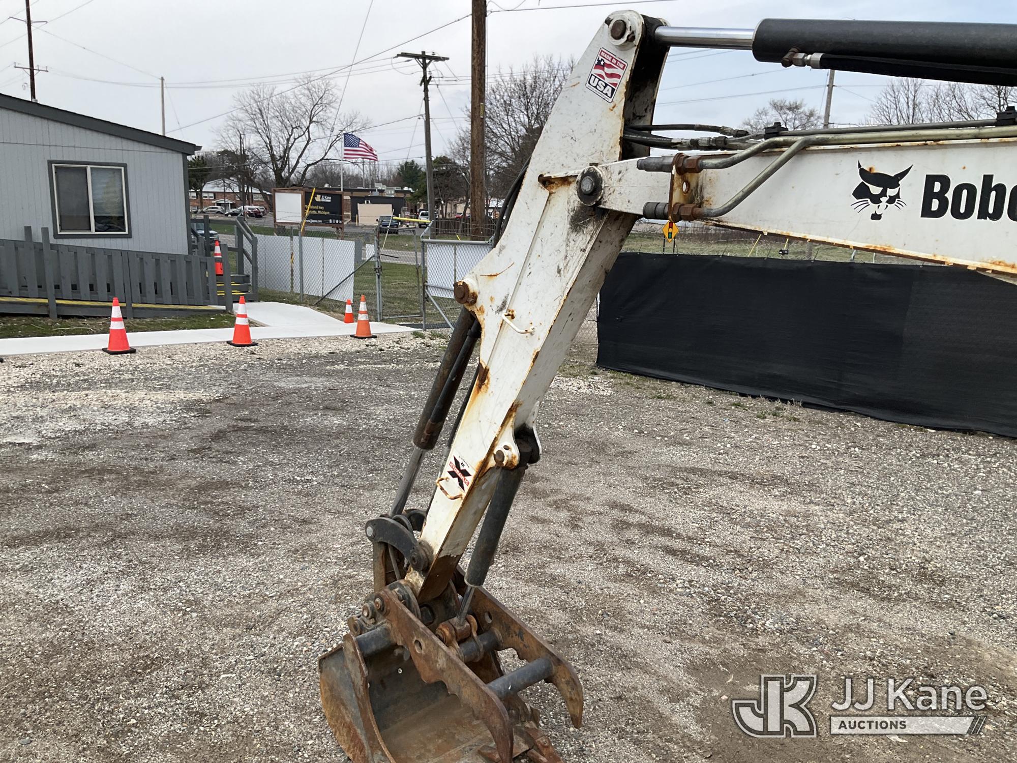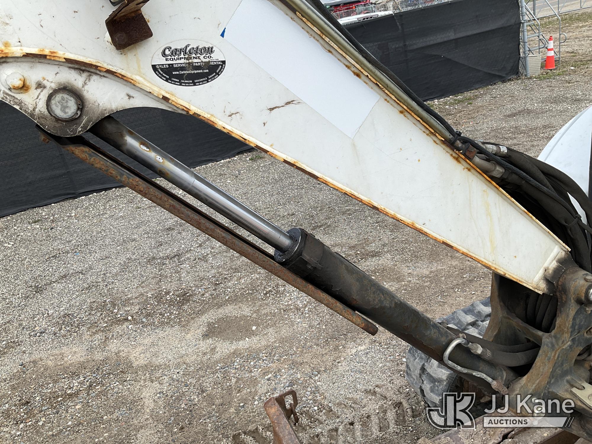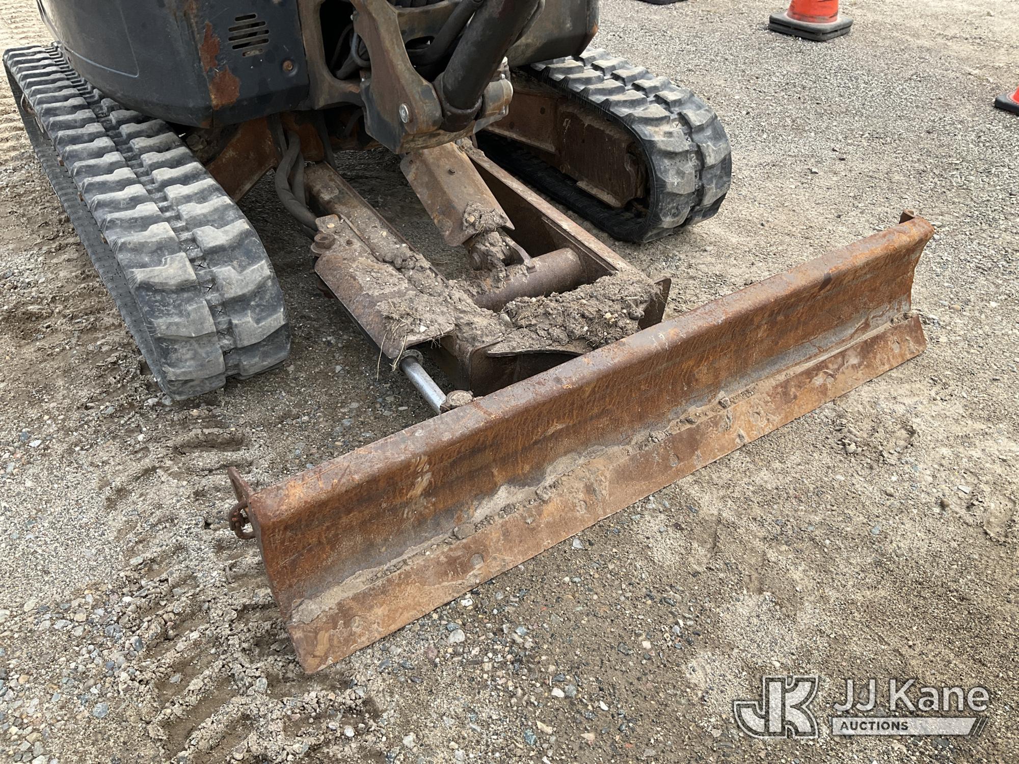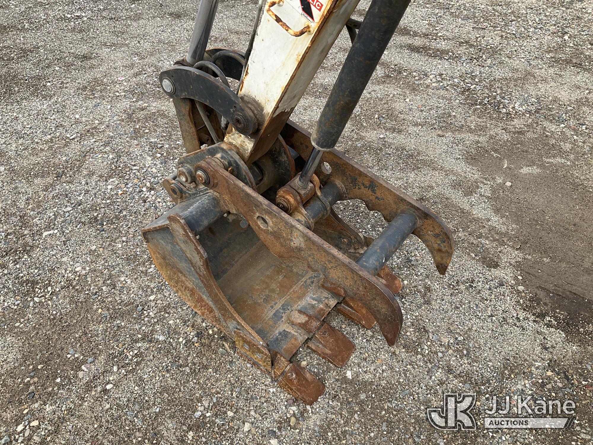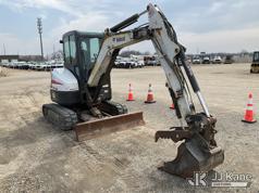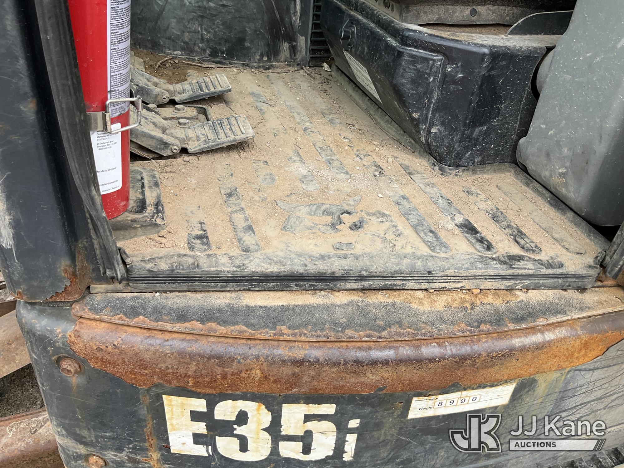 2017 Bobcat E35 Mini Hydraulic Excavator, s/n AUYM14096, Kubota diesel, Hydraulic Drive, A/C, with 24 inch digging bucket, hydraulic thumb attachment, auxiliary hydraulics, 4 way backfill blade, rubber tracks, EROPS, (Runs, Moves & Operates) (Rust) (Reads 2,828 hours)*