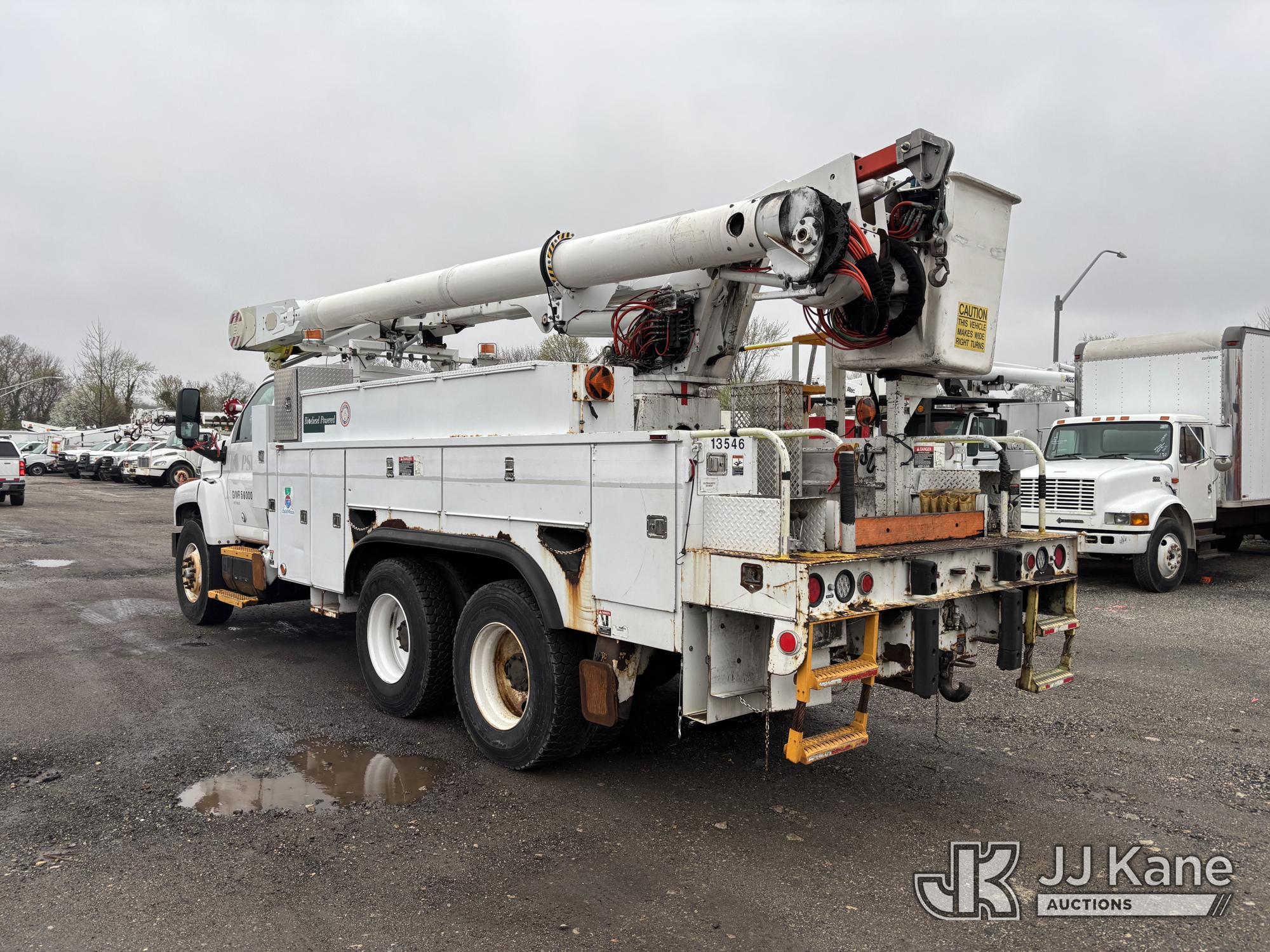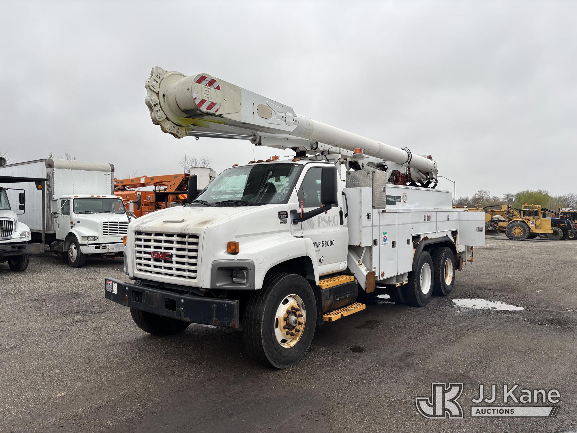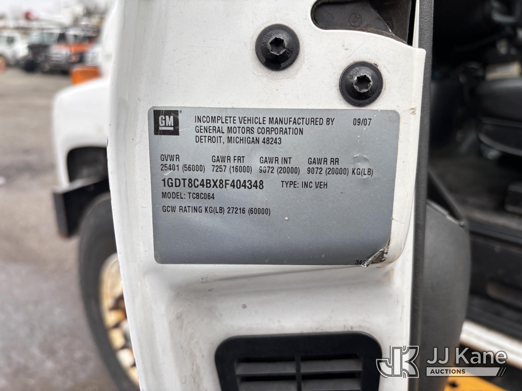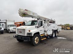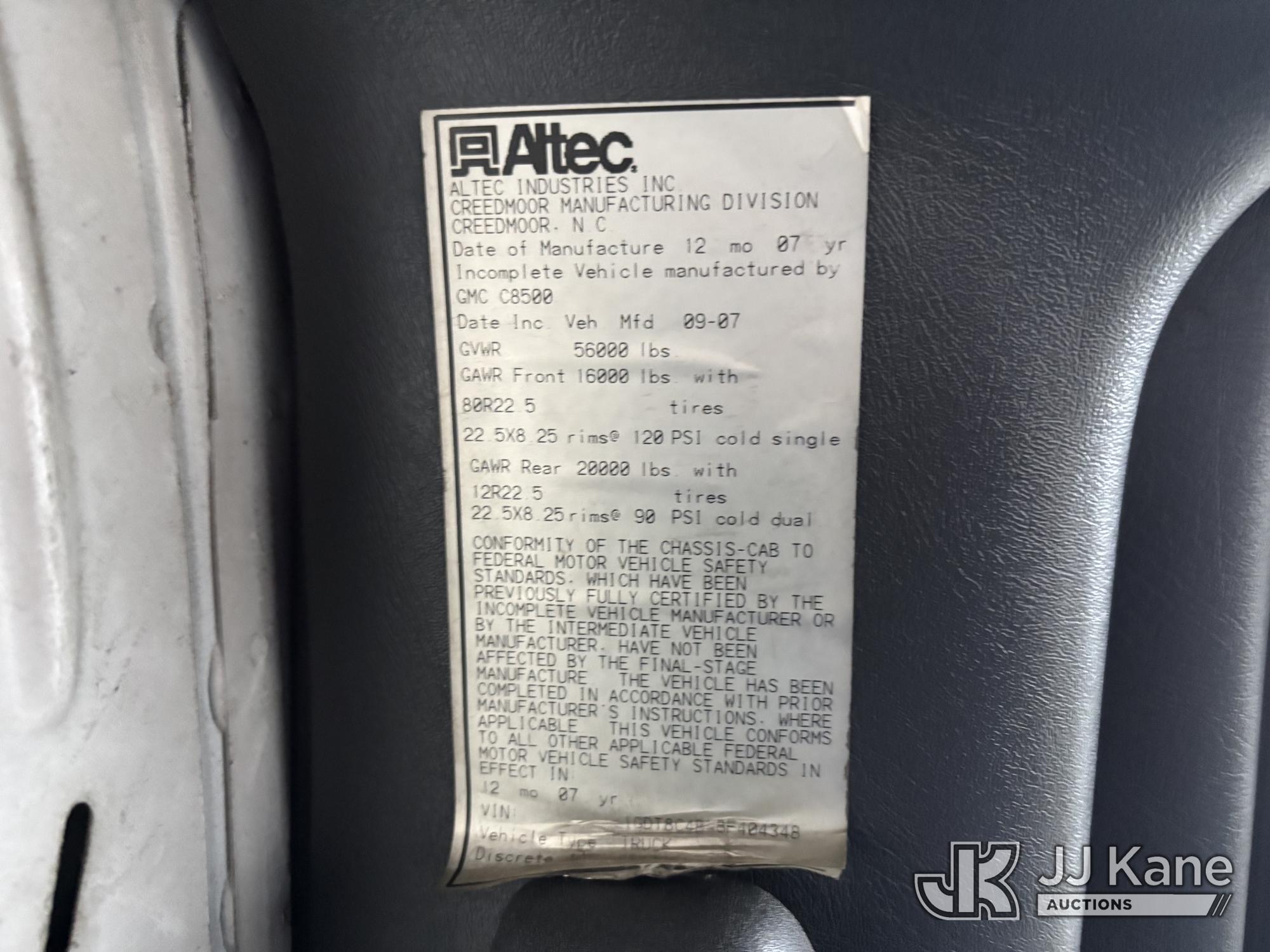 Altec AM55-MH, 60 ft, Over-Center Material Handling Bucket Truck s/n 0807DM1712, with Single - Man Bucket & 4 Outriggers, rear mounted on 2008 GMC C8500 T/A Utility Truck, Isuzu diesel, Auto, A/C, (64,623 miles) (Runs, Moves, Parts Off of Upper, Upper Condition Unknown – Requires ANSI Inspection for Repair/Replacement Requirements) This is a Titled Item*