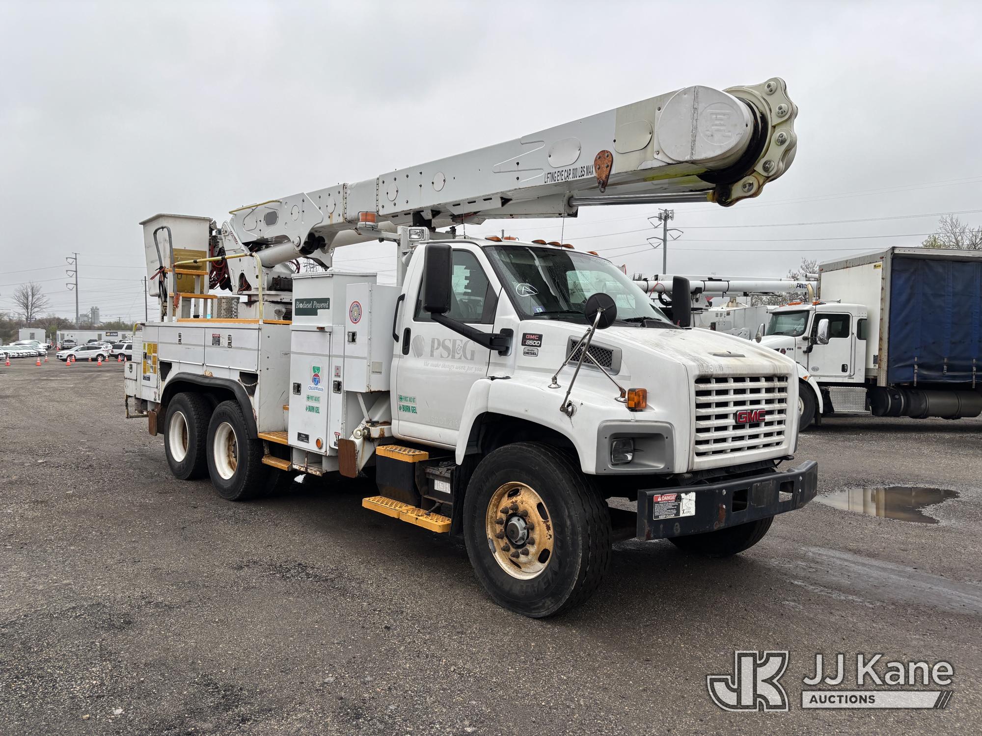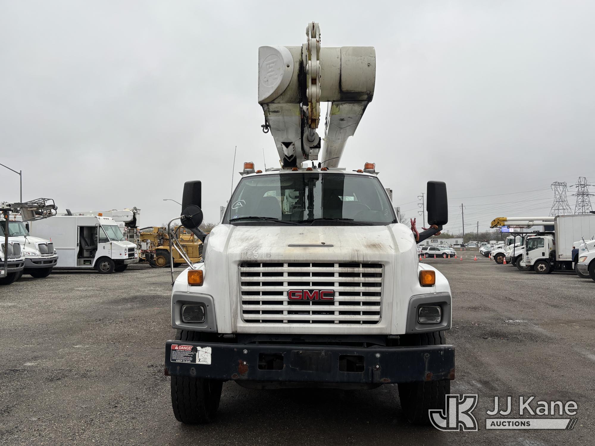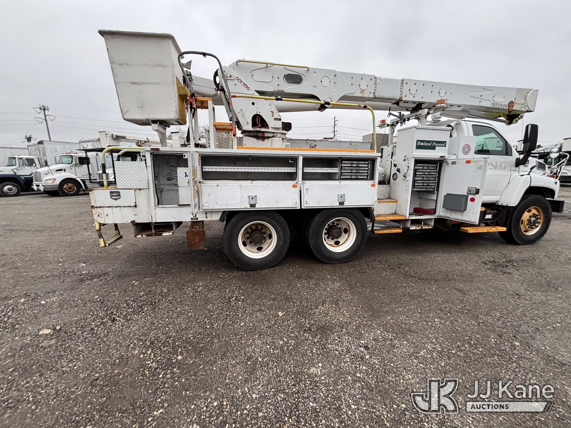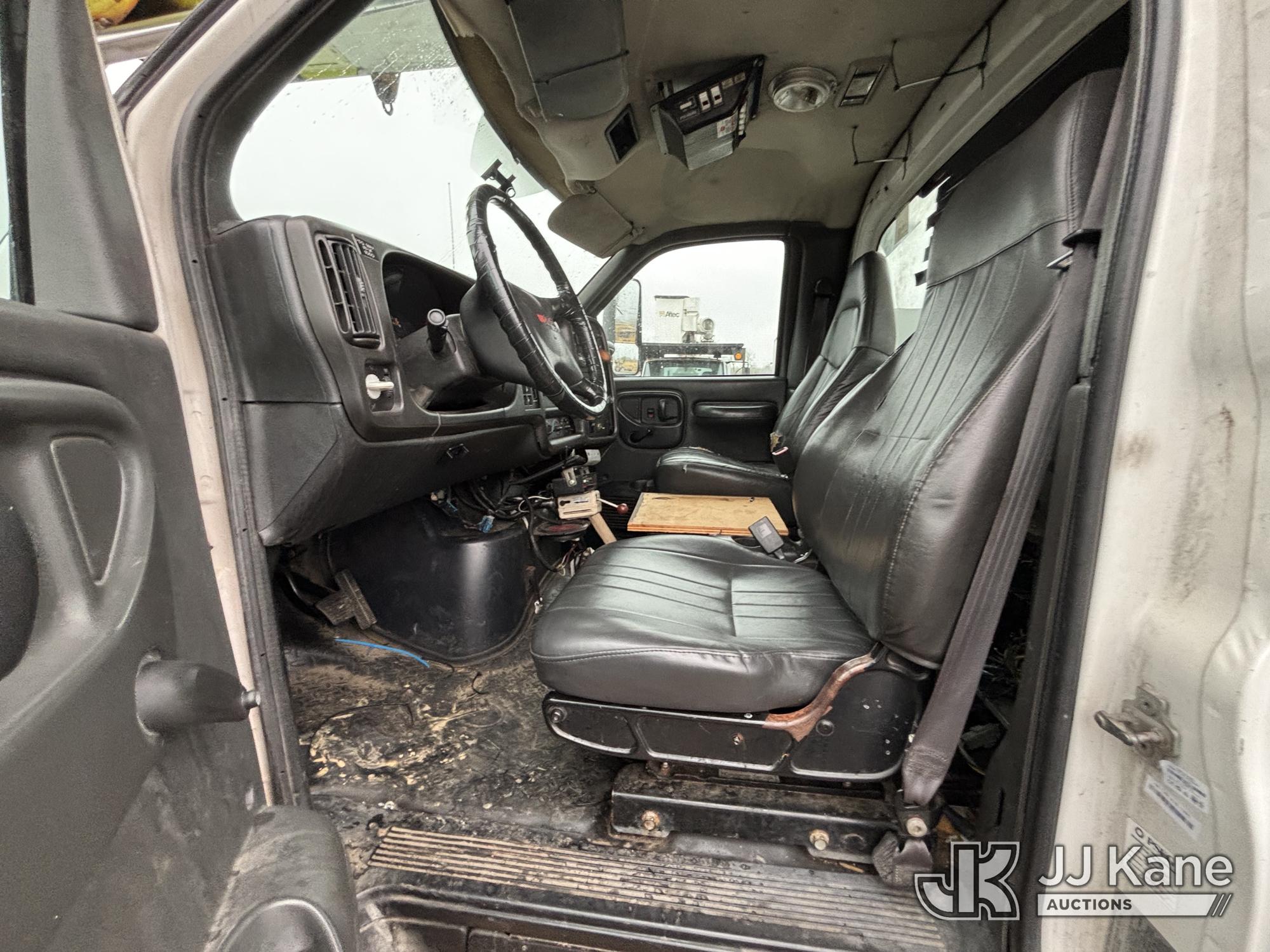 Altec AM55-MH, 60 ft, Over-Center Material Handling Bucket Truck s/n 0807DM1712, with Single - Man Bucket & 4 Outriggers, rear mounted on 2008 GMC C8500 T/A Utility Truck, Isuzu diesel, Auto, A/C, (64,623 miles) (Runs, Moves, Parts Off of Upper, Upper Condition Unknown – Requires ANSI Inspection for Repair/Replacement Requirements) This is a Titled Item*