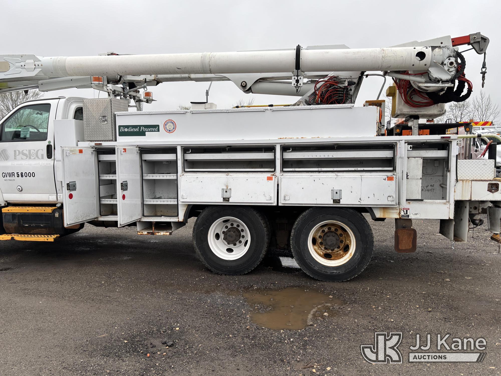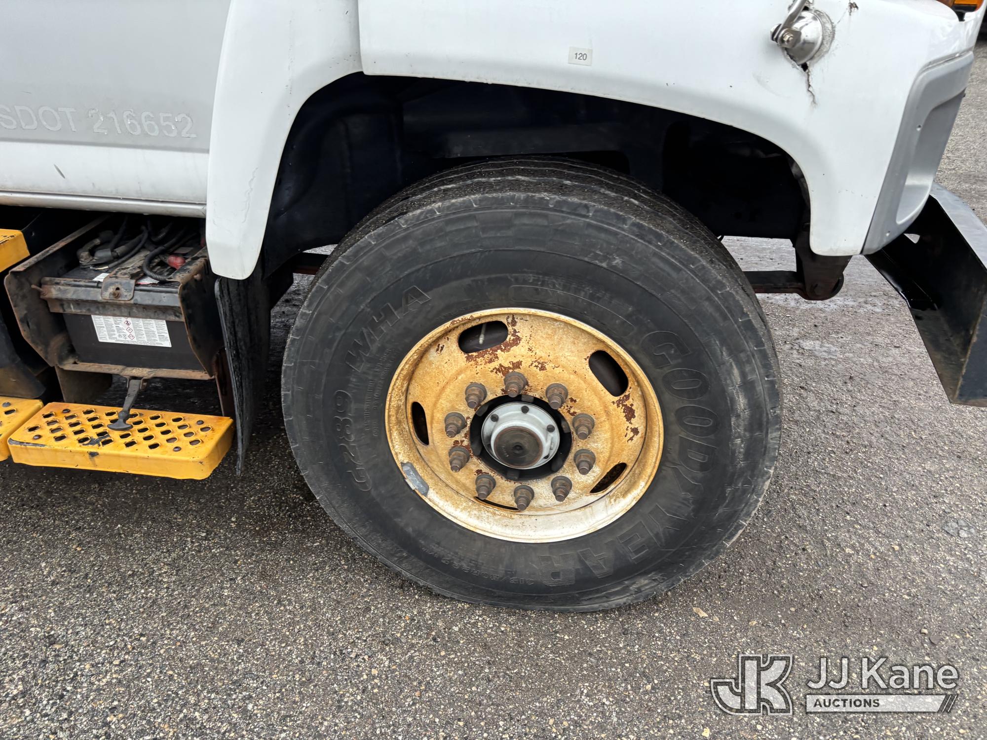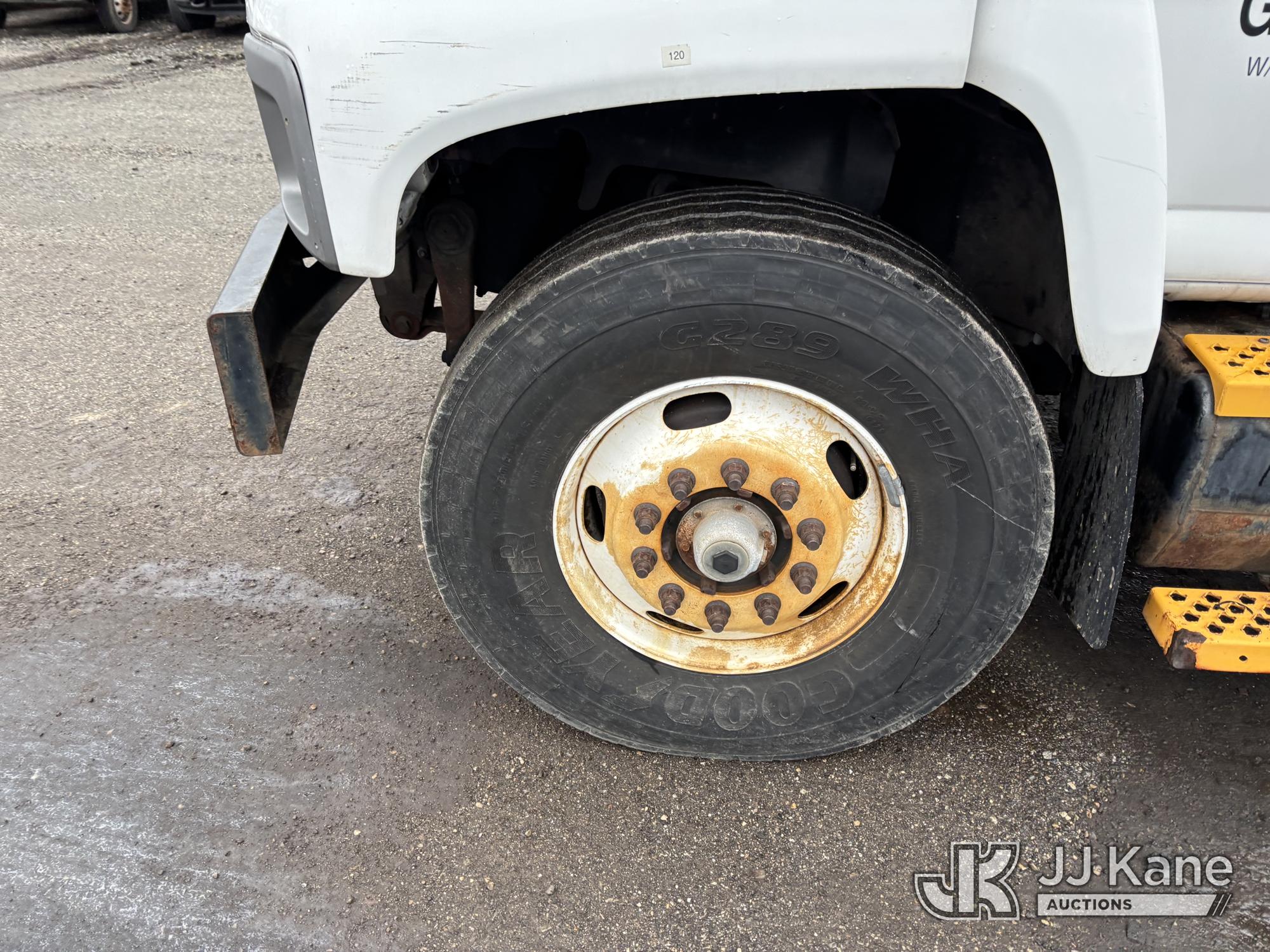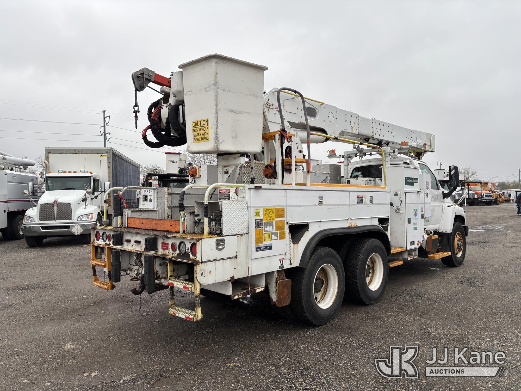 Altec AM55-MH, 60 ft, Over-Center Material Handling Bucket Truck s/n 0807DM1712, with Single - Man Bucket & 4 Outriggers, rear mounted on 2008 GMC C8500 T/A Utility Truck, Isuzu diesel, Auto, A/C, (64,623 miles) (Runs, Moves, Parts Off of Upper, Upper Condition Unknown – Requires ANSI Inspection for Repair/Replacement Requirements) This is a Titled Item*