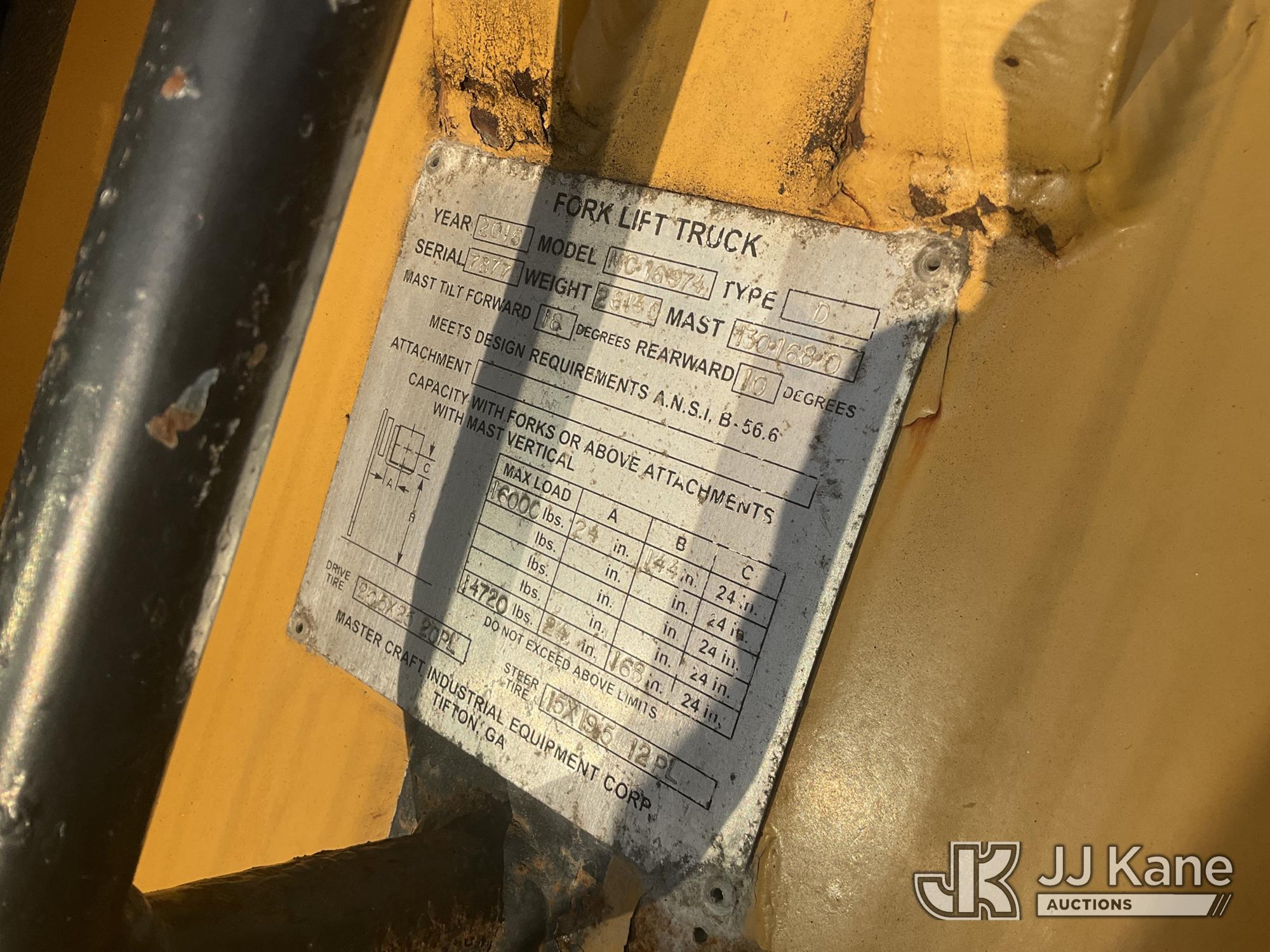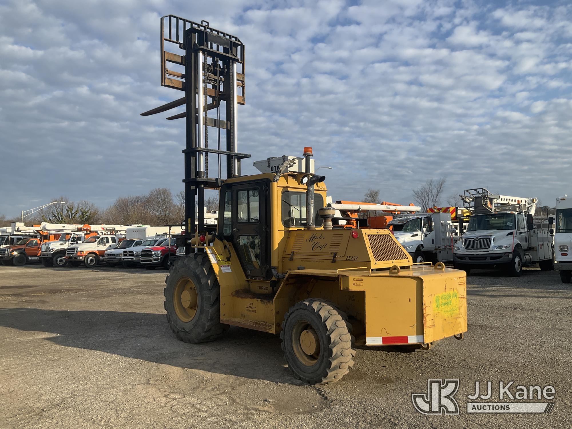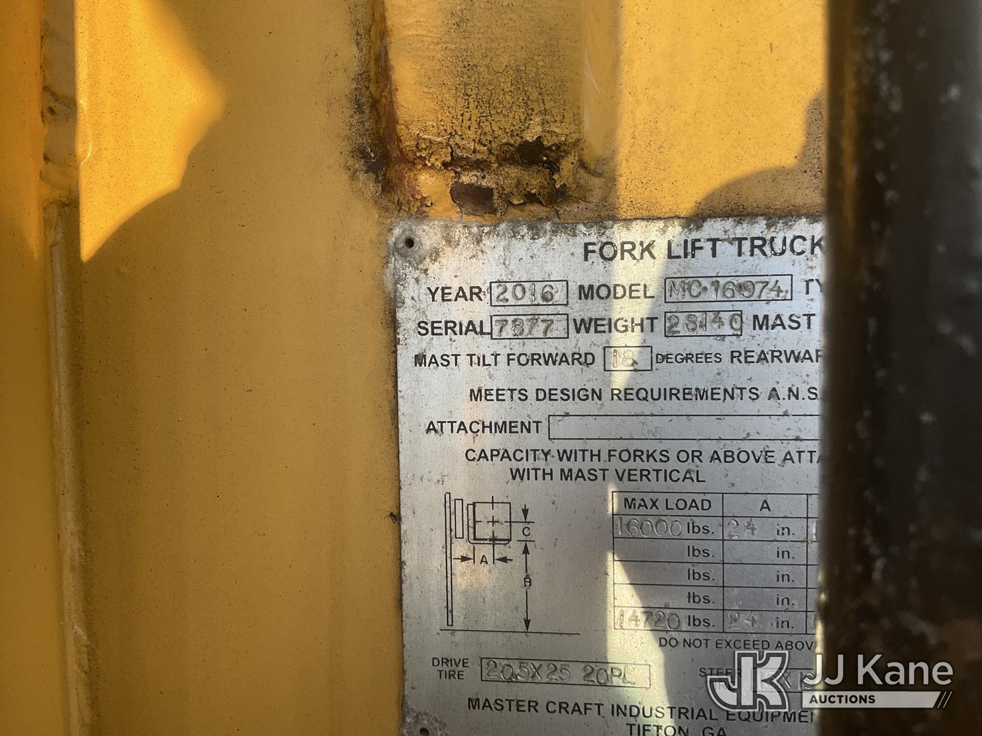 2016 Master Craft MC16-974 Rough Terrain Forklift, s/n 7877, Cat 4wd, diesel, powershift, with 16,000lb Cap. 144in Mast Ht. 72in Forks, Hyd. Open & Close Forks, Hyd. Side Shift & EROPS, (Runs & Moves) (Reads 1,129 hours)*