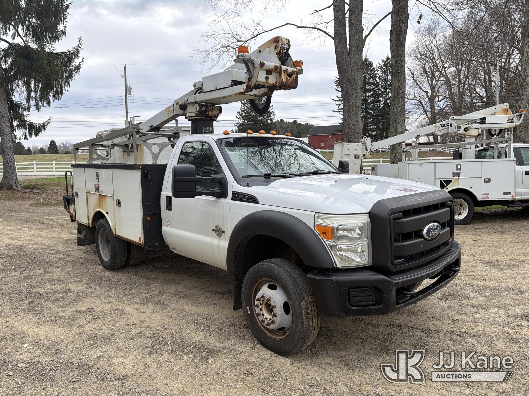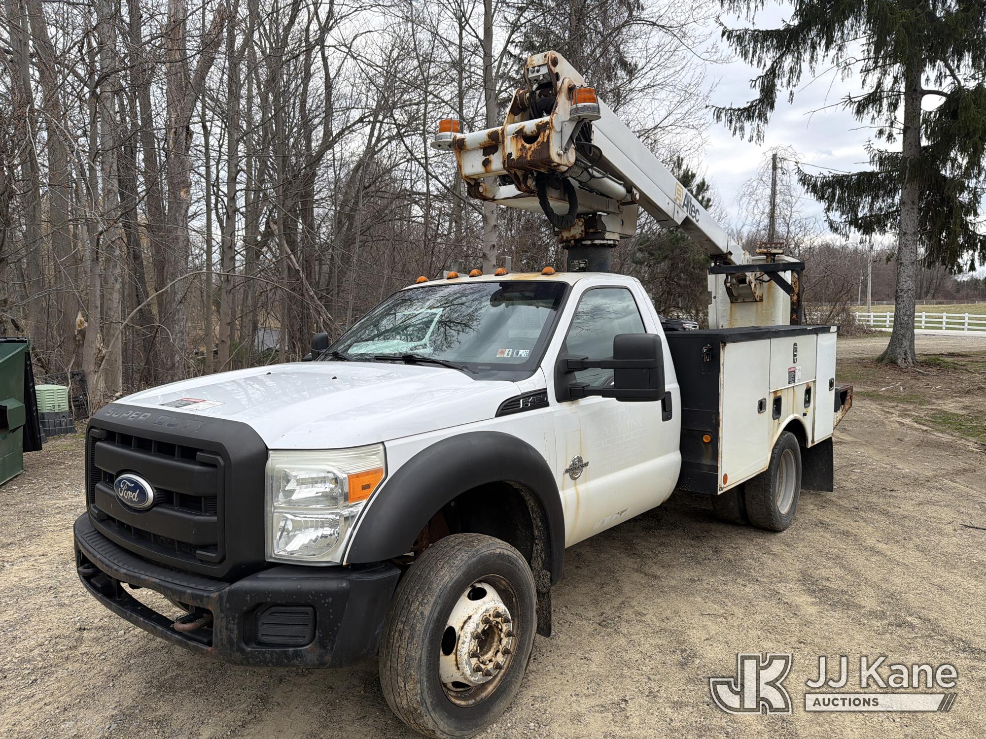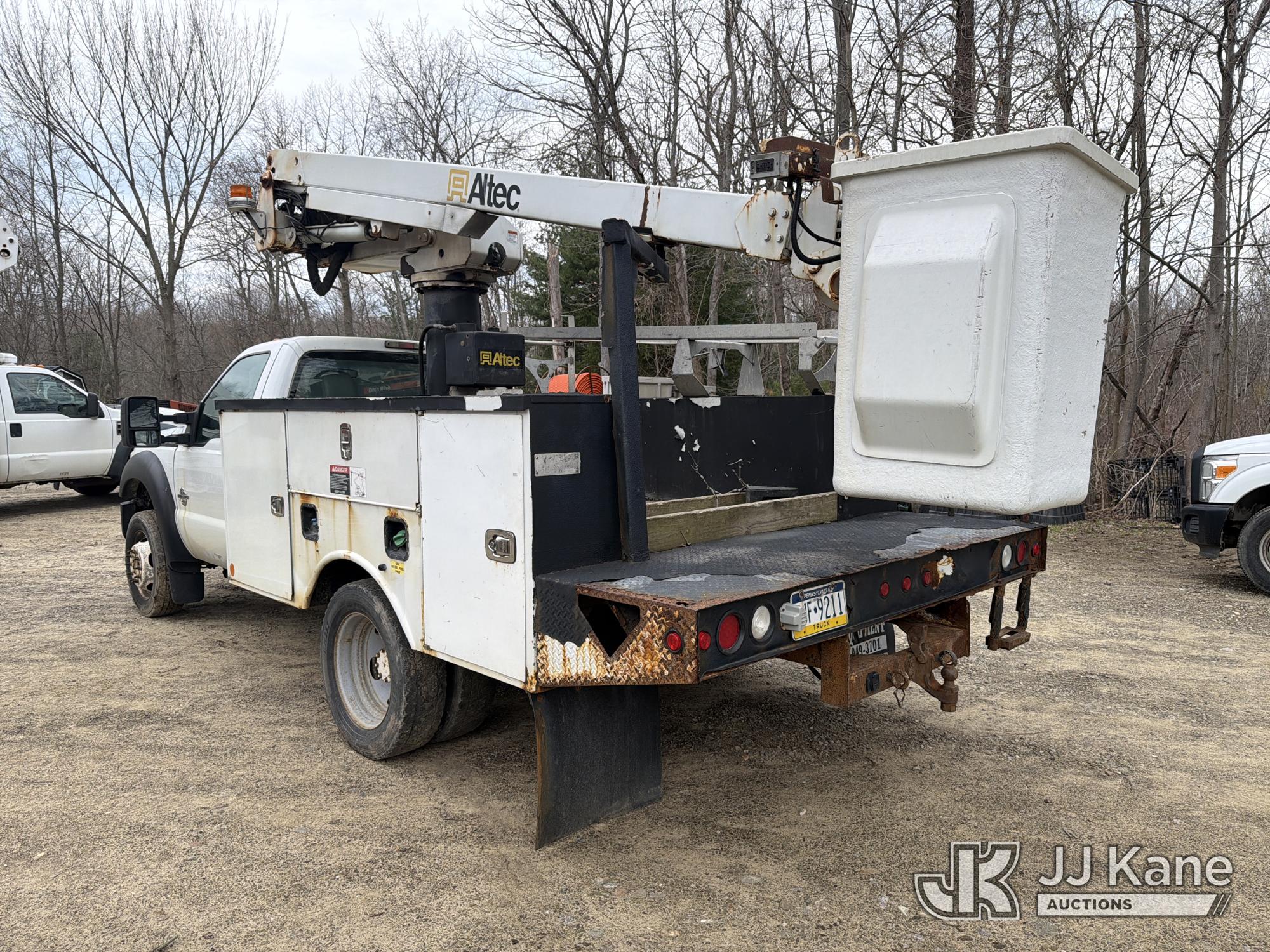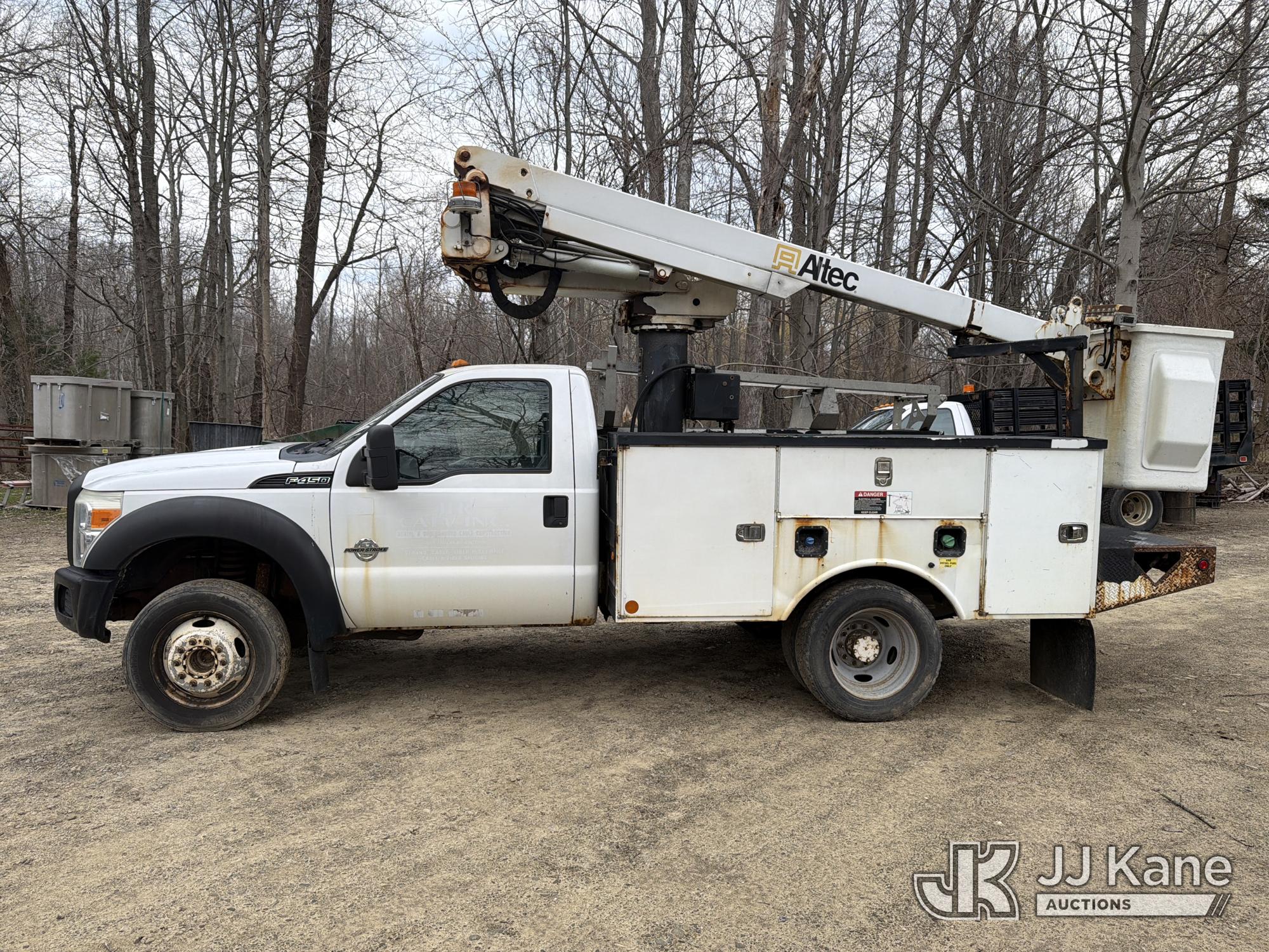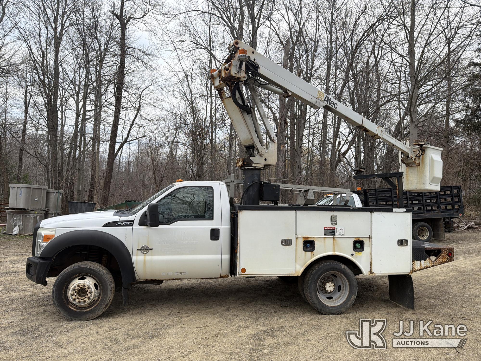 Altec AT235, 40 ft, Articulating & Telescopic Non-Insulated Bucket Truck s/n 0510BX3965, with single-man bucket, mounted behind cab on 2011 Ford F450 2WD Service Truck, 6.7L diesel, Auto, A/C, (206,800 miles) (Runs & Moves, Upper Unit Operates) (Removal is by Appointment Only, Buyer MUST make a appointment prior to picking up, Buyer/Transporter Must have PAID IN FULL RELEASE. No onsite assistance available, Please Come prepared.) This is a Titled Item*