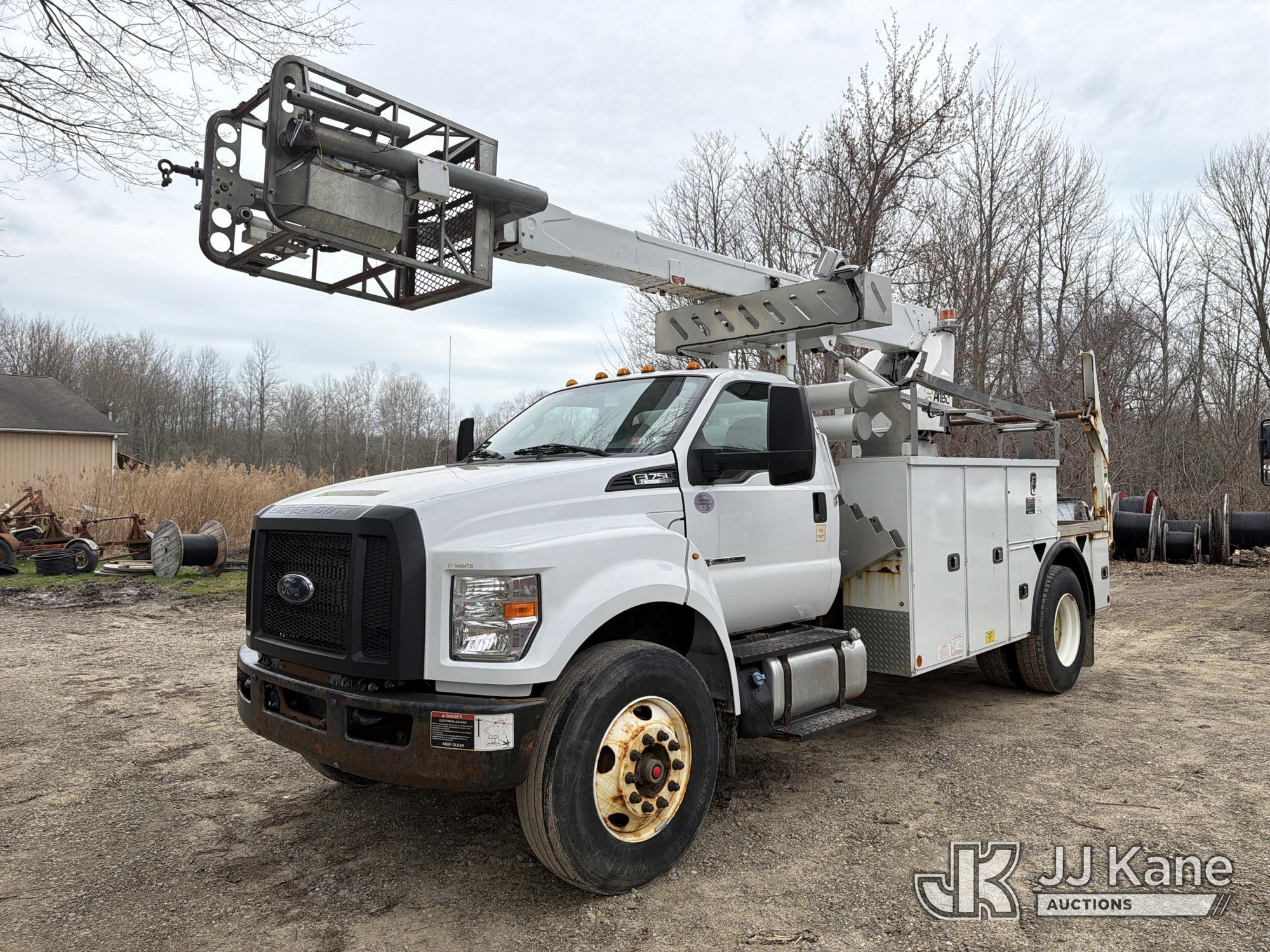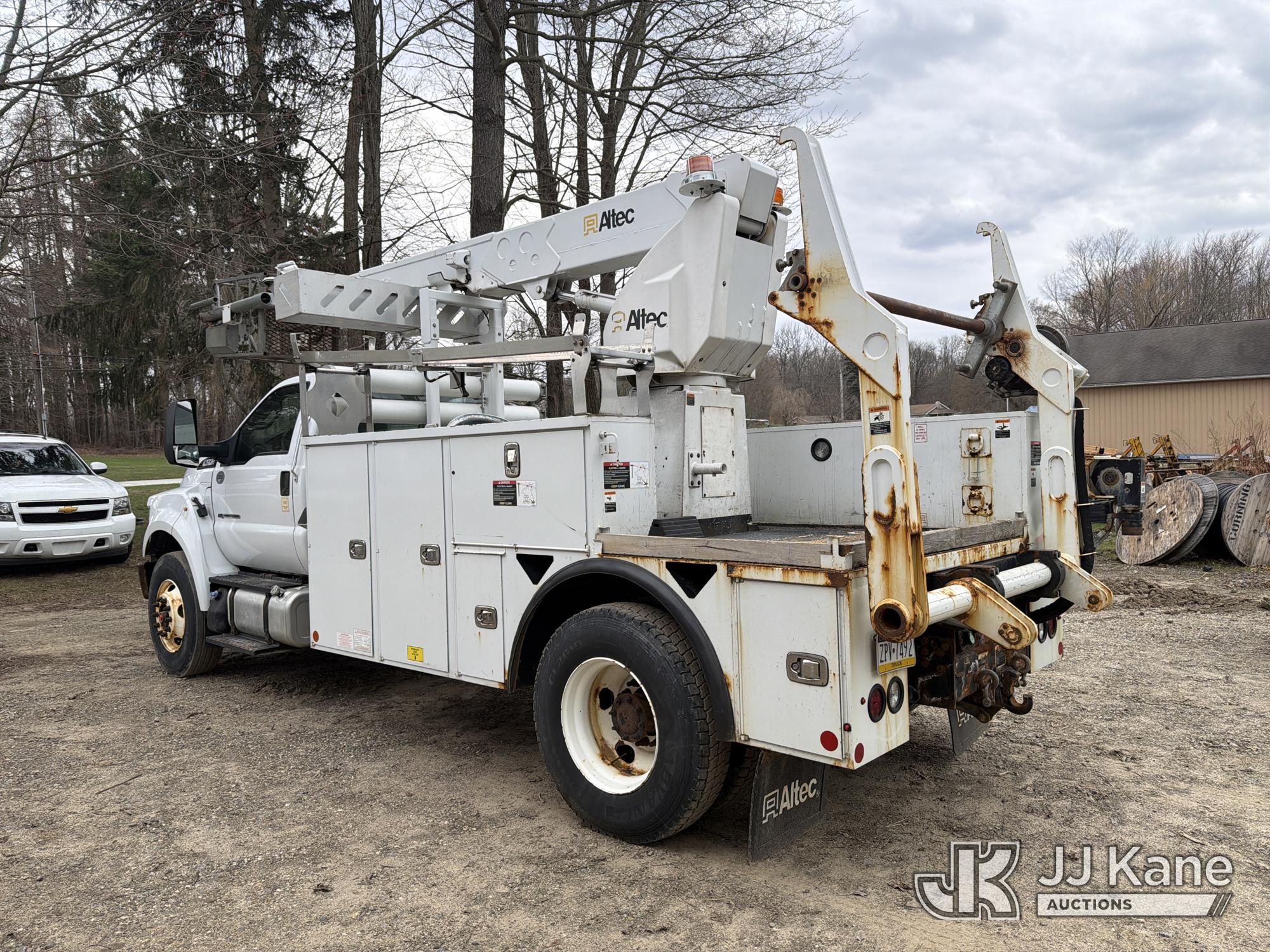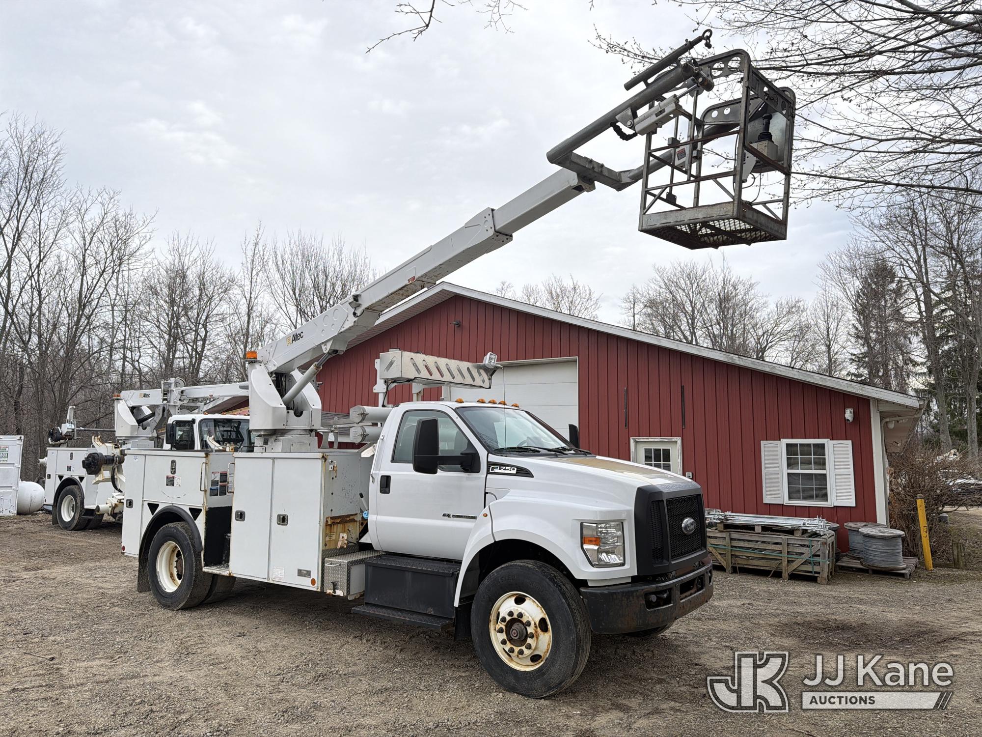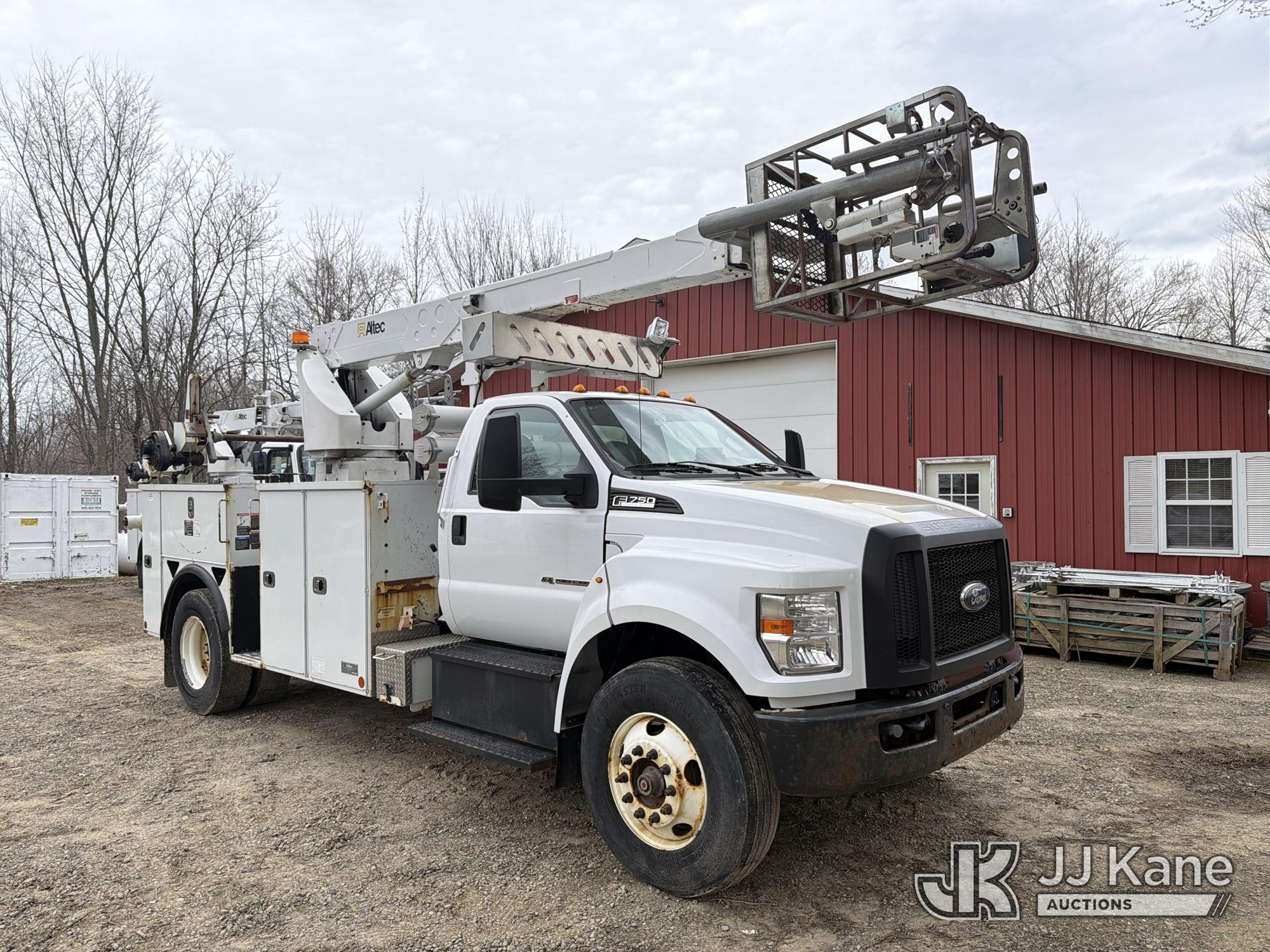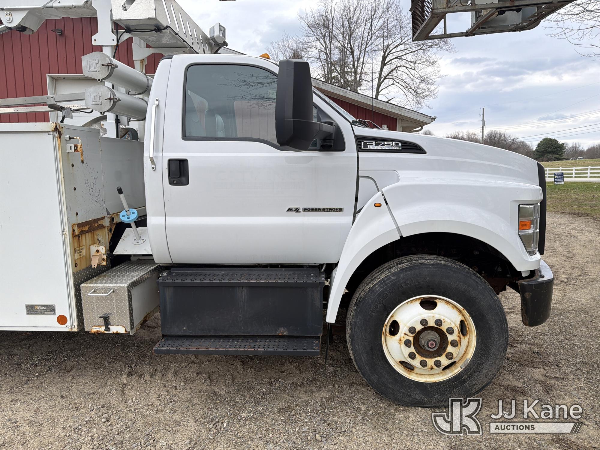 Altec A40P, 40 ft, Non-Insulated Cable Placing Bucket Truck s/n 0319GG1298, with Single-Man Basket, center mounted on 2019 Ford F750 Utility Truck, 6.7L diesel, Auto, A/C, with Hydraulic Reel Loader, (80,826 miles) (Runs, Moves & Upper Unit Operates, SELLER STATES New Ford Factory Motor) This is a Titled Item*