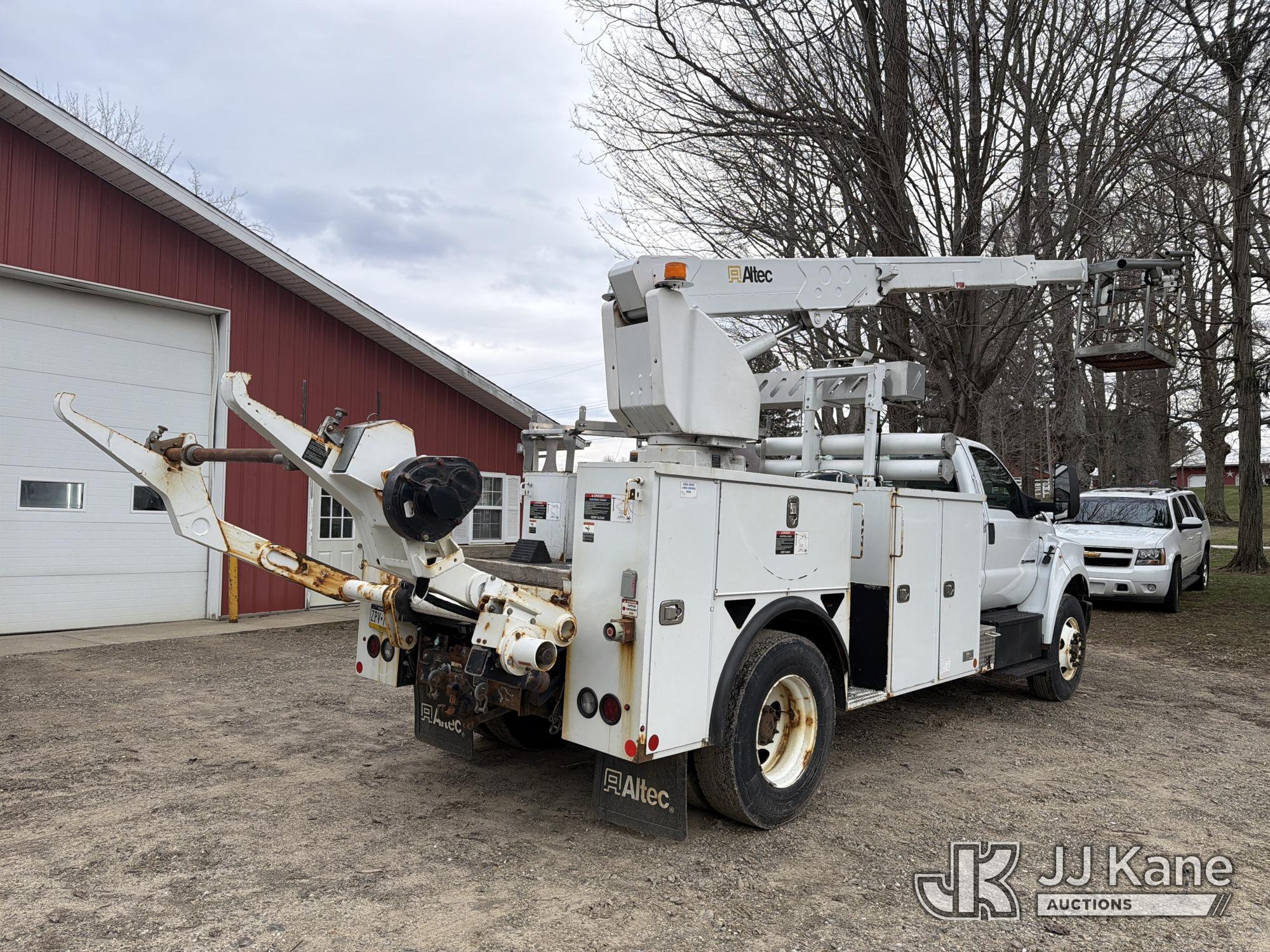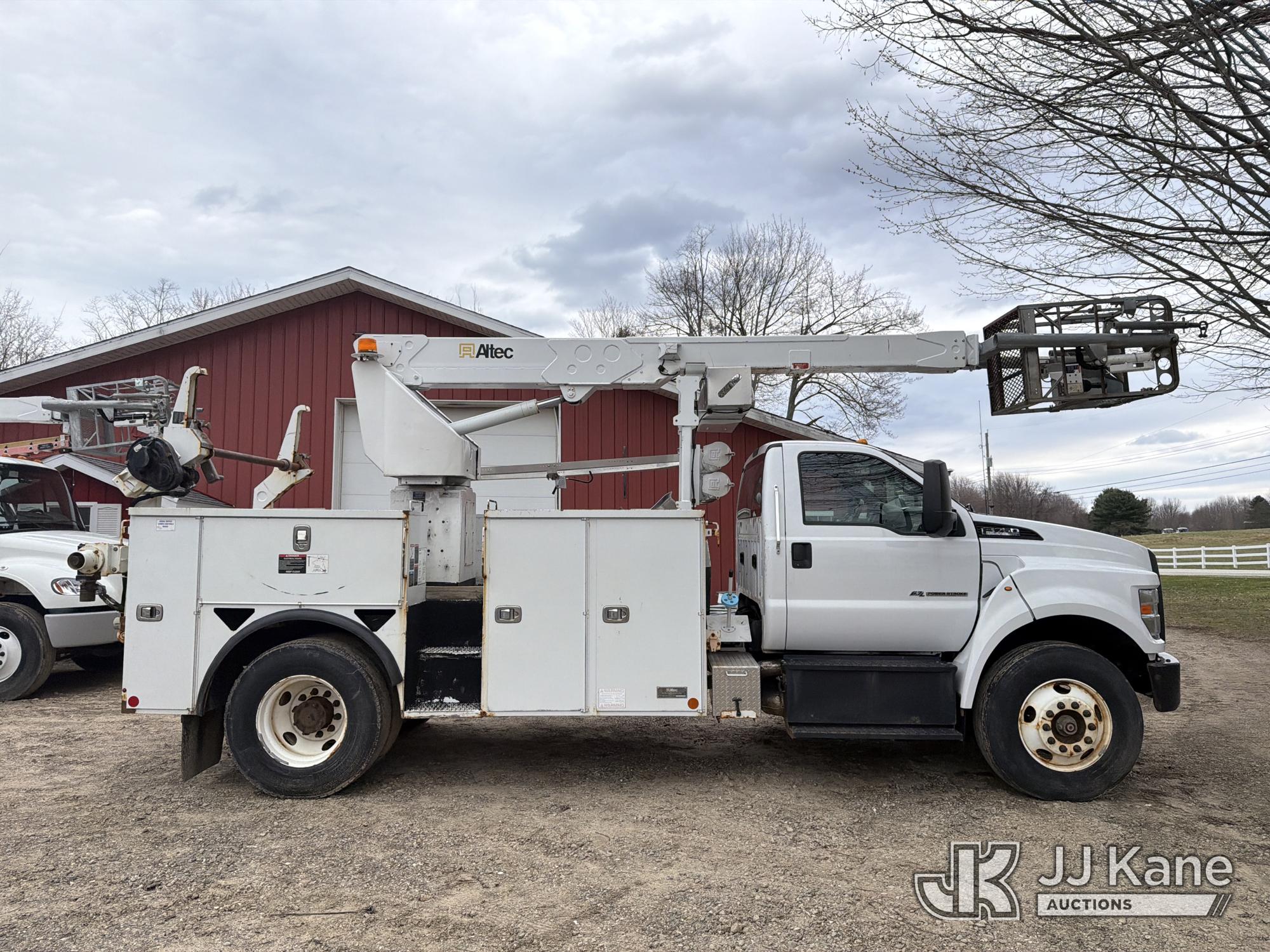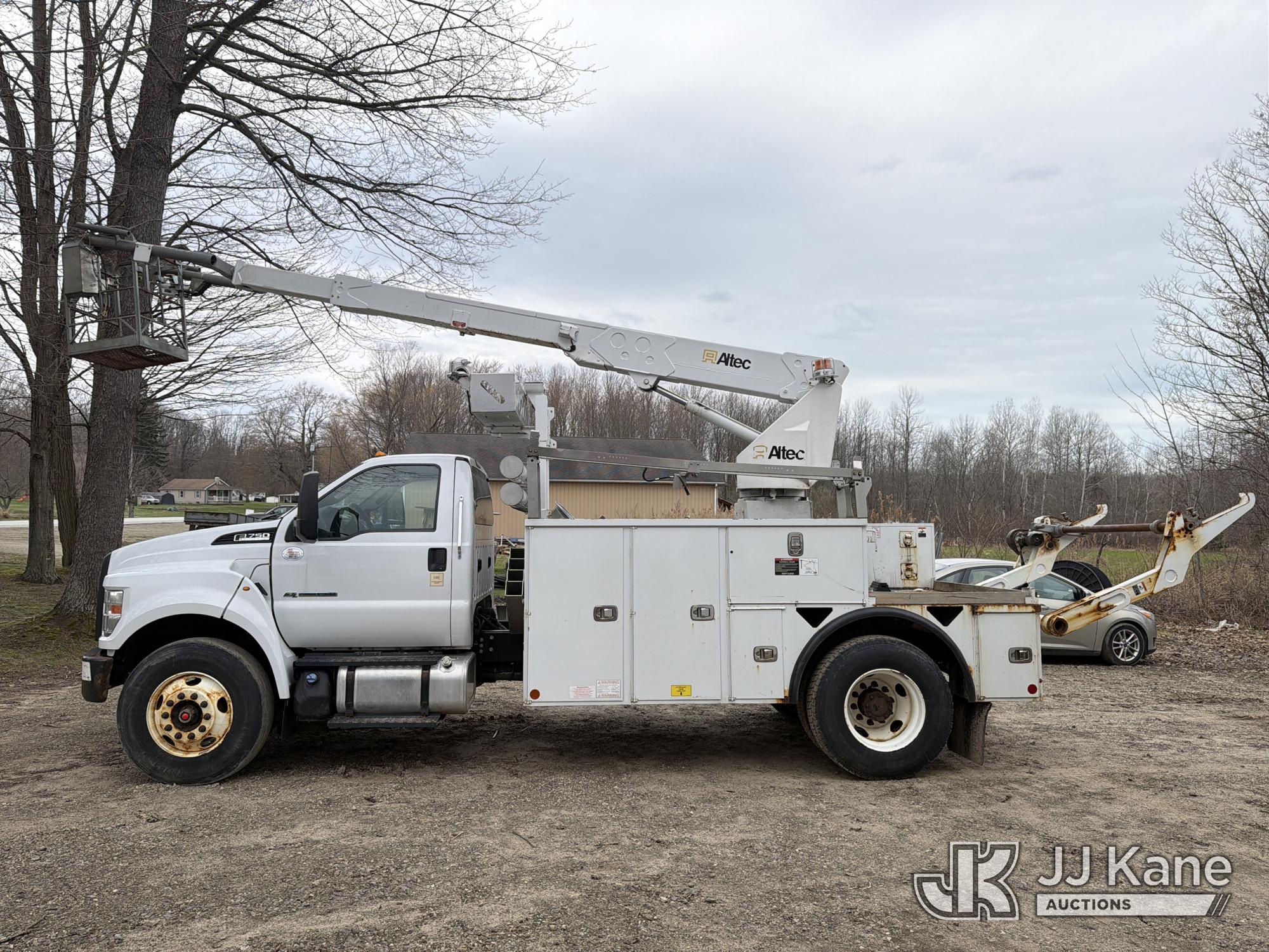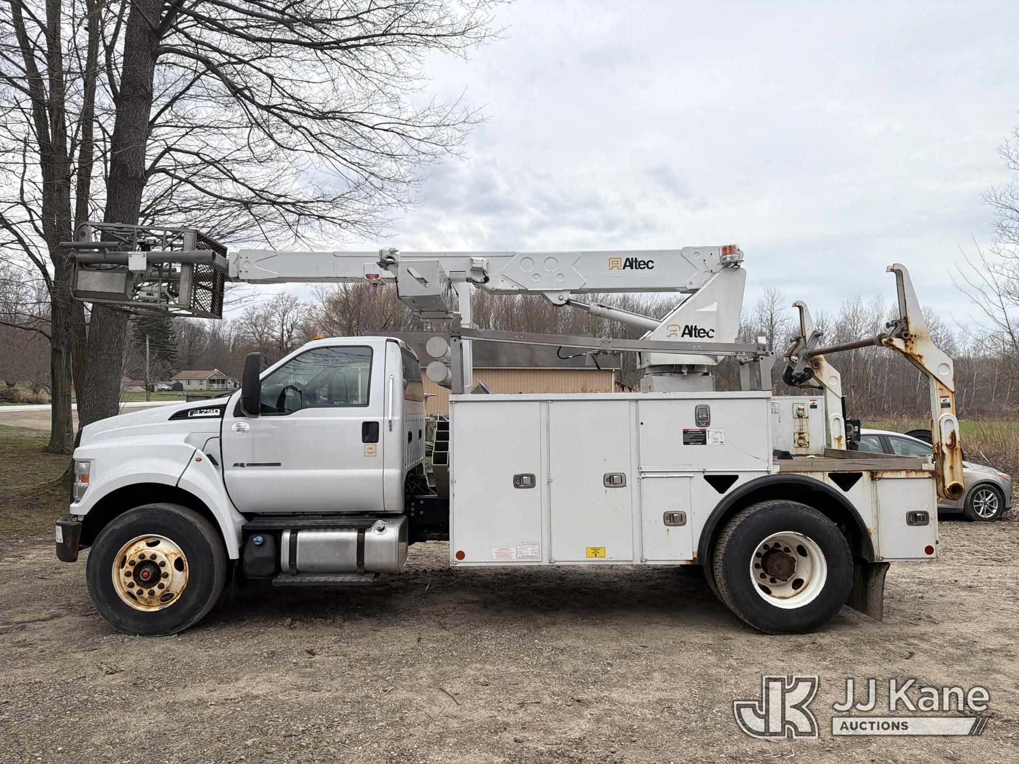 Altec A40P, 40 ft, Non-Insulated Cable Placing Bucket Truck s/n 0319GG1298, with Single-Man Basket, center mounted on 2019 Ford F750 Utility Truck, 6.7L diesel, Auto, A/C, with Hydraulic Reel Loader, (80,826 miles) (Runs, Moves & Upper Unit Operates, SELLER STATES New Ford Factory Motor) This is a Titled Item*