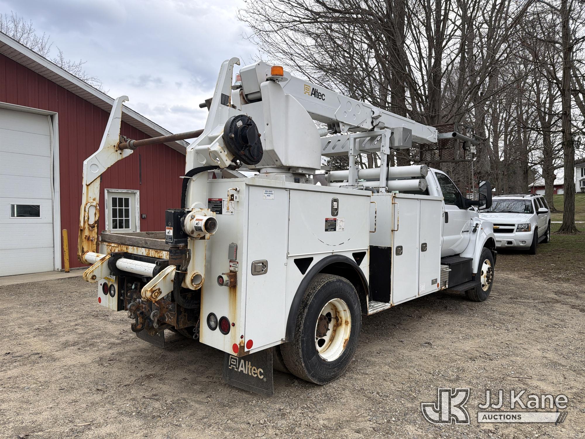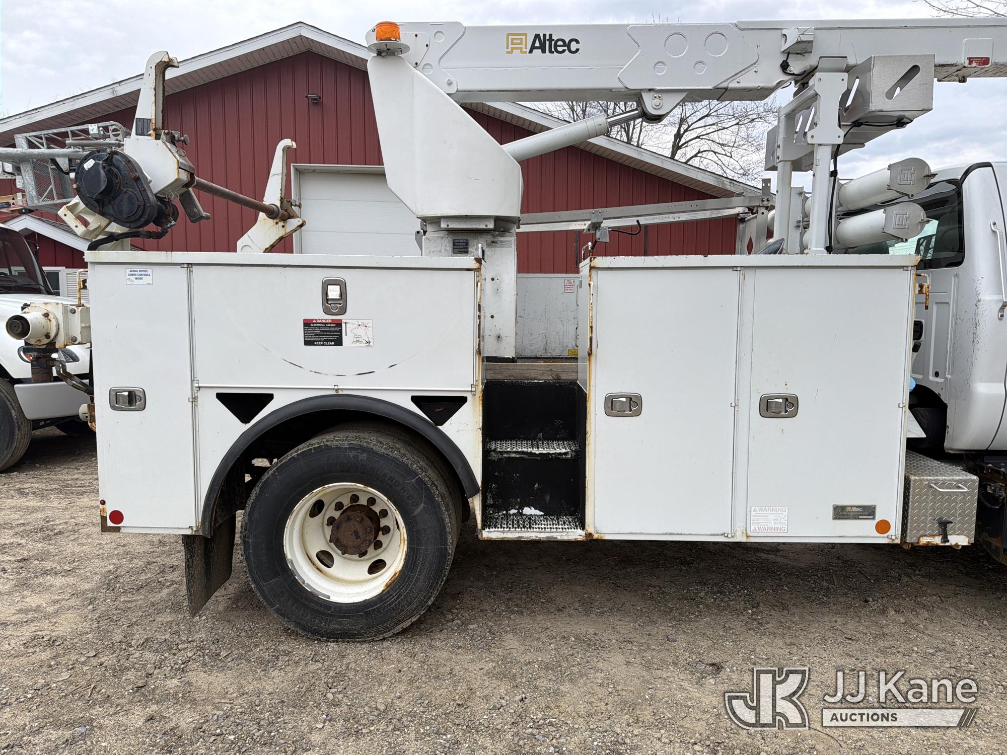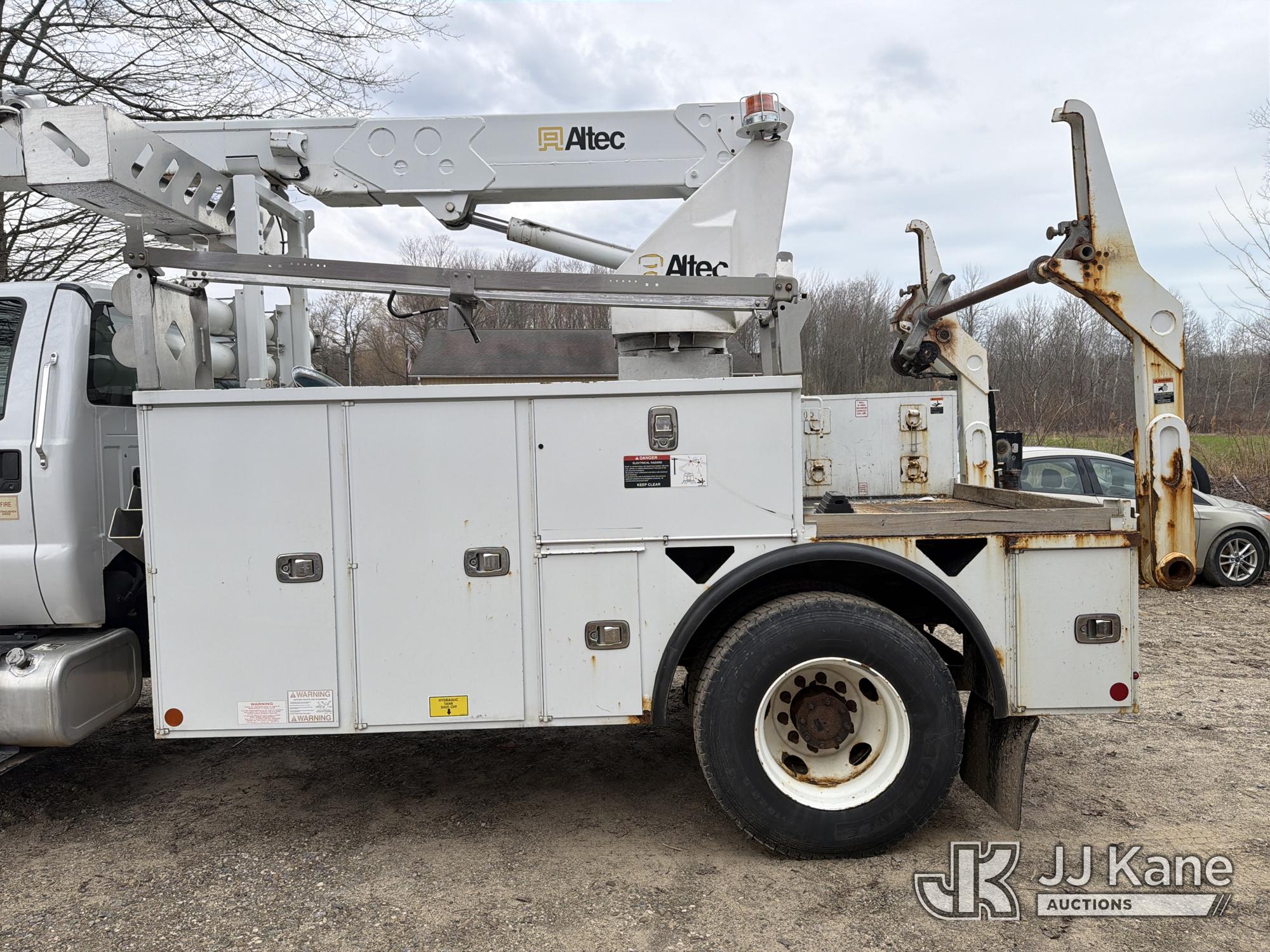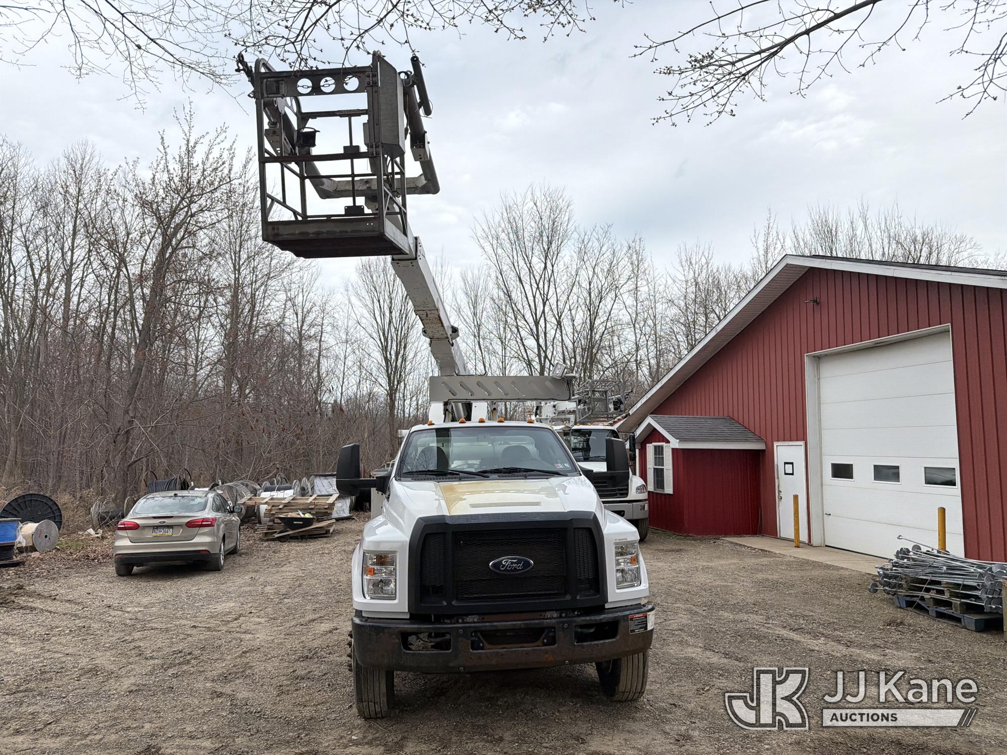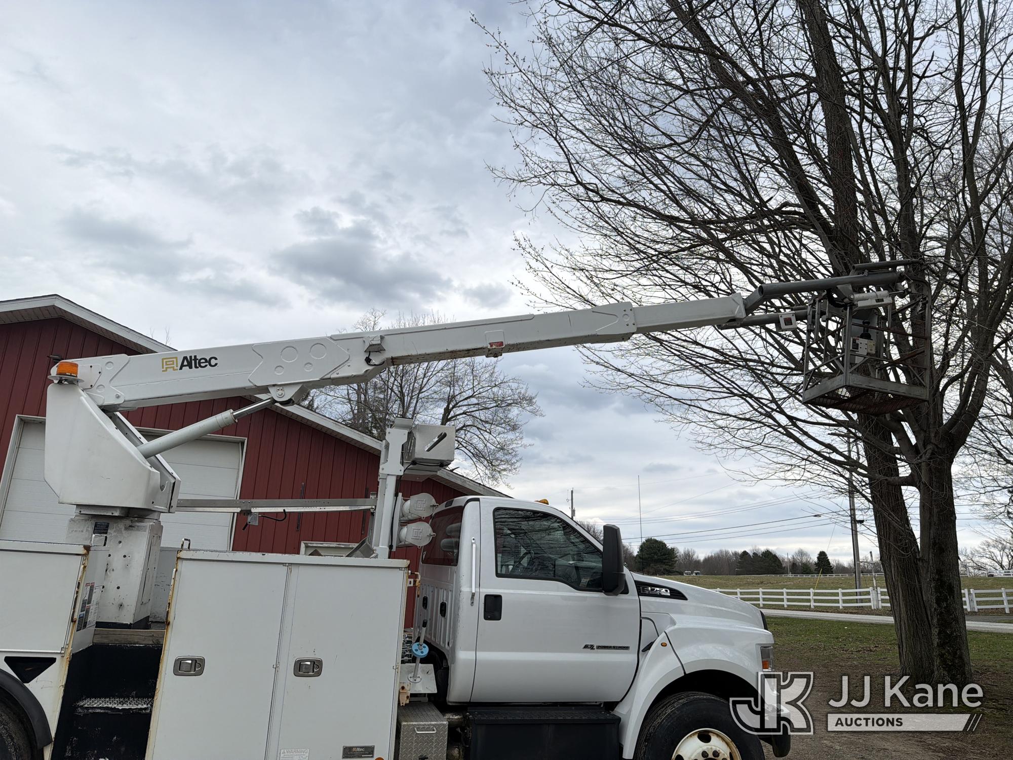 Altec A40P, 40 ft, Non-Insulated Cable Placing Bucket Truck s/n 0319GG1298, with Single-Man Basket, center mounted on 2019 Ford F750 Utility Truck, 6.7L diesel, Auto, A/C, with Hydraulic Reel Loader, (80,826 miles) (Runs, Moves & Upper Unit Operates, SELLER STATES New Ford Factory Motor) This is a Titled Item*