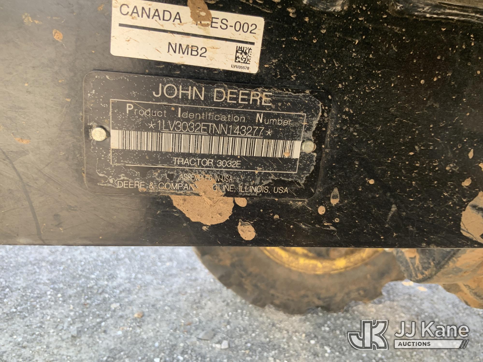 2022 John Deere 3032E Utility Tractor Loader, s/n 1LV3032ETNN143277, JohnDeere 4X4, diesel, Hydrostatic, with GP loader bucket, PTO, 3pt, quick hitch, ROPS posts, (Runs, Moves, Operates) (Reads 209 hours)*