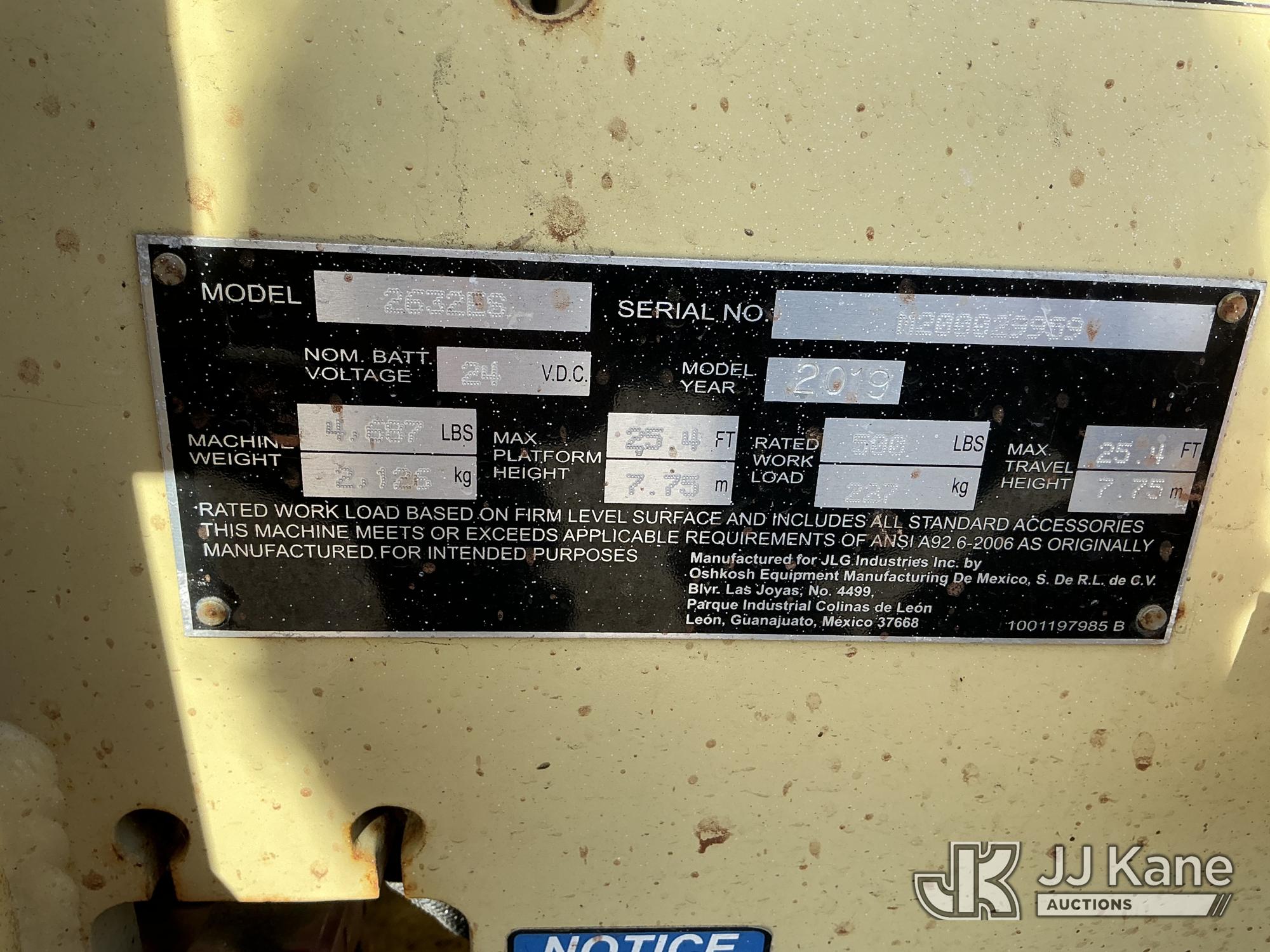 2019 JLG 2632ES Self-Propelled Scissor Lift, s/n M200029959, electric, Hydrostatic, (Runs, Moves, Operates) (Reads 122 hours)*