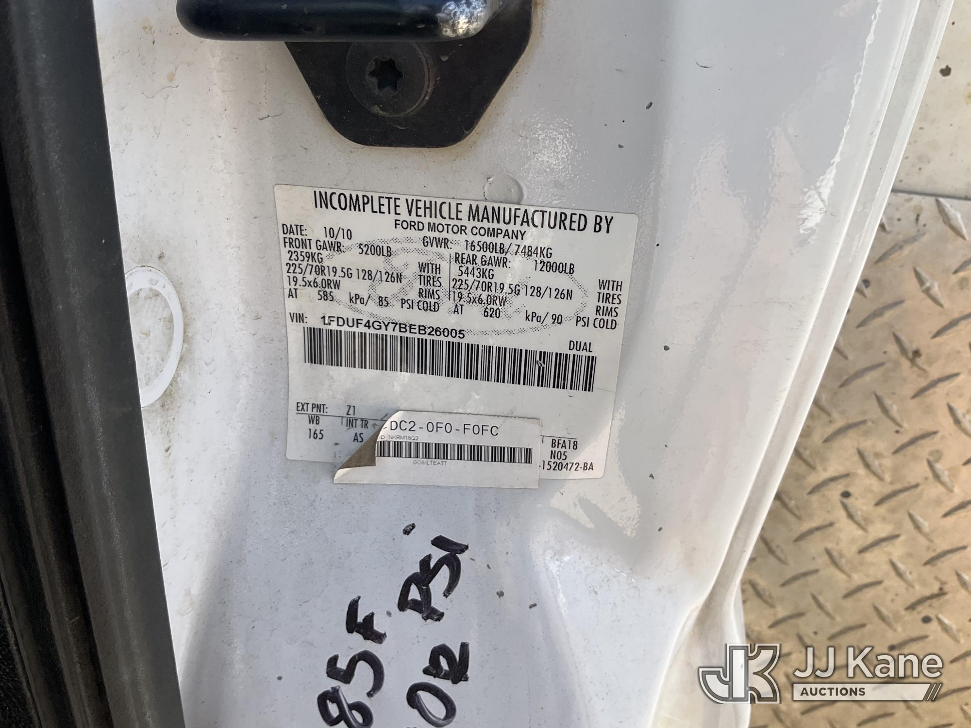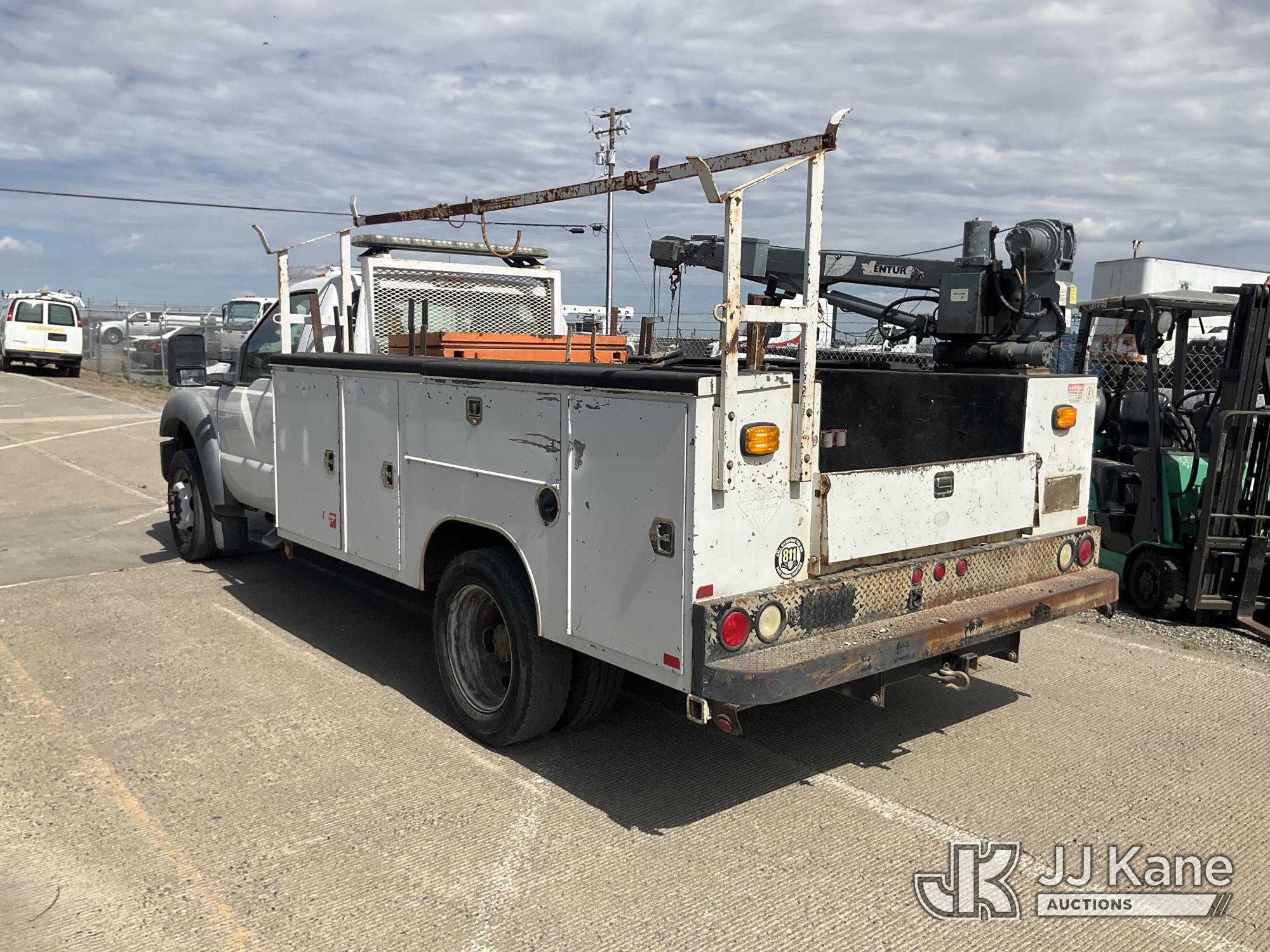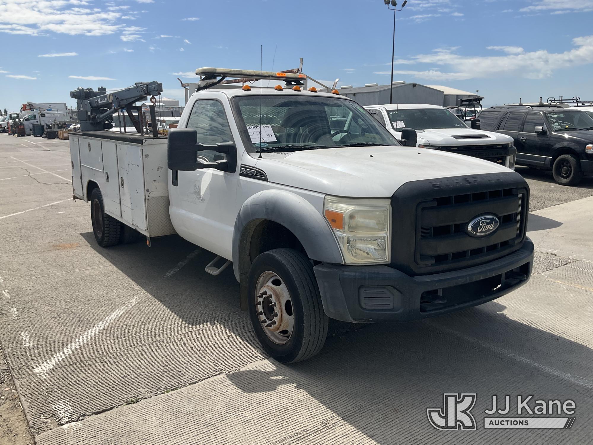 2011 Ford F-450 SD Regular Cab DRW 2WD Mechanics Service Truck, s/n 1FDUF4GY7BEB26005, 6.8L V10 SOHC 30V RWD, GAS, Auto, A/C, with Venturo mini crane, Ridgid tool boxes, safety lights, tow package, (91,092 miles) (Runs & Moves, Crane Operates, Has Controls, Interior Worn) This is a Titled Item*